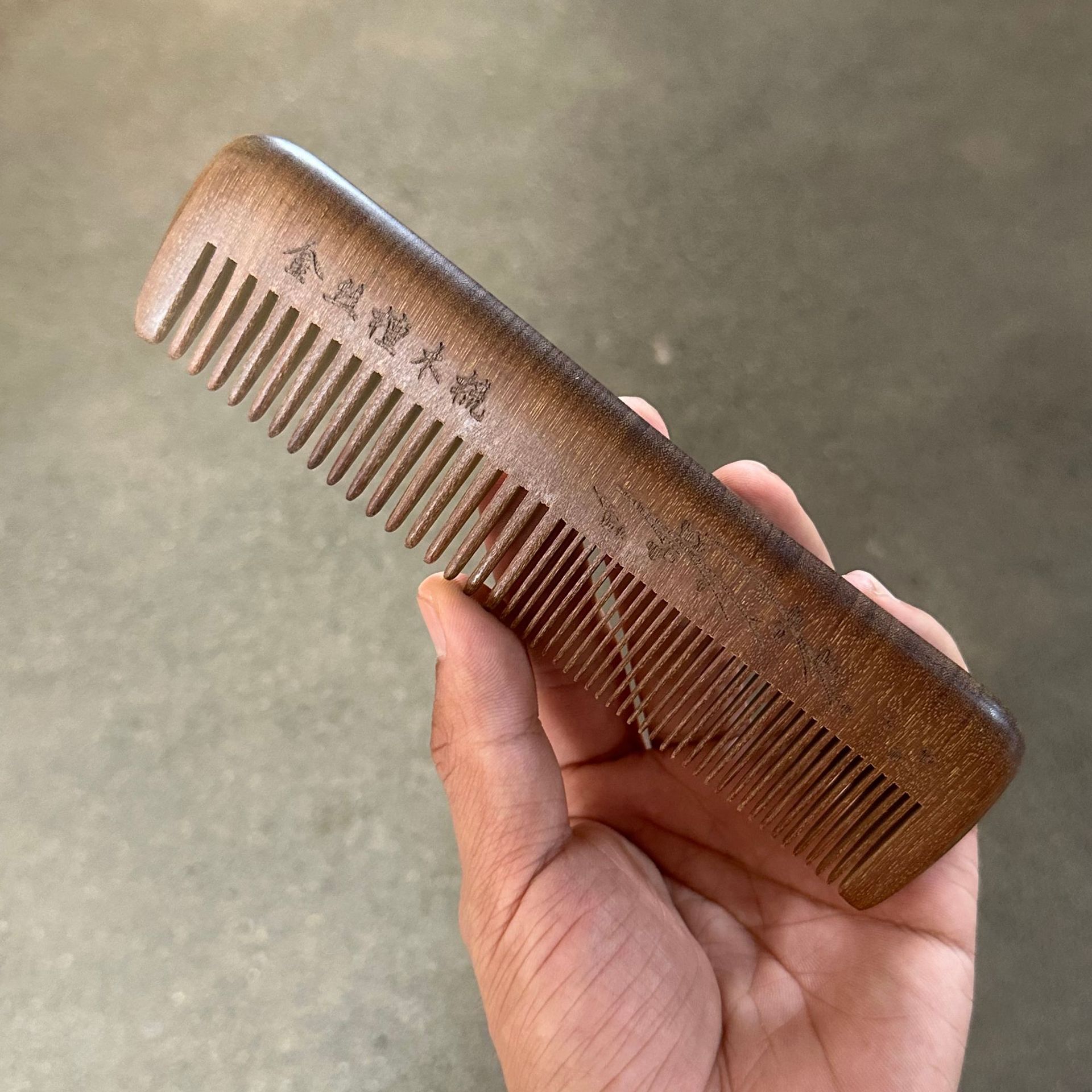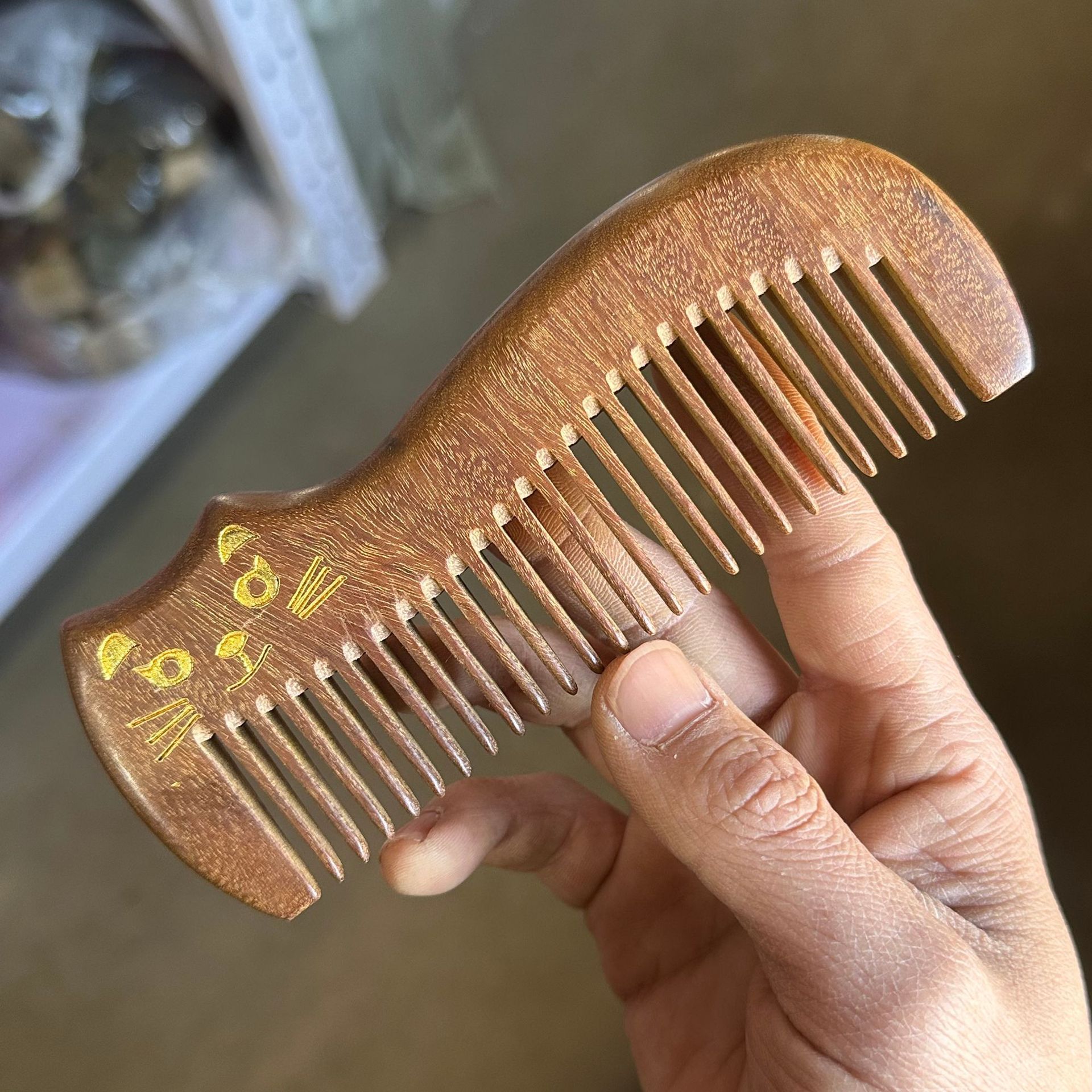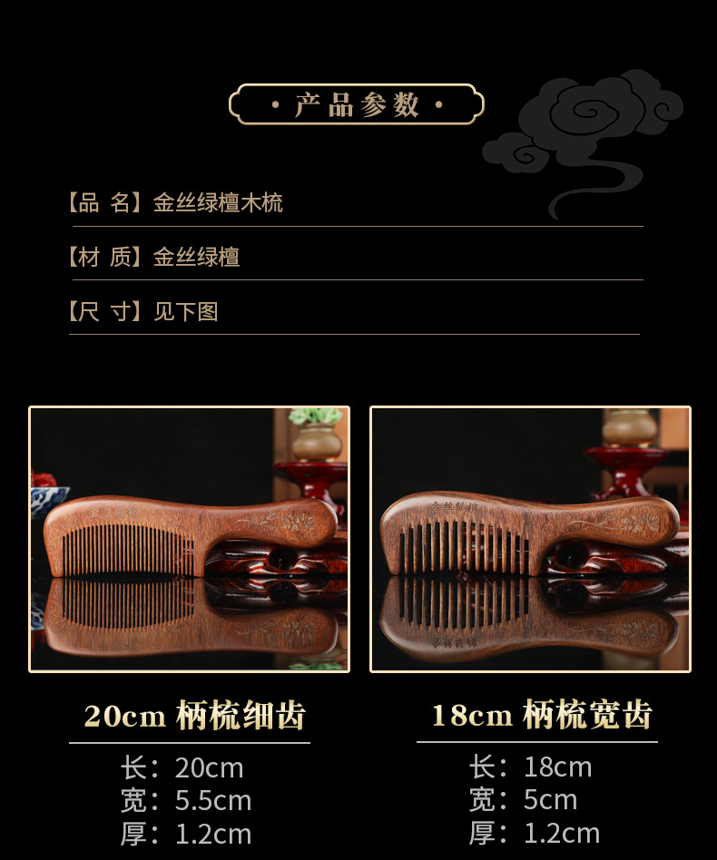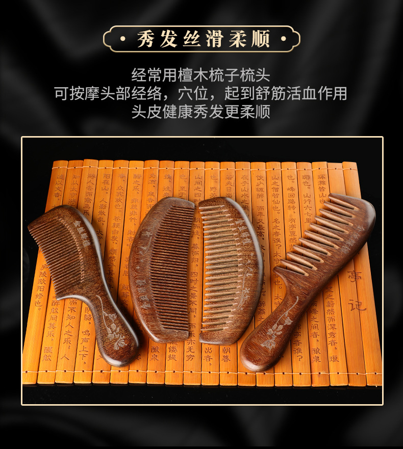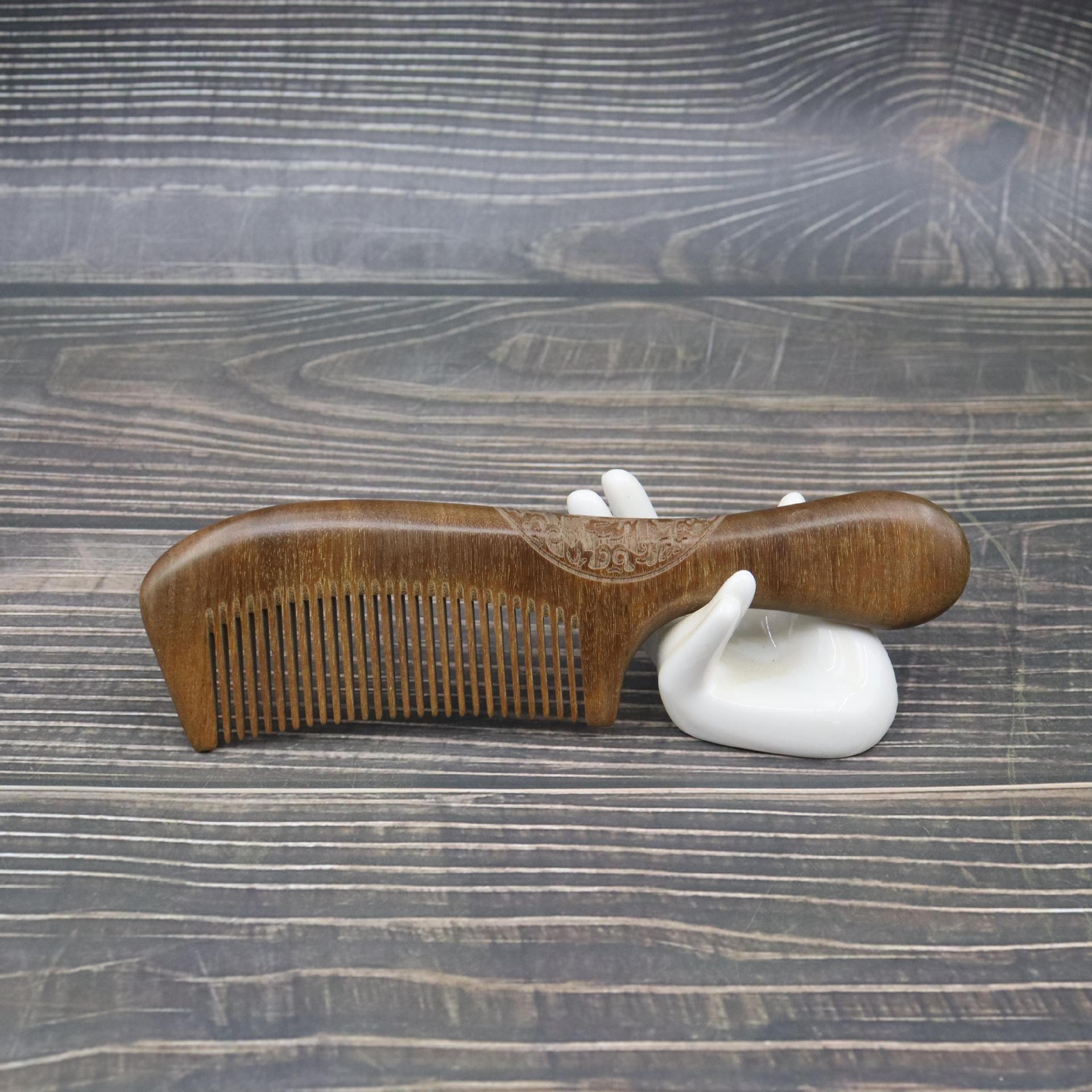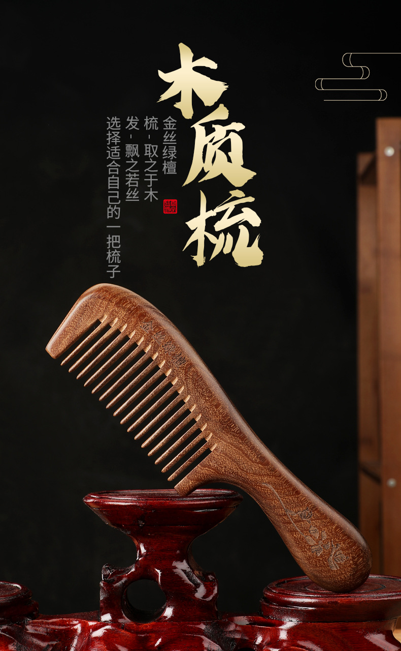 金丝绿檀木梳密齿实木雕花梳家用木质长柄檀木梳地摊礼品梳子批发