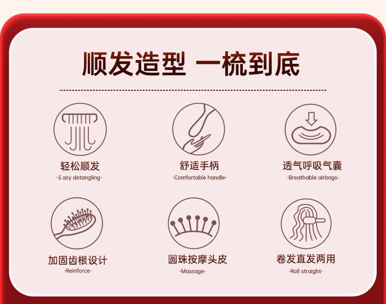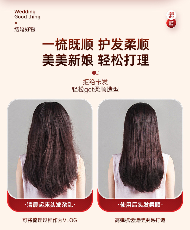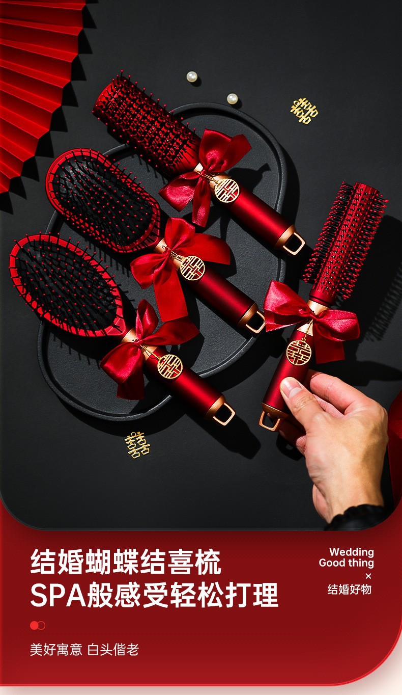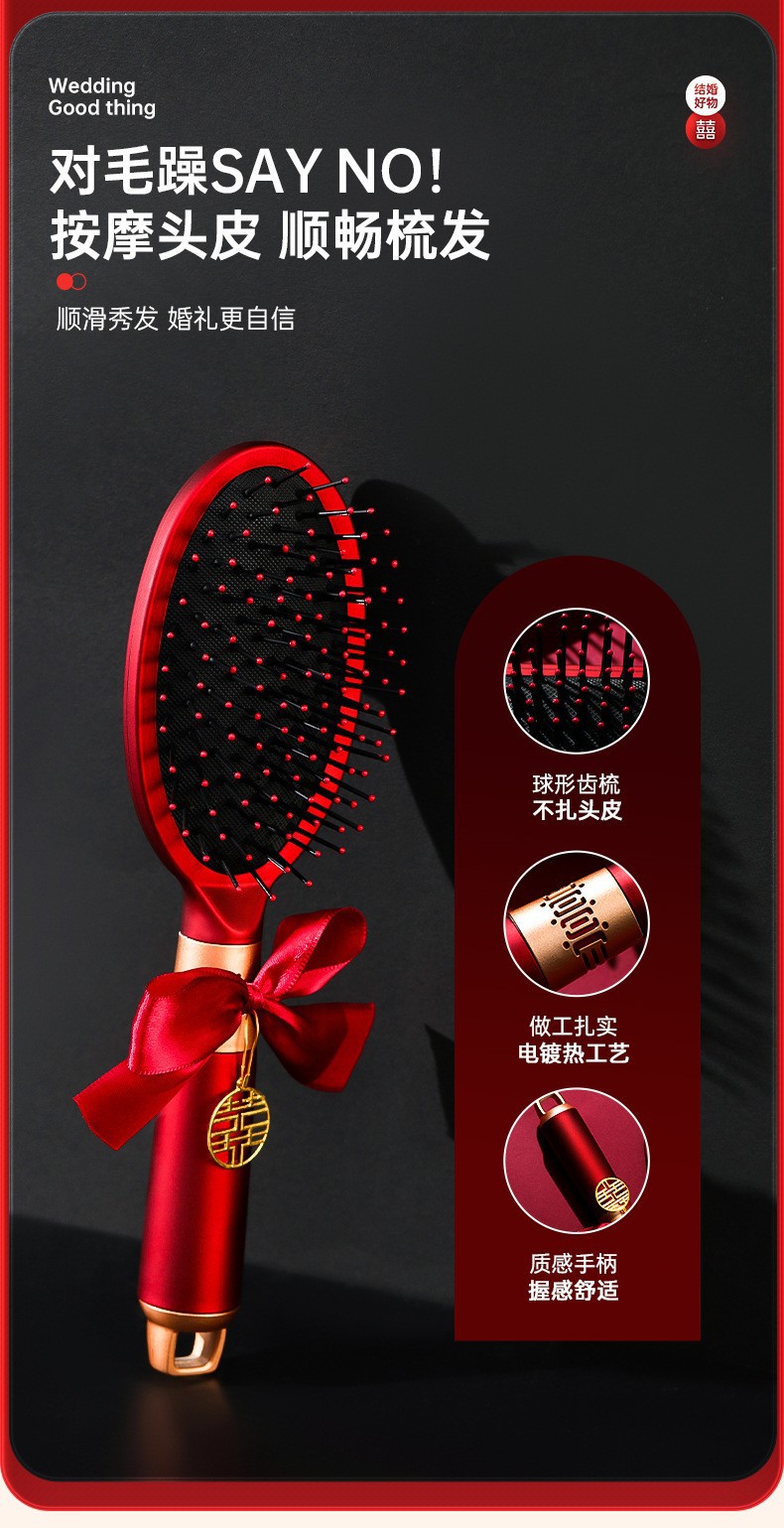 结婚红色气垫梳子女方陪嫁物品高档一对婚礼喜梳全套婚庆用品大全
