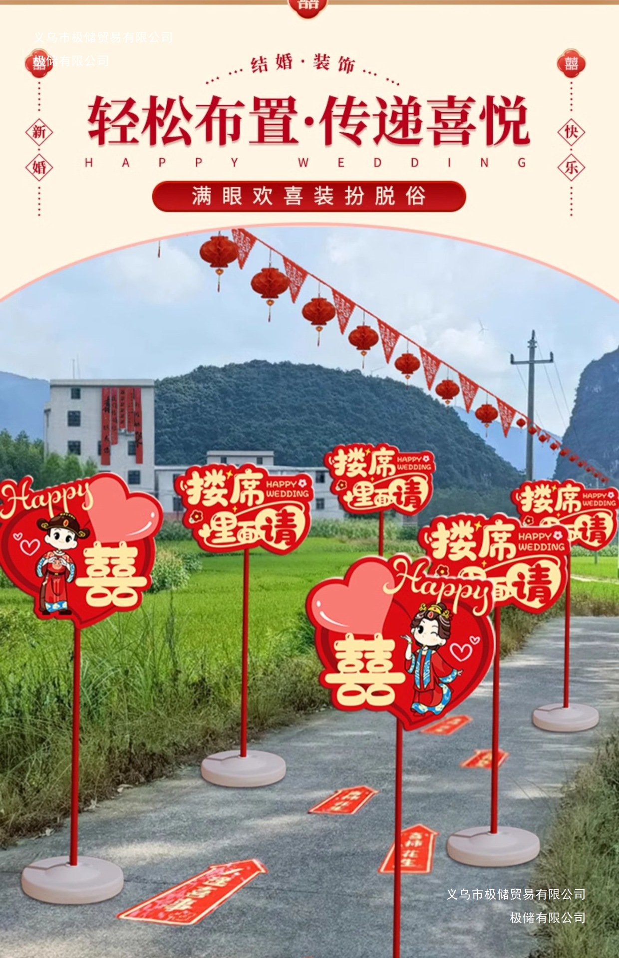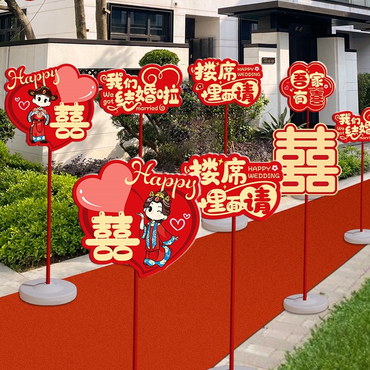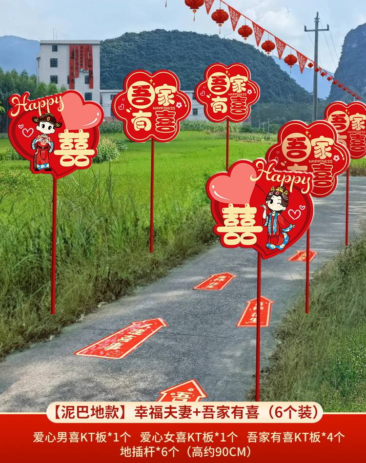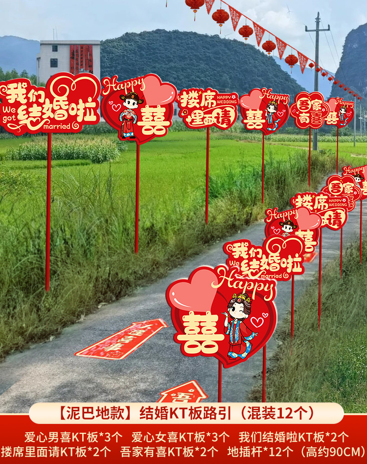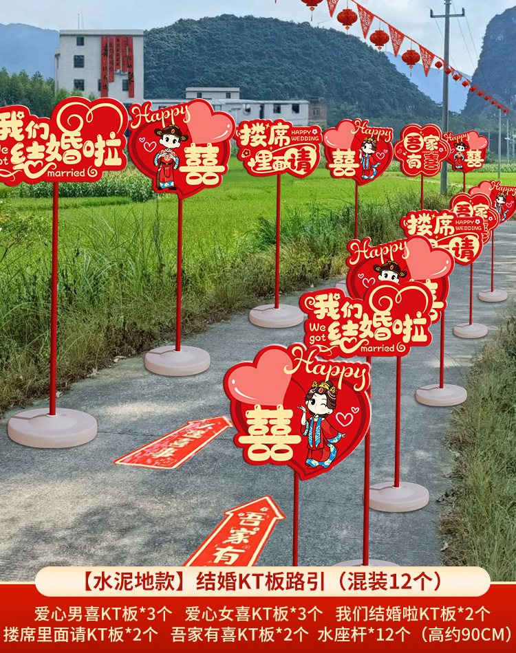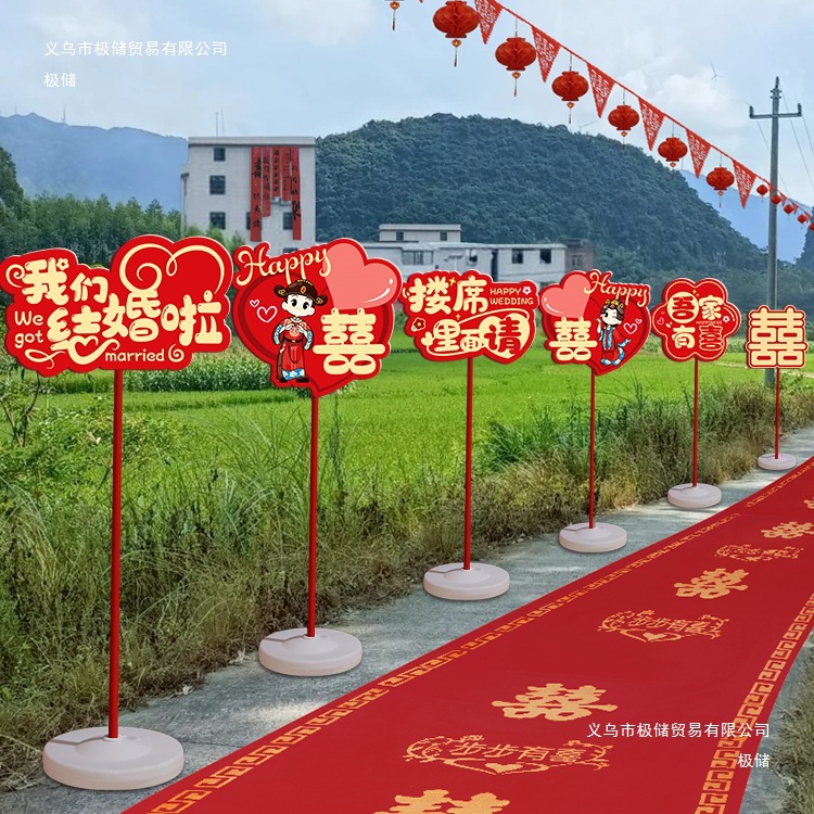 结婚礼路引指示牌板路标装饰农村庭院子布置引路牌婚庆用品极储