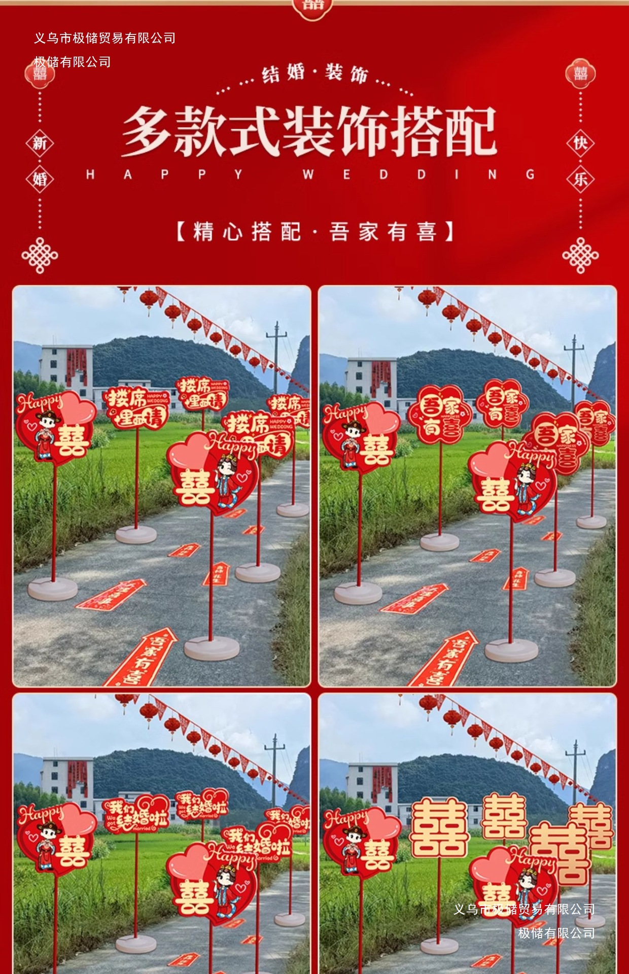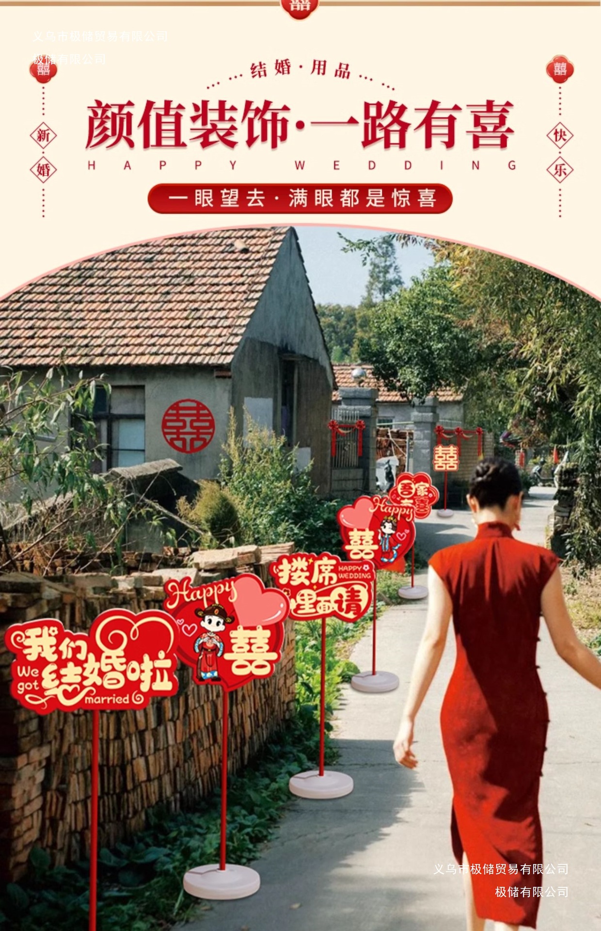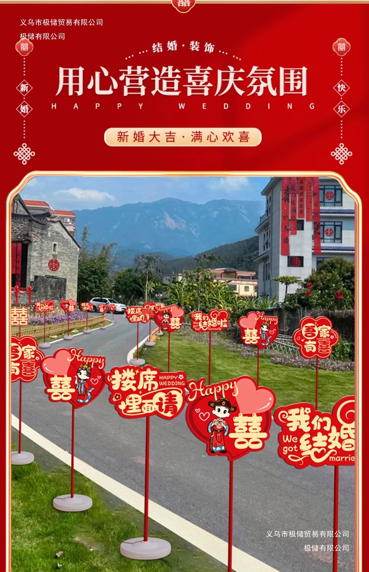 结婚礼路引指示牌板路标装饰农村庭院子布置引路牌婚庆用品极储