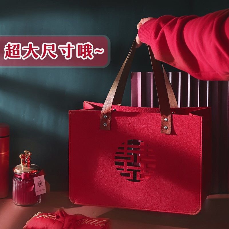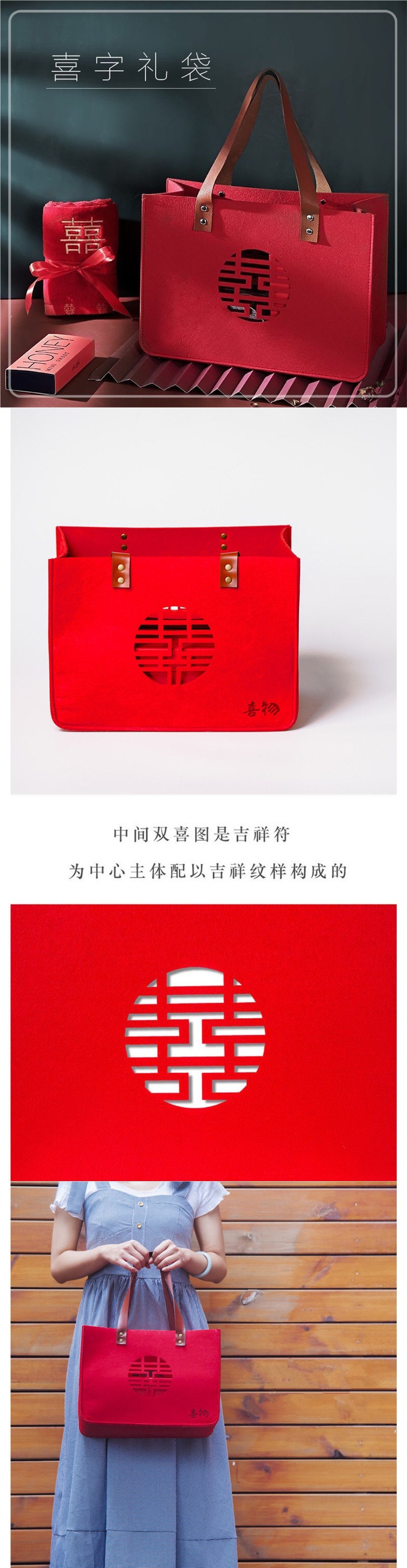 结婚收纳袋中式婚礼彩礼喜事礼物字皮手拎毛毡袋风订婚满月糖果袋