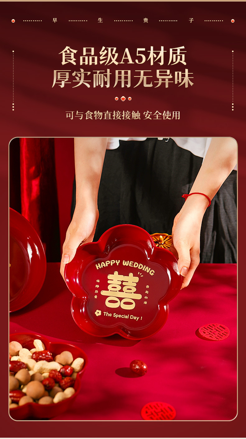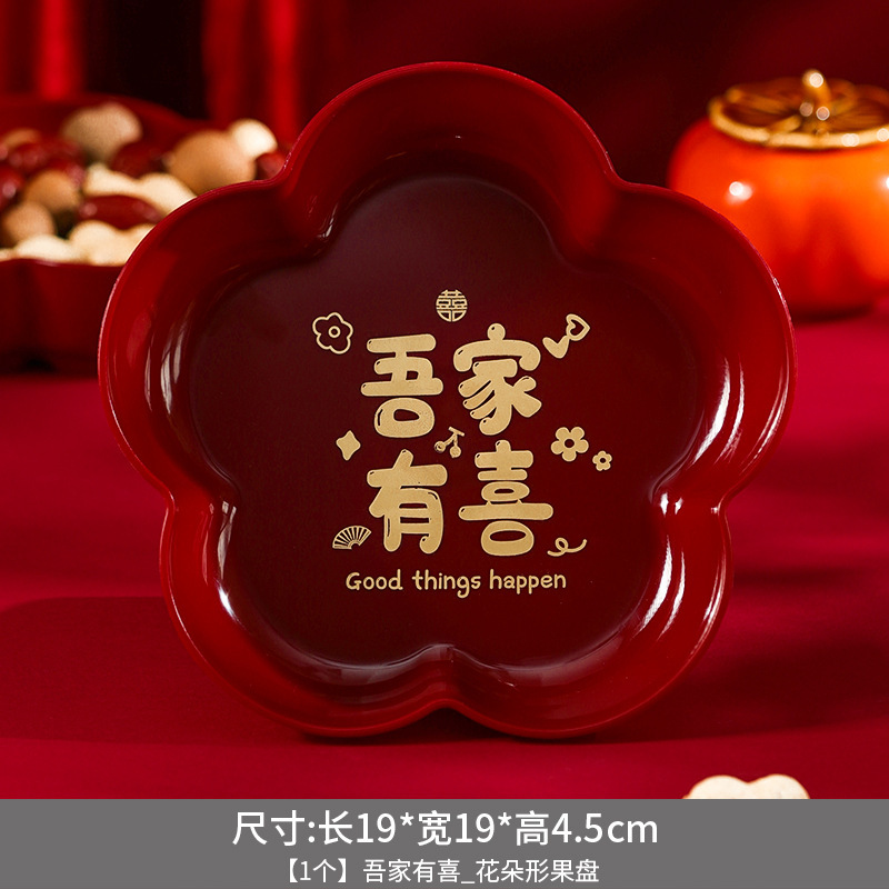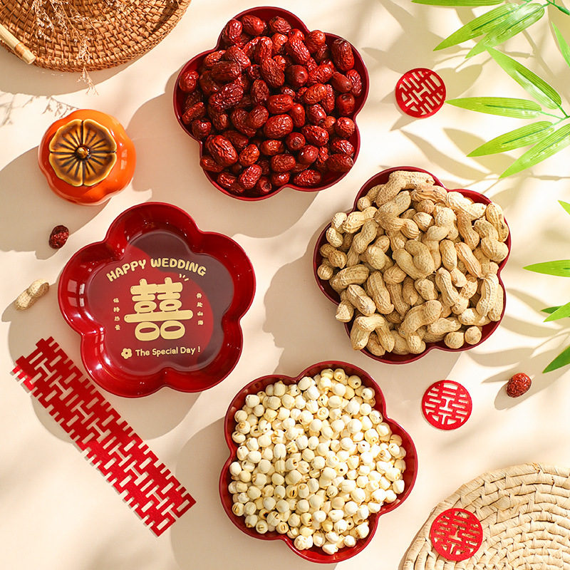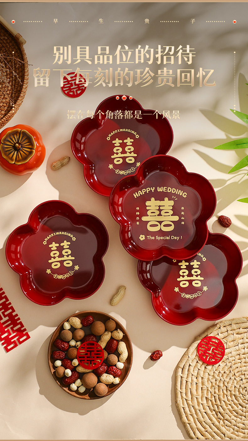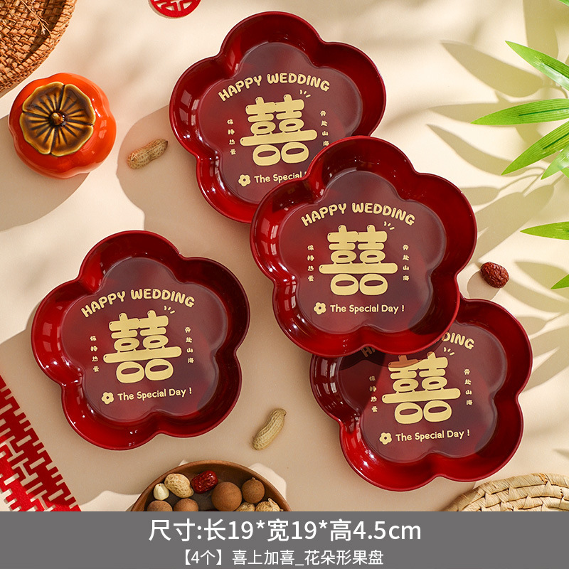 结婚果盘婚礼客厅茶几摆盘订婚红色喜庆喜糖盘干果盘婚庆用品大全