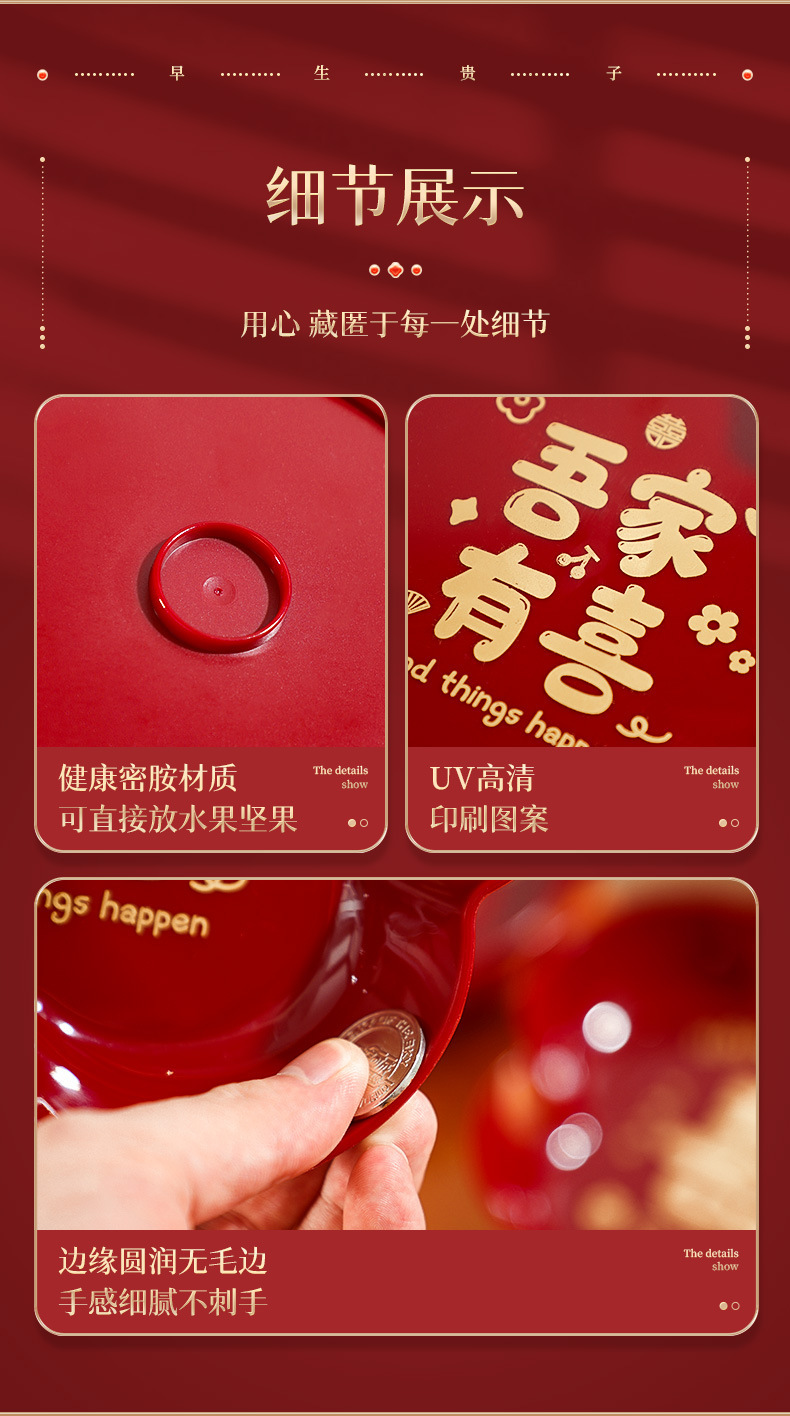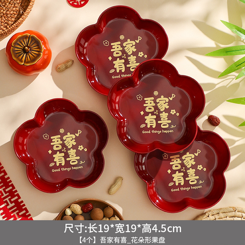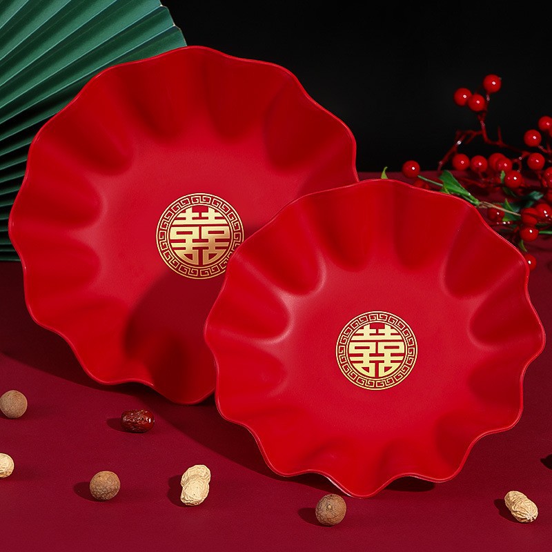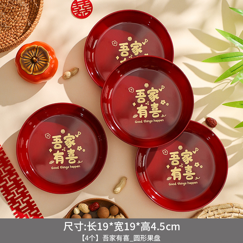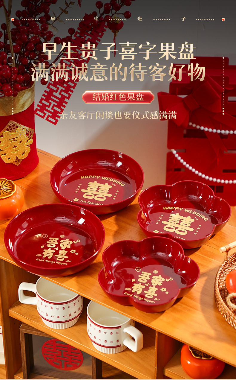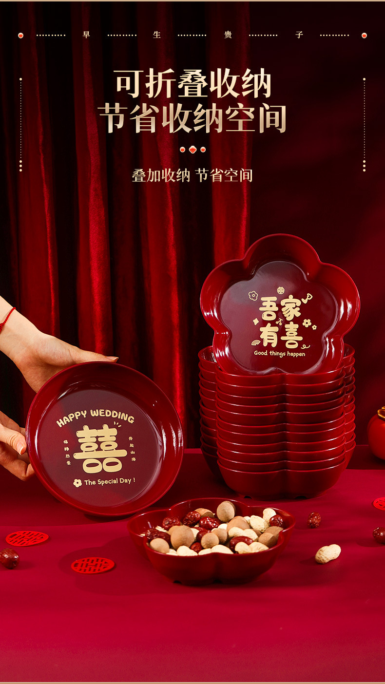 结婚果盘婚礼客厅茶几摆盘订婚红色喜庆喜糖盘干果盘婚庆用品大全