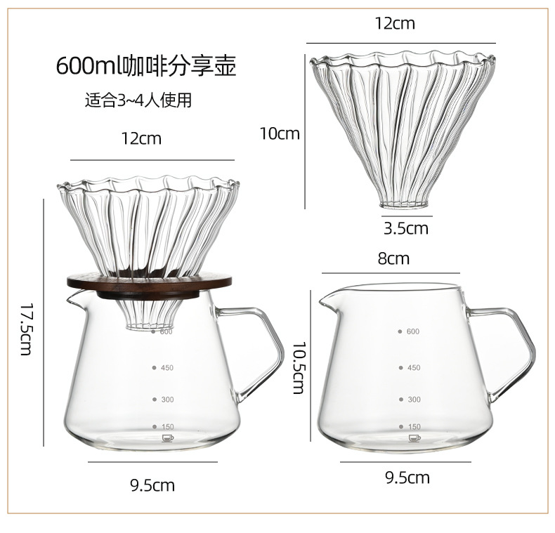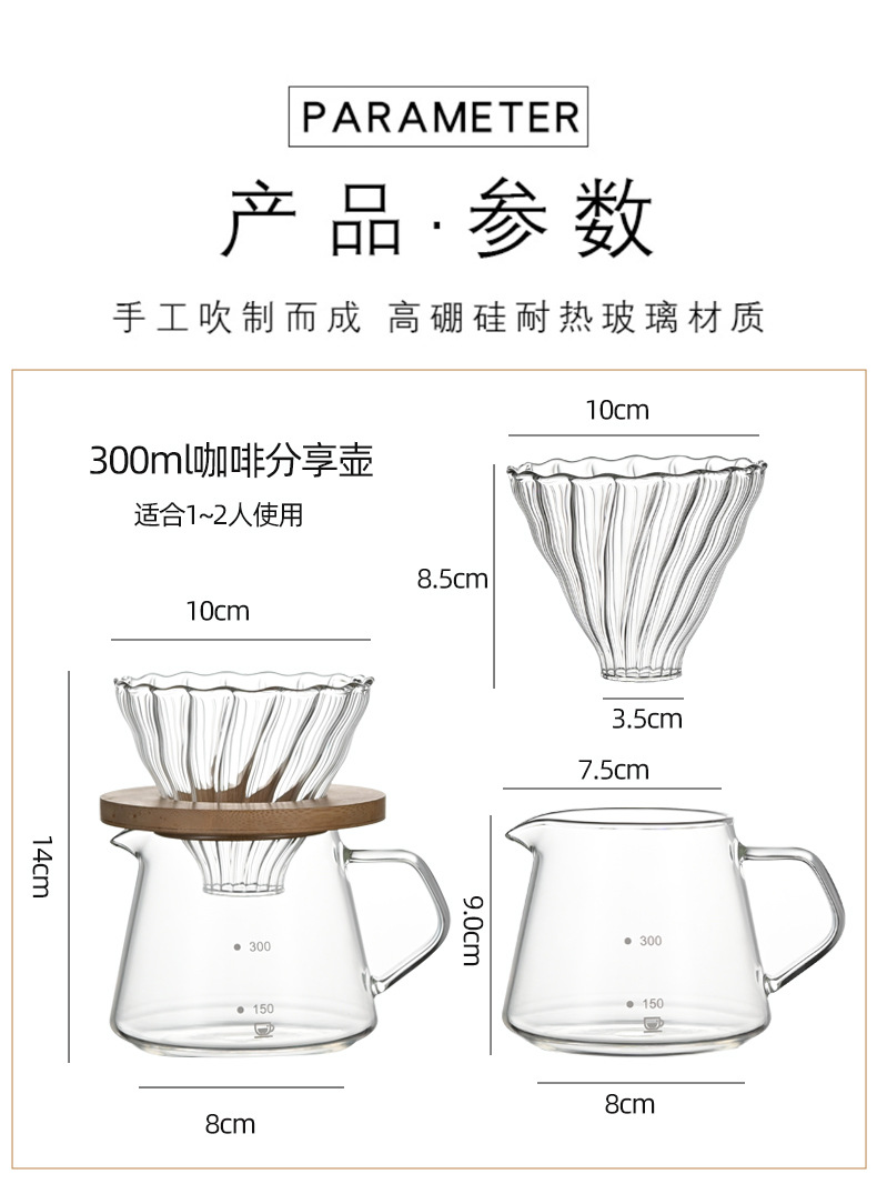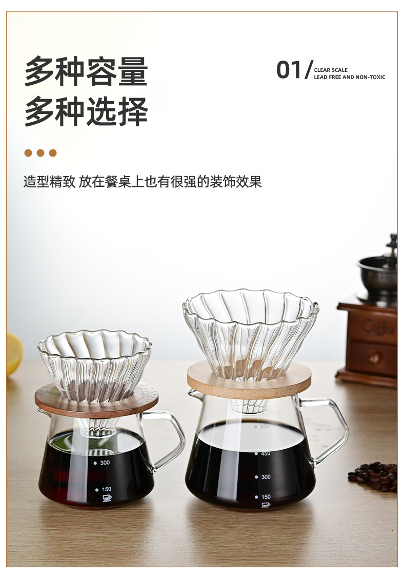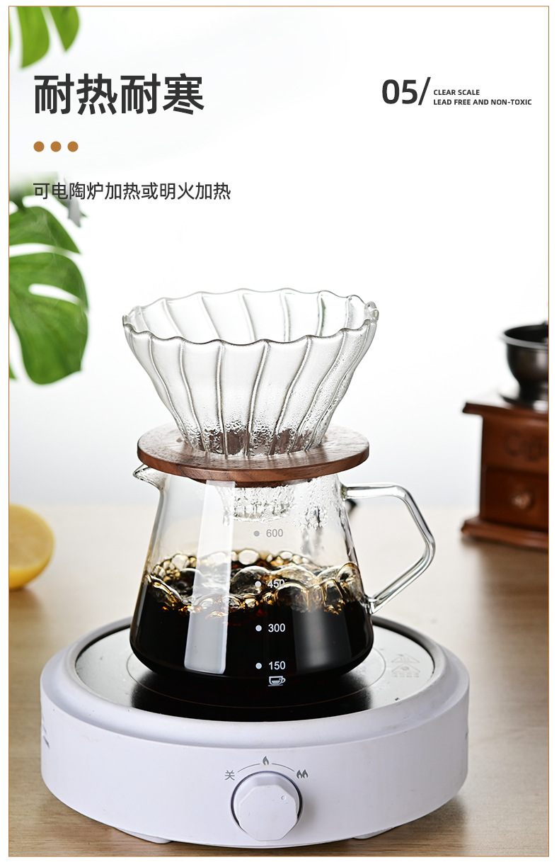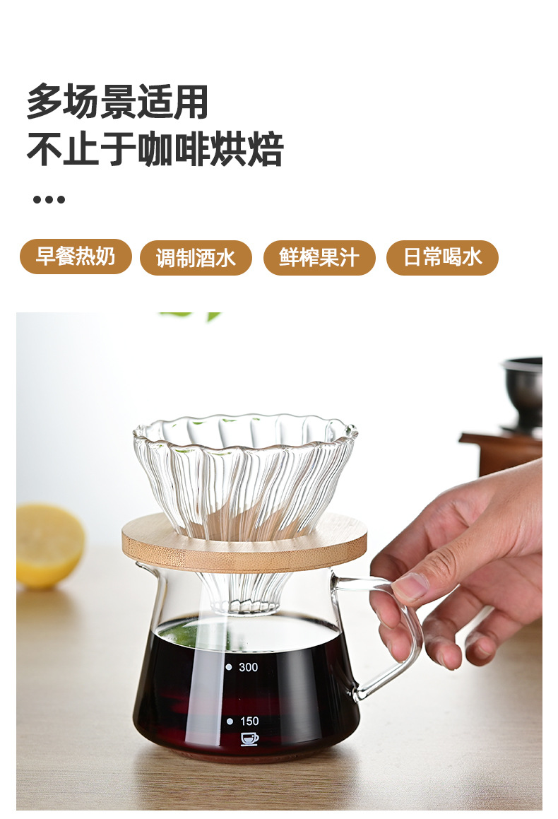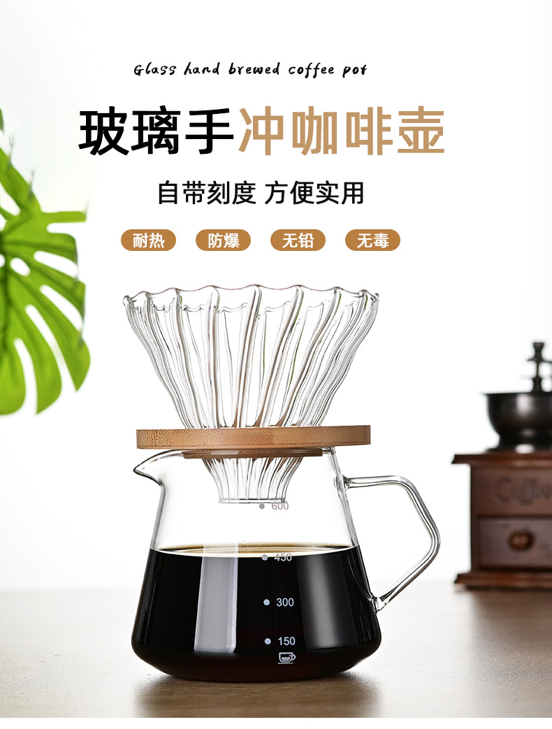 批发高硼硅玻璃手冲咖啡壶摩卡壶简约家用圆形带把手工咖啡器具