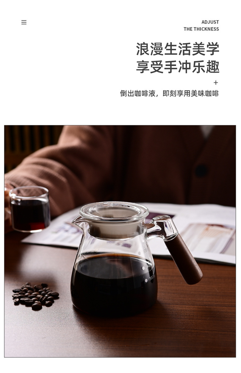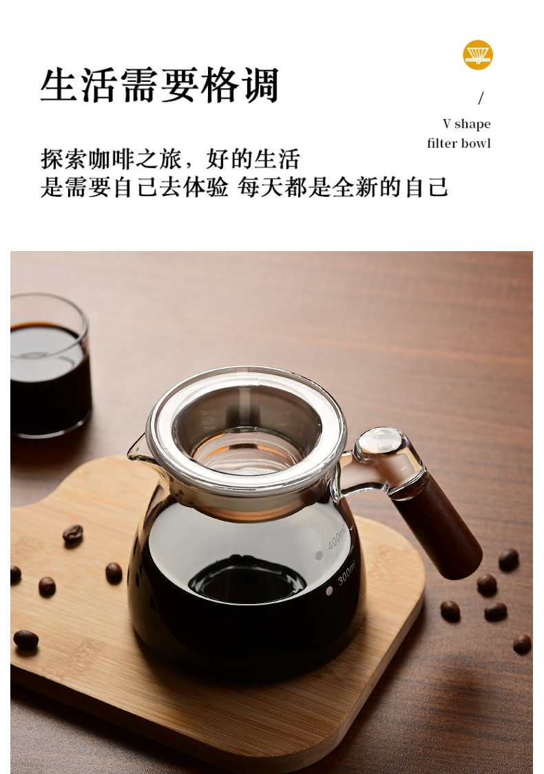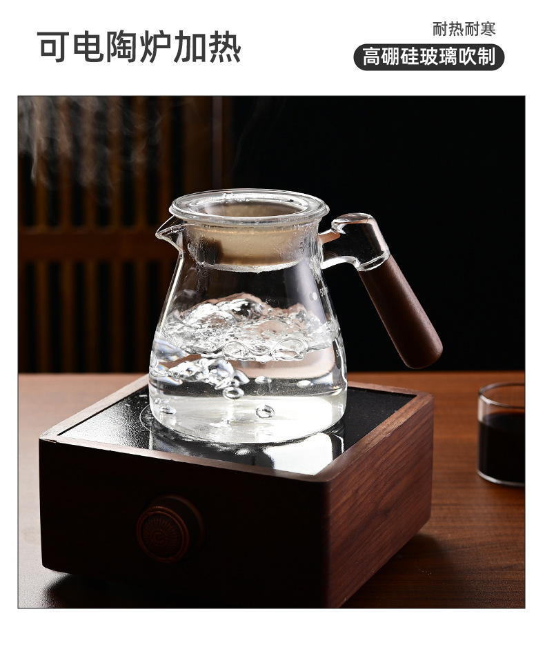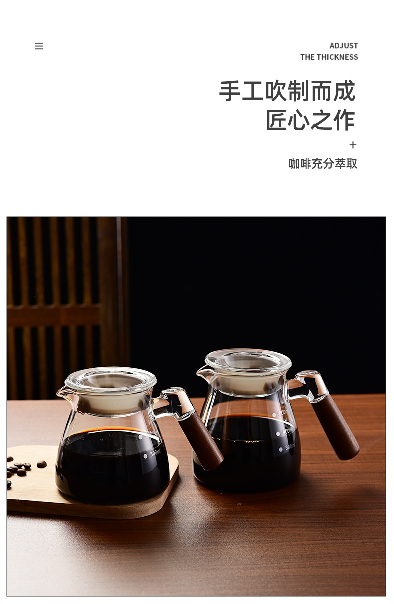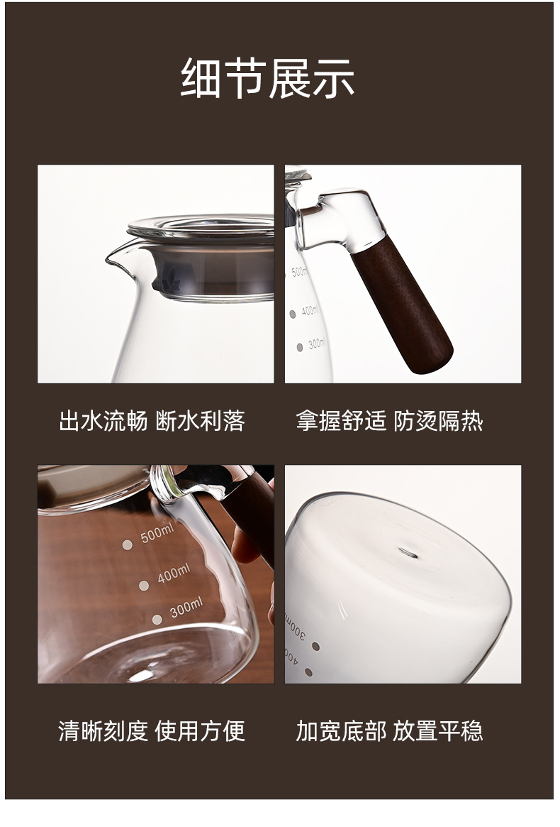 高硼硅玻璃手冲咖啡壶侧木把大容量分享壶可电陶炉加热摩卡壶