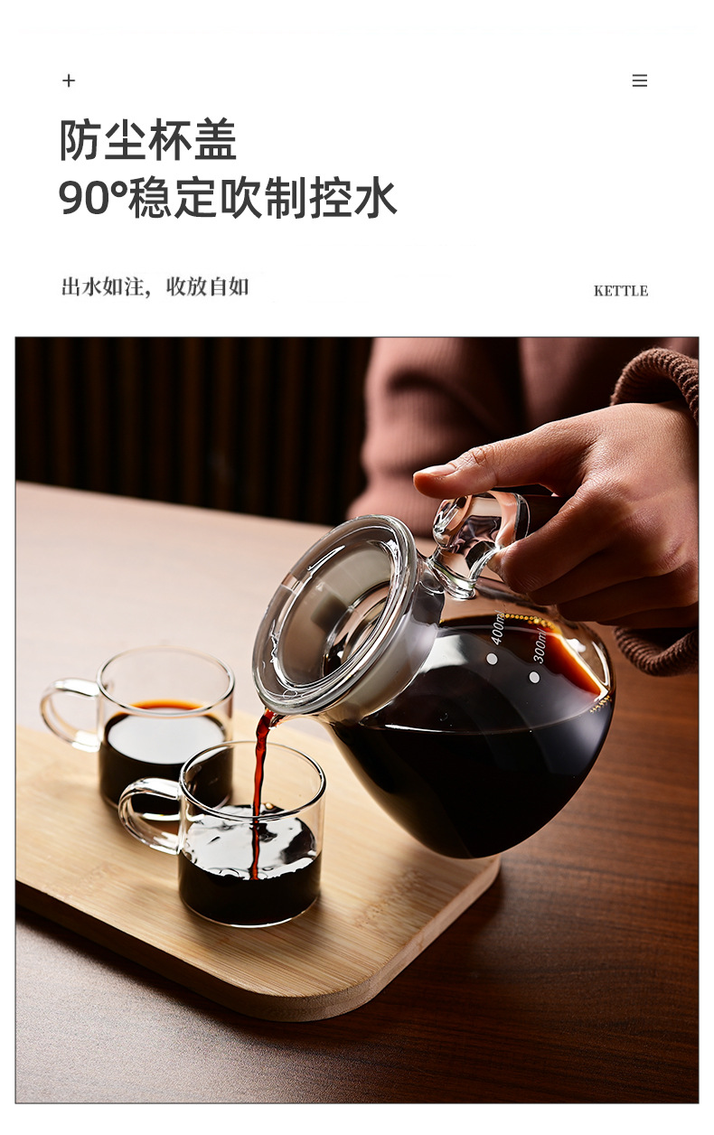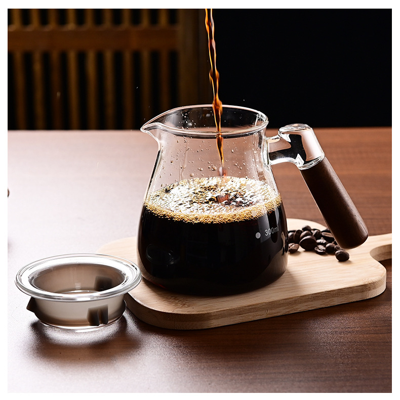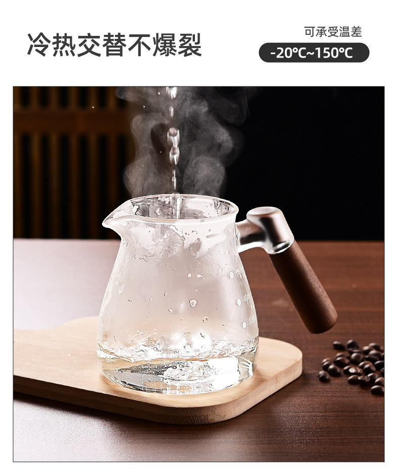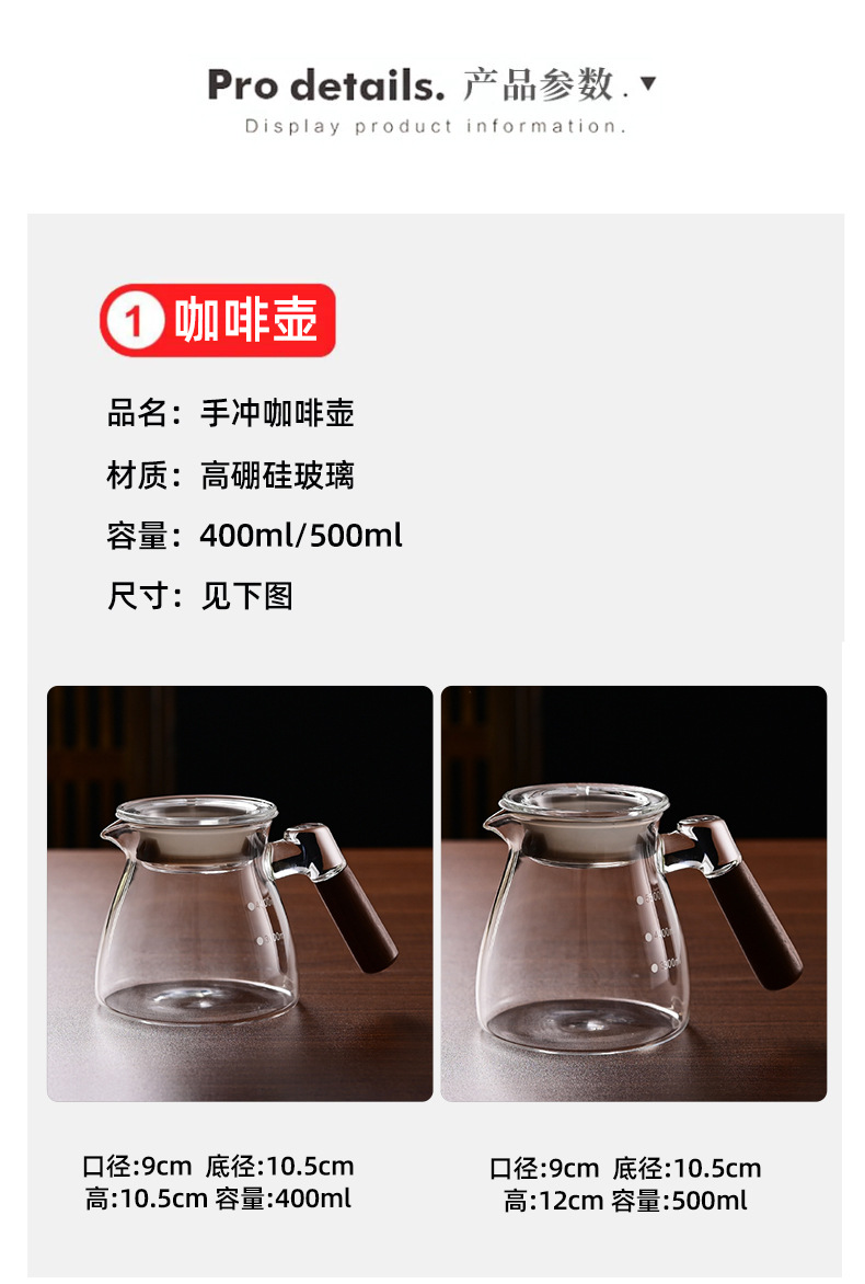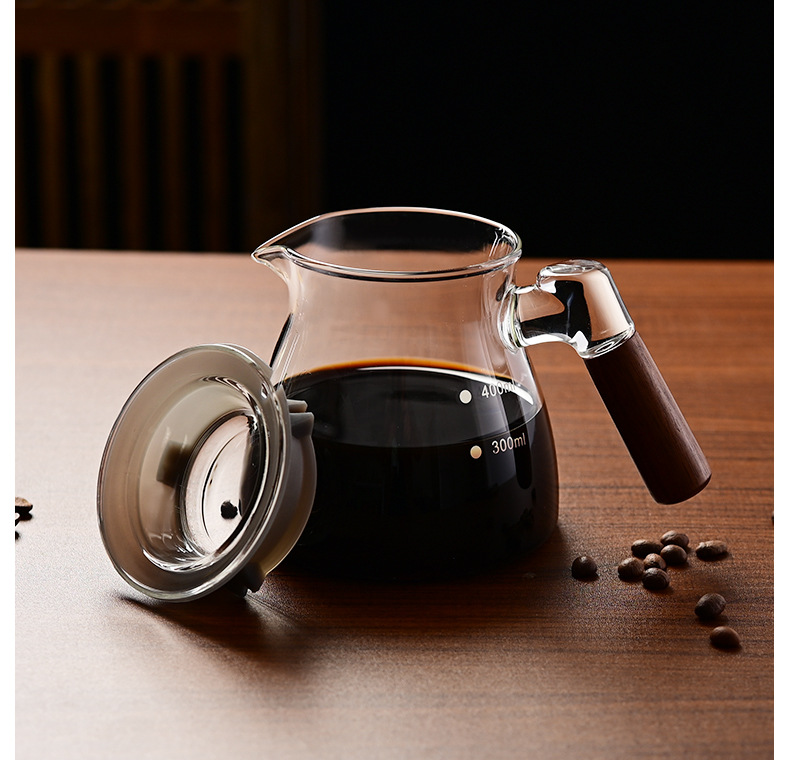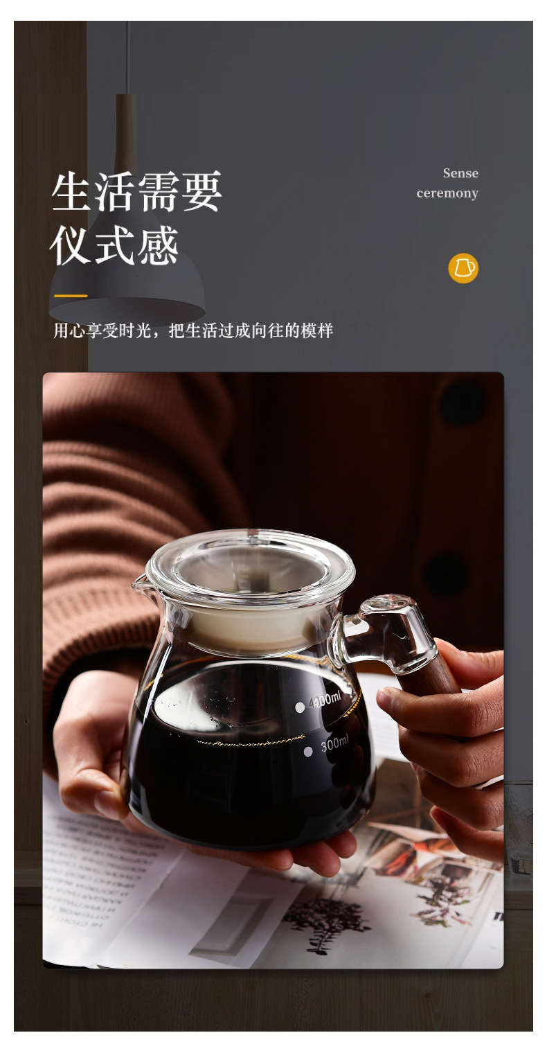 高硼硅玻璃手冲咖啡壶侧木把大容量分享壶可电陶炉加热摩卡壶