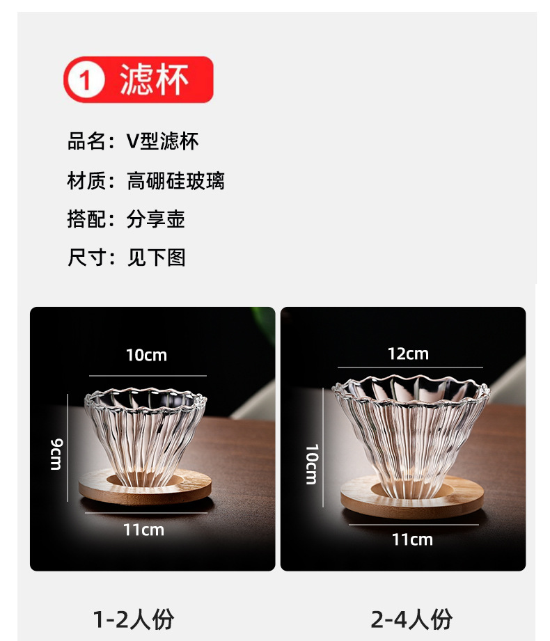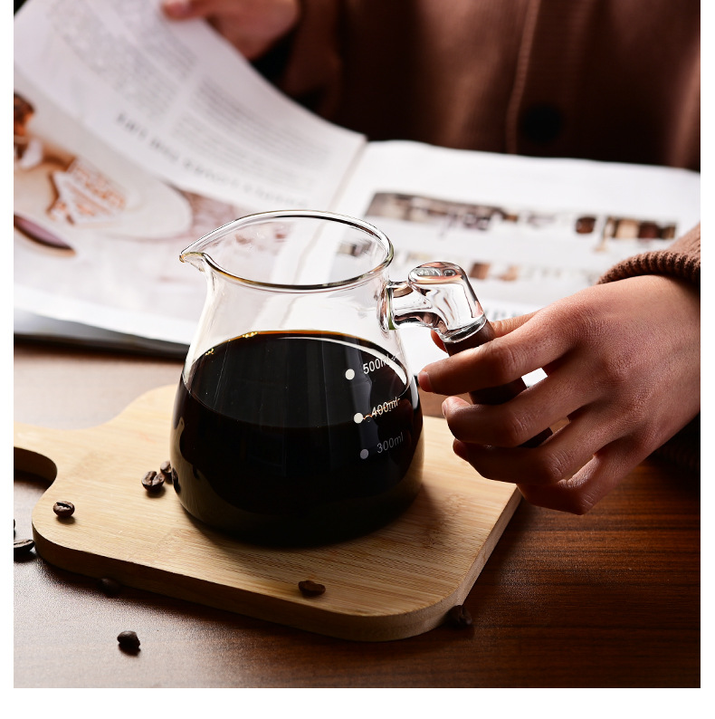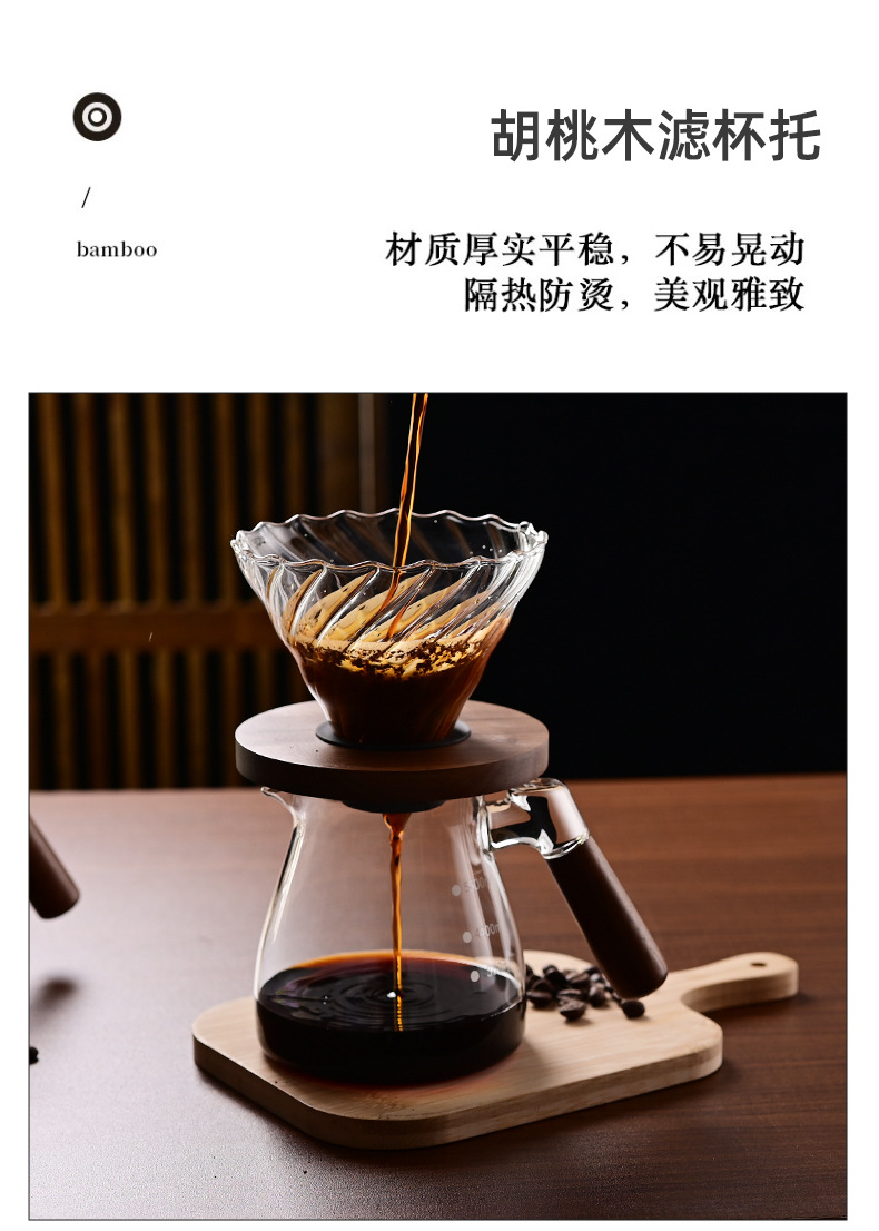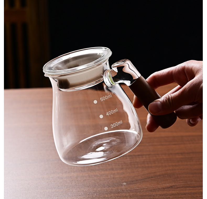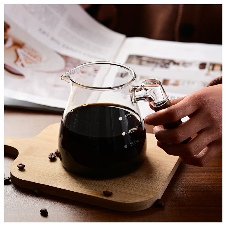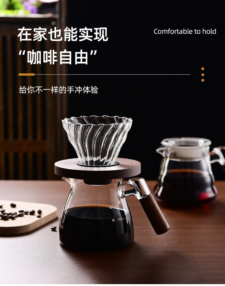 高硼硅玻璃手冲咖啡壶侧木把大容量分享壶可电陶炉加热摩卡壶