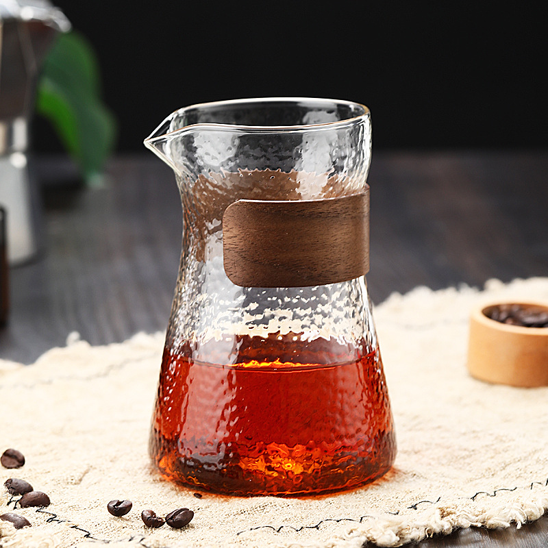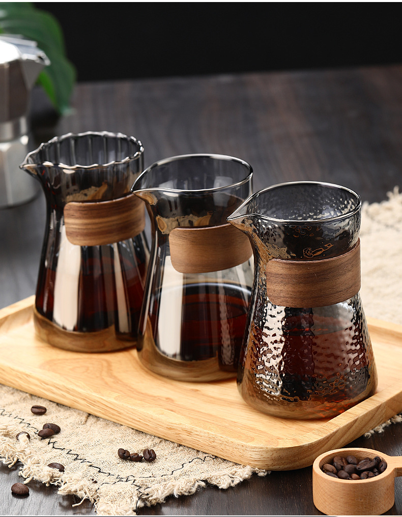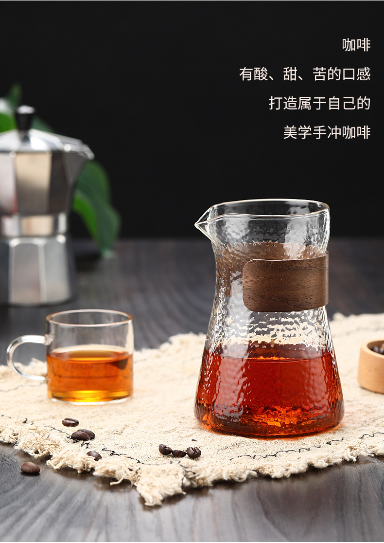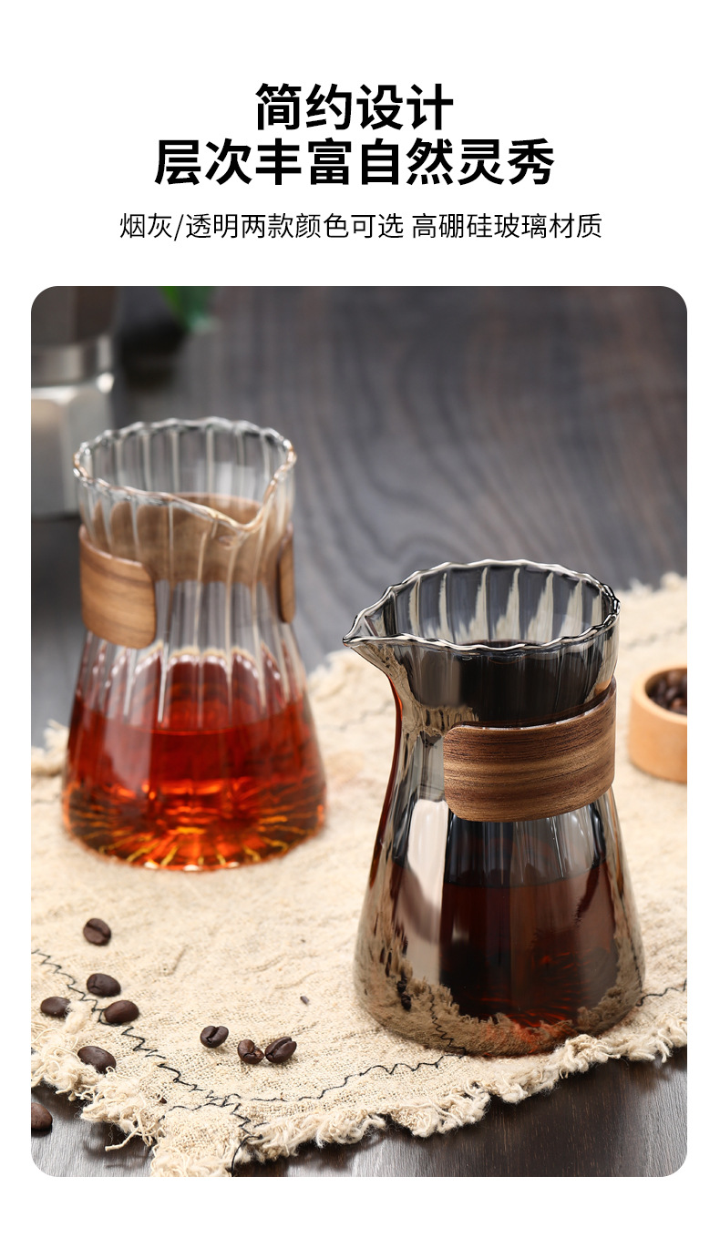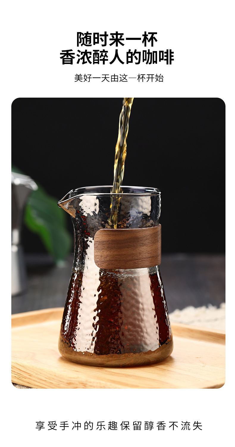 厂家热销高硼硅玻璃咖啡壶 日式防烫锤木纹手冲分享杯 可加印logo