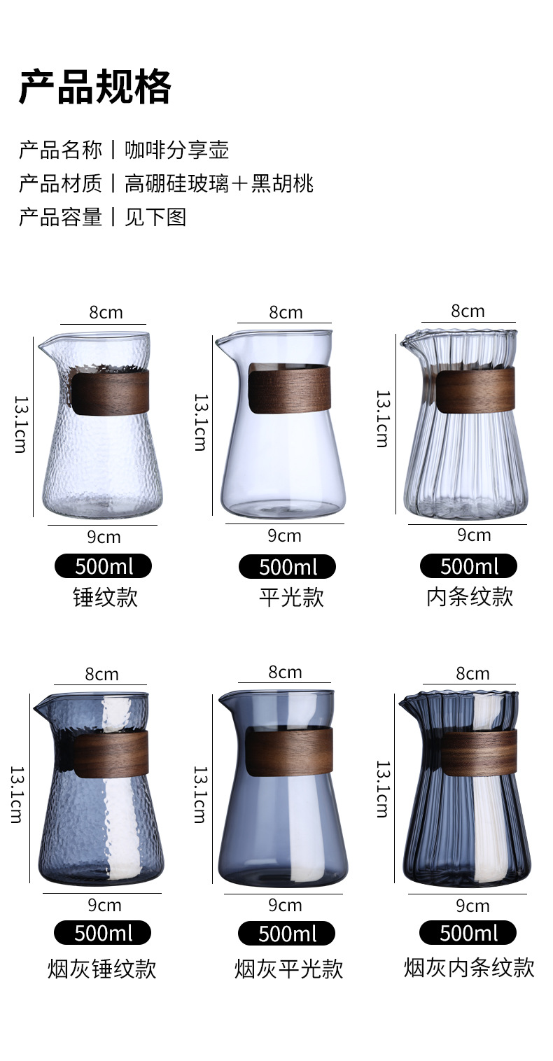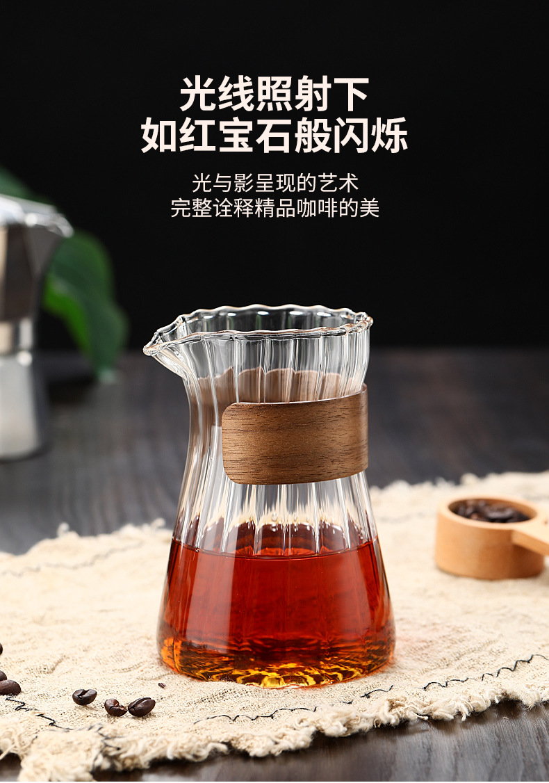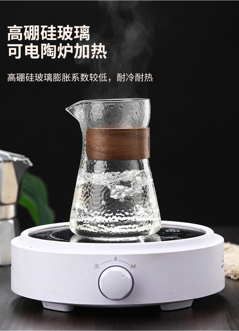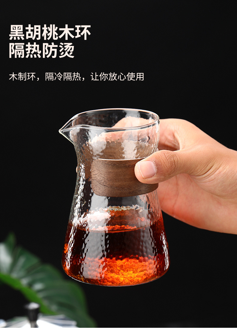 厂家热销高硼硅玻璃咖啡壶 日式防烫锤木纹手冲分享杯 可加印logo