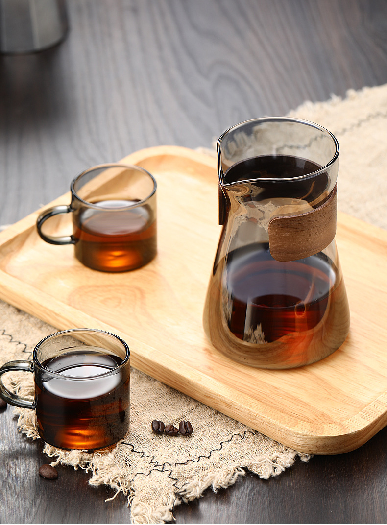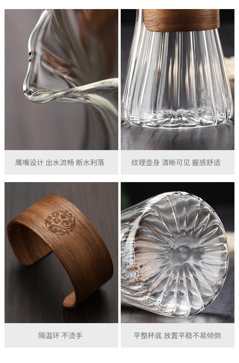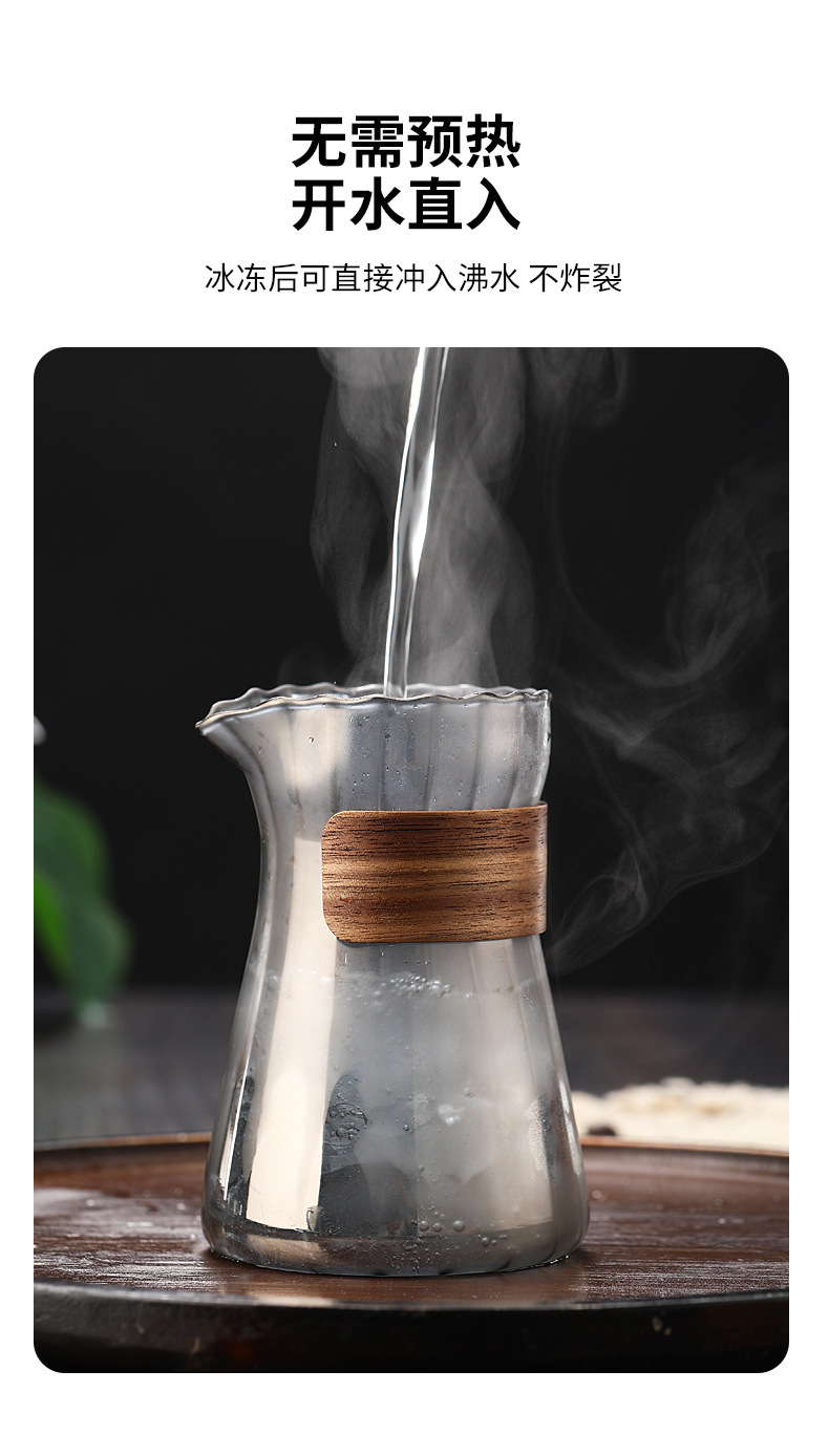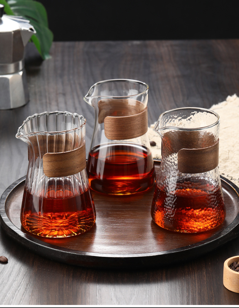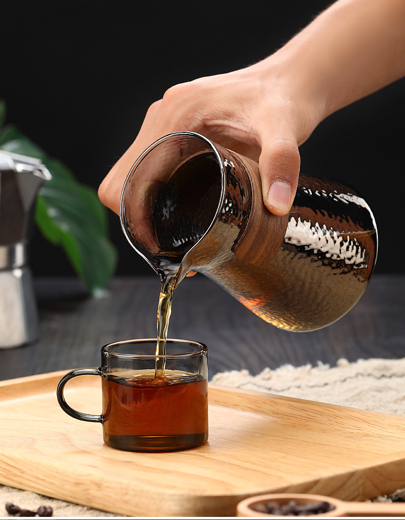 厂家热销高硼硅玻璃咖啡壶 日式防烫锤木纹手冲分享杯 可加印logo