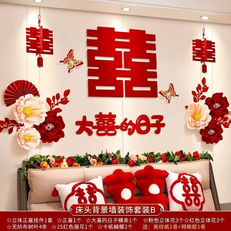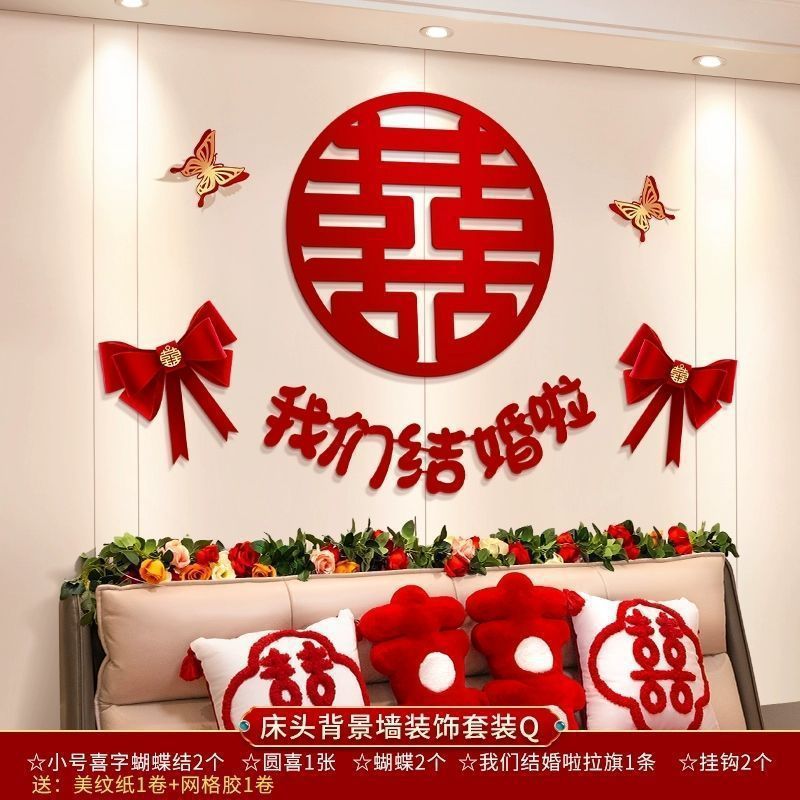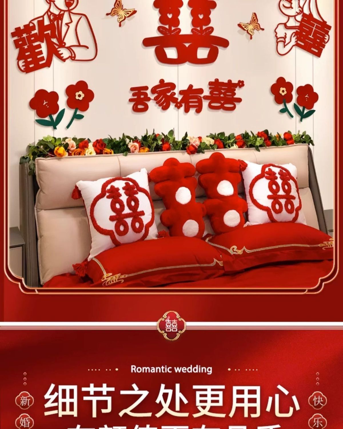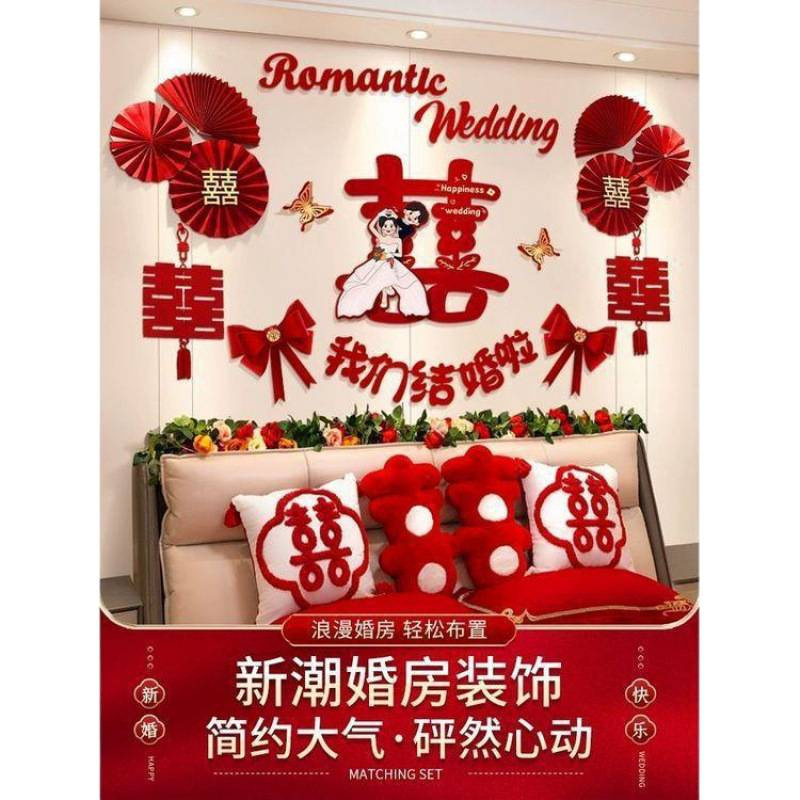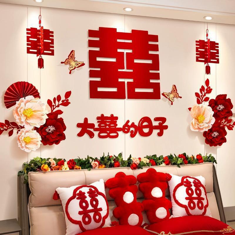 婚房装饰布置男方新房主卧女方卧室床头背景墙拉花结婚庆用品大全