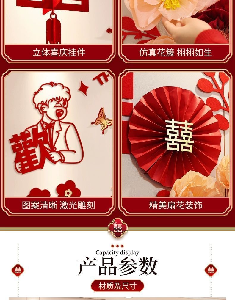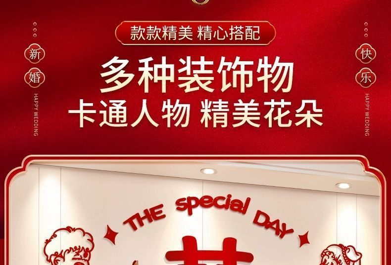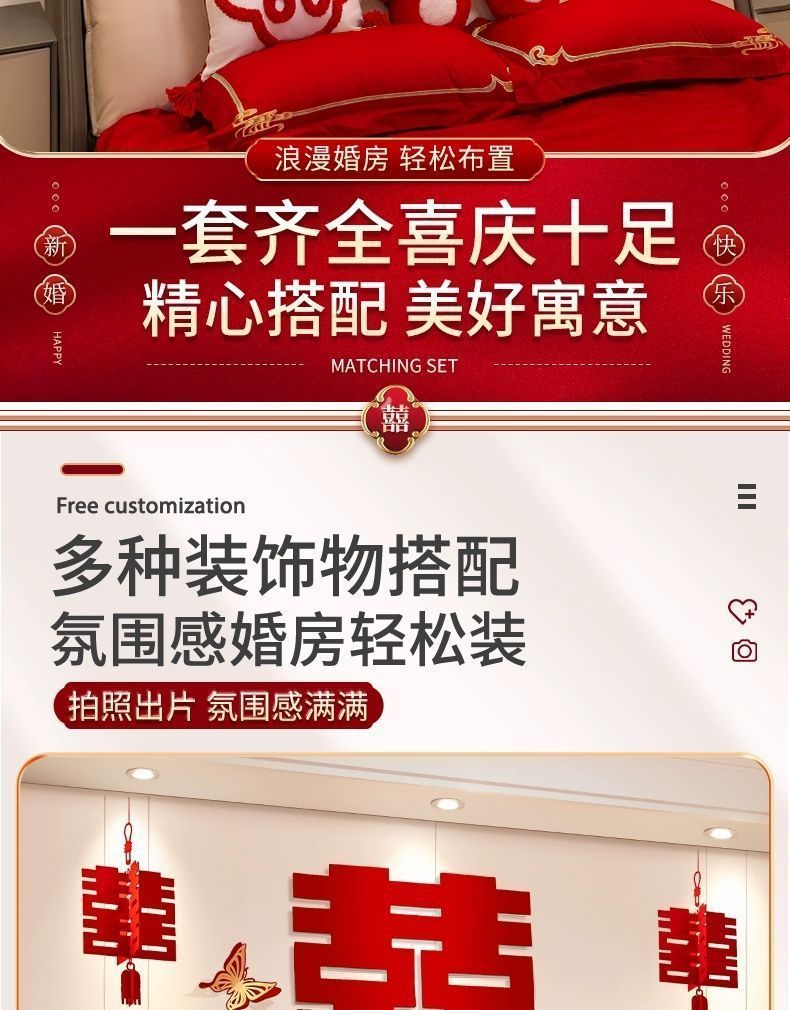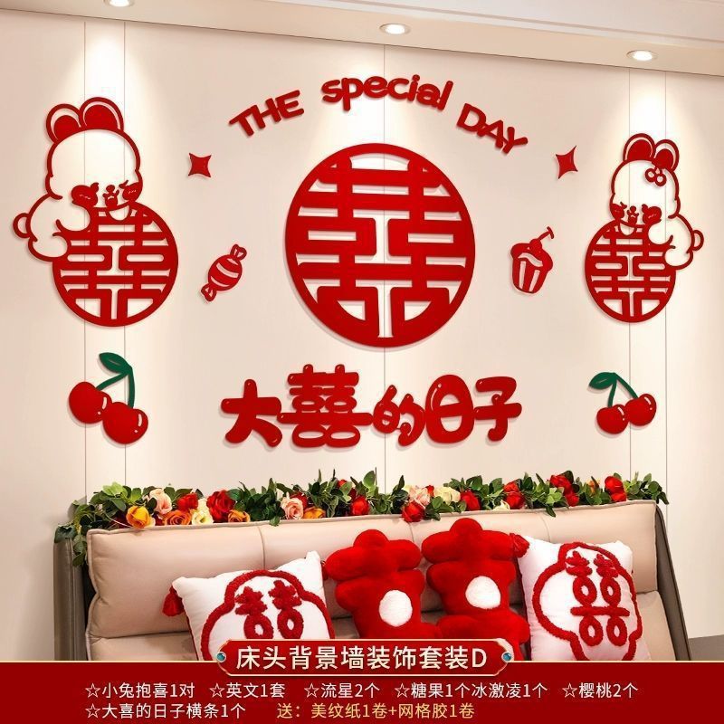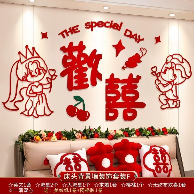 婚房装饰布置男方新房主卧女方卧室床头背景墙拉花结婚庆用品大全