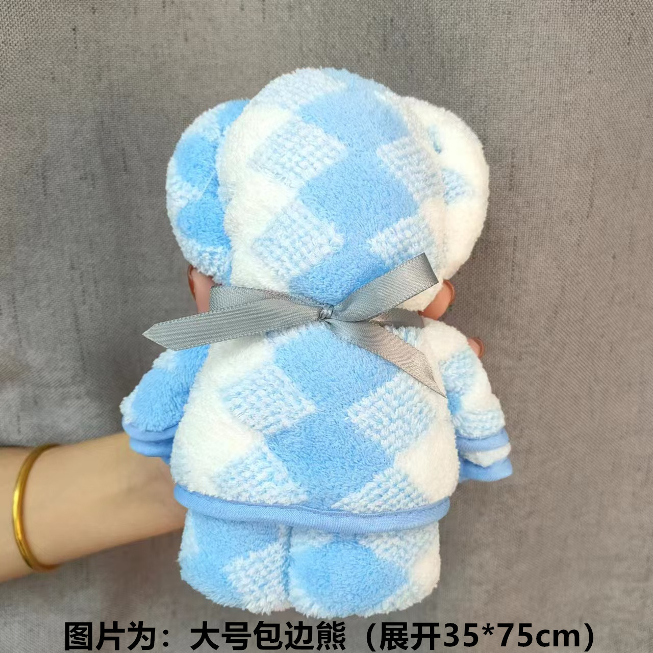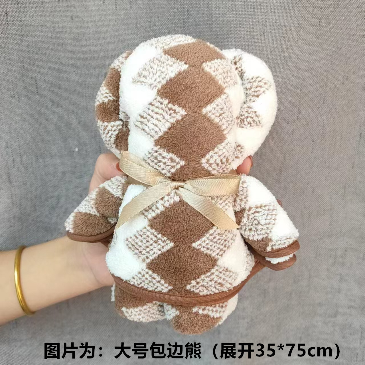 小熊造型毛巾经编珊瑚绒菱形格柔软吸水节日伴手礼品喜铺婚庆礼物