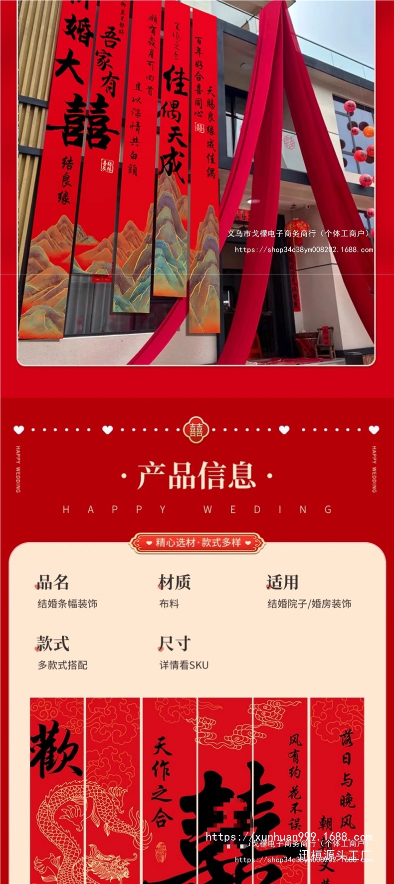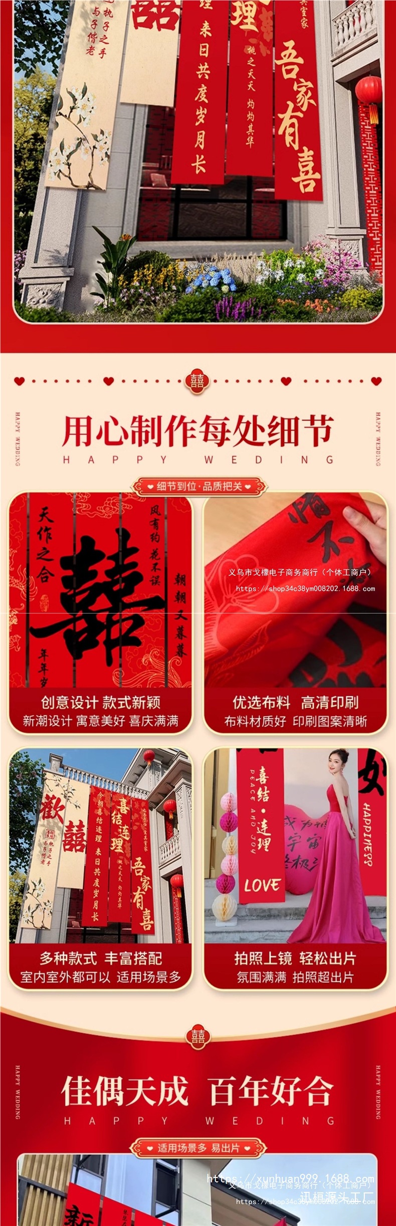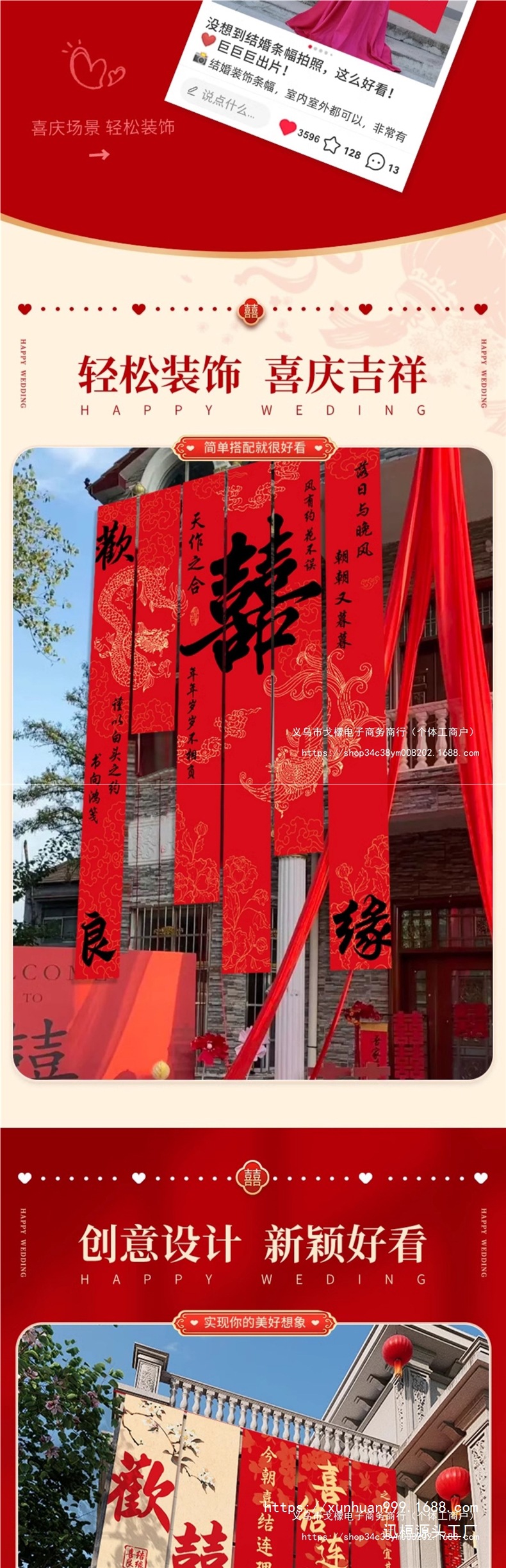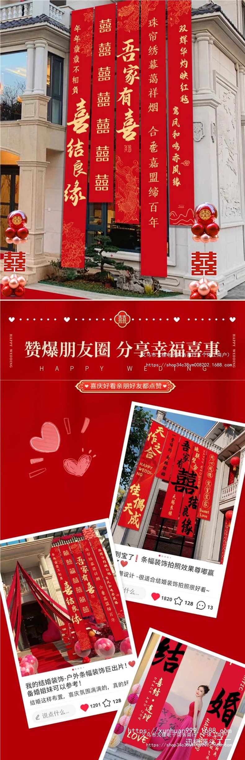 农村结婚院子装饰条幅挂布婚礼自建房室外庭院场景布置喜字横幅