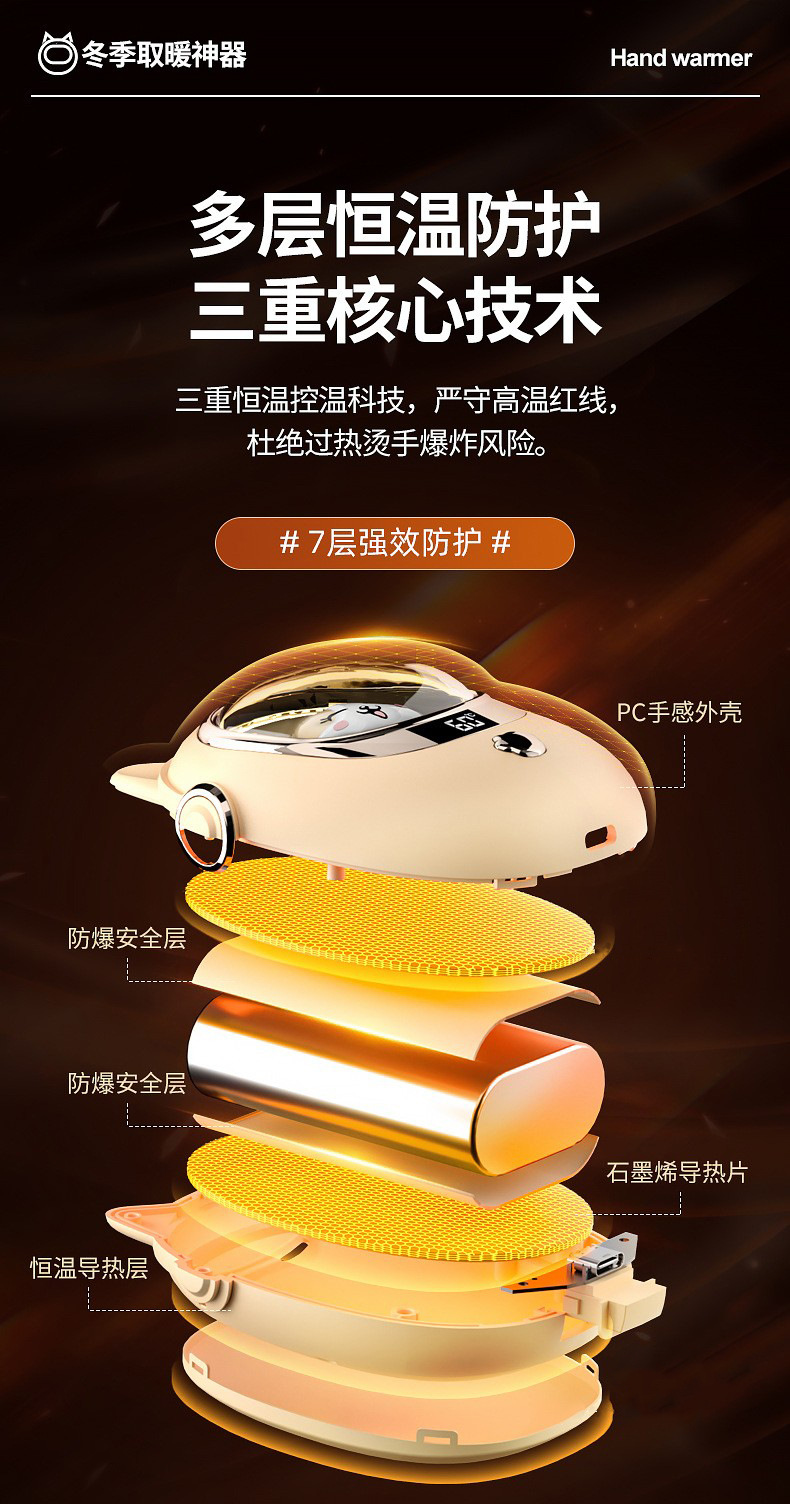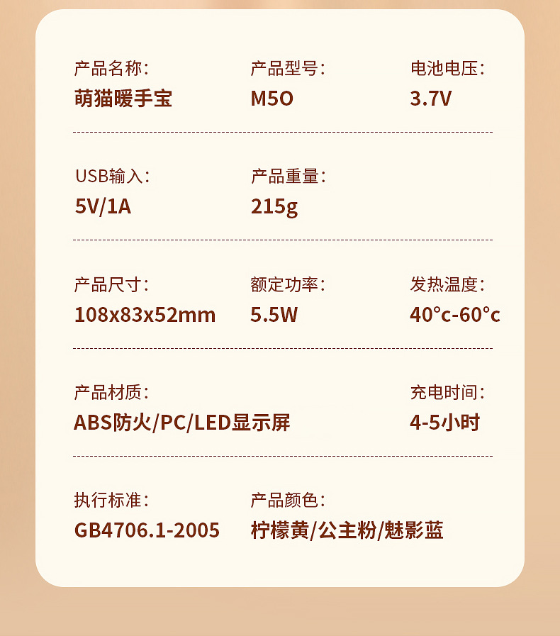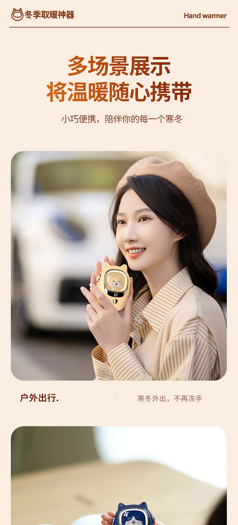 新款M50暖手宝 usb迷你便携充电式防爆卡通夜灯数显暖手宝宝礼品