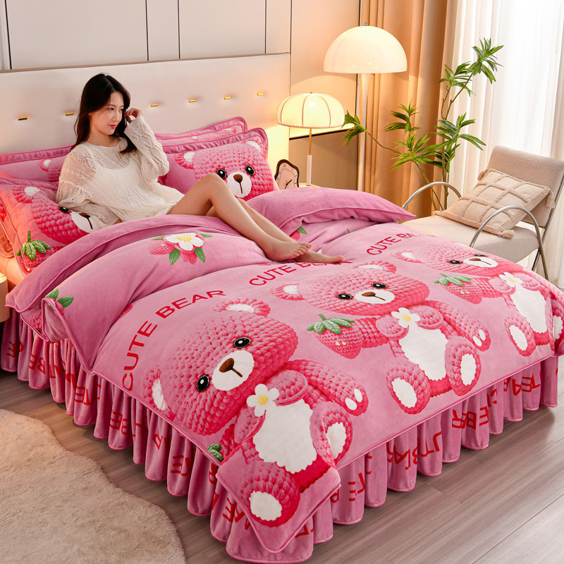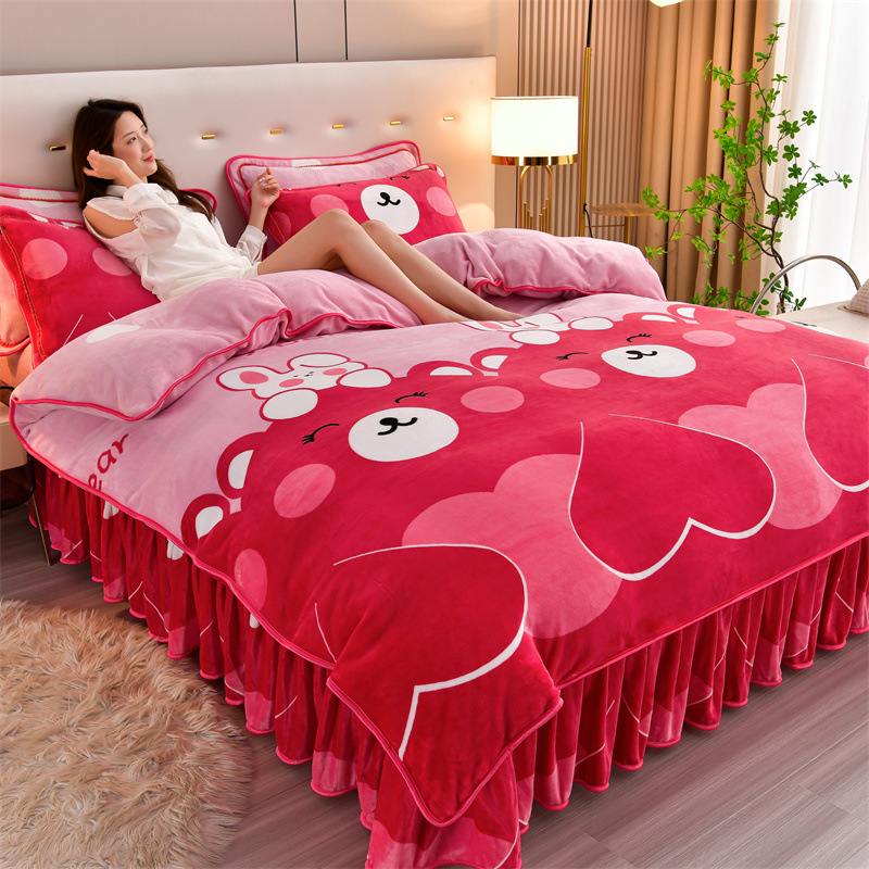 冬季加厚卡通被子牛奶四件套珊瑚绒四季款单件芯诺凡床上用品