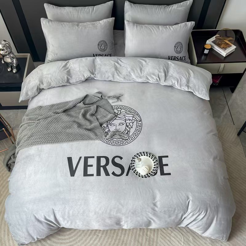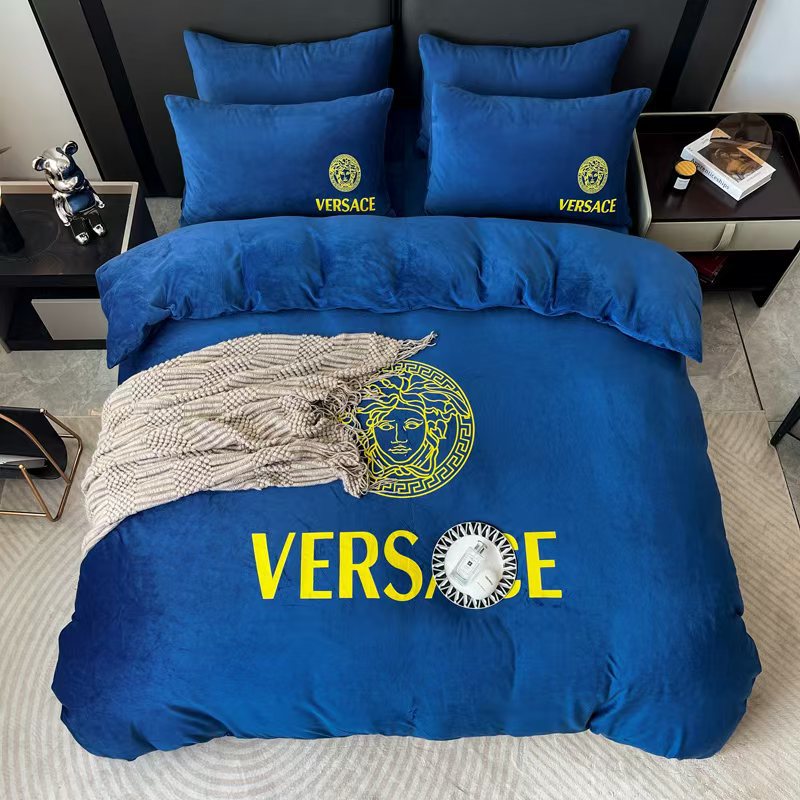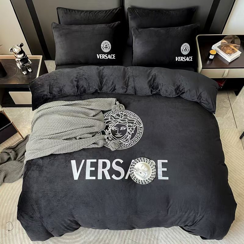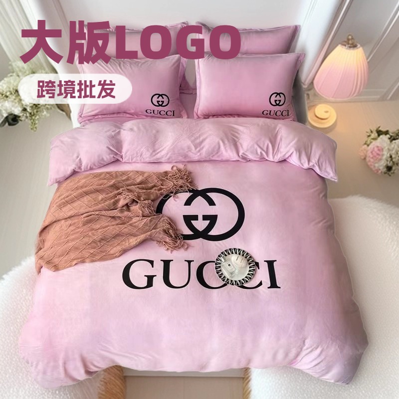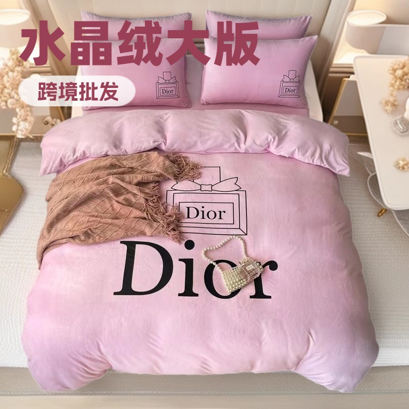 新款外贸潮牌轻奢高级感水晶绒四件套宝宝绒加厚加密被套床单床笠