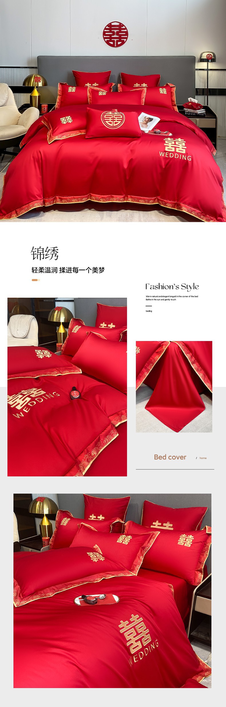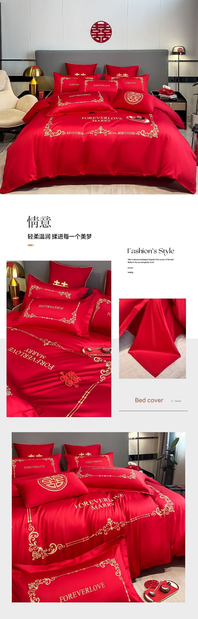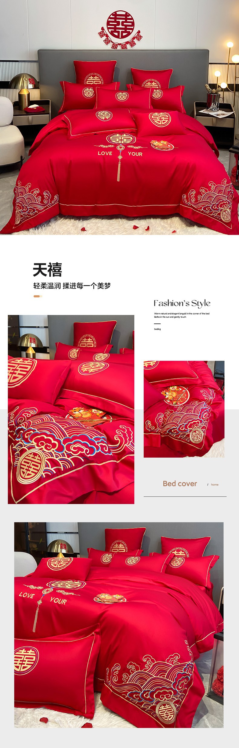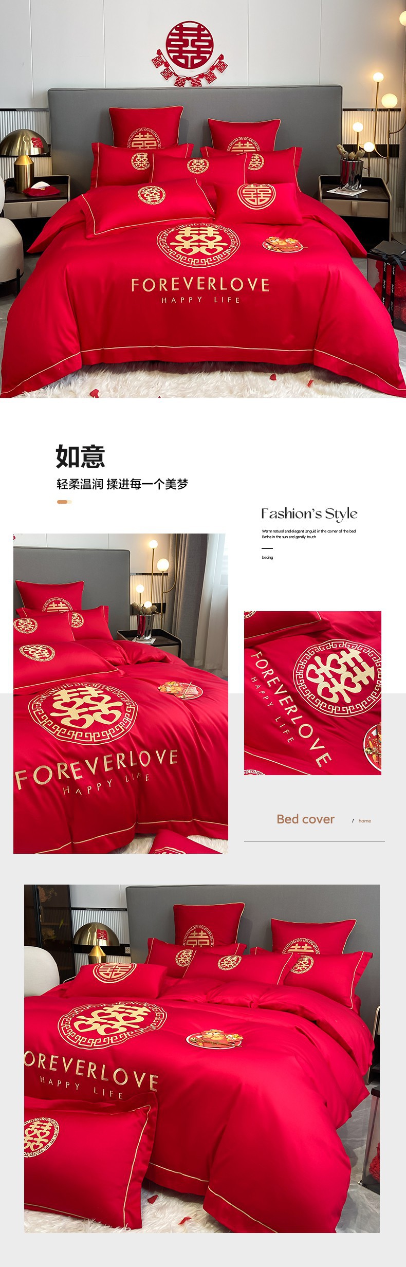 结婚四件套大红刺绣被套南通婚庆床上用品喜庆龙凤床单被罩4件套