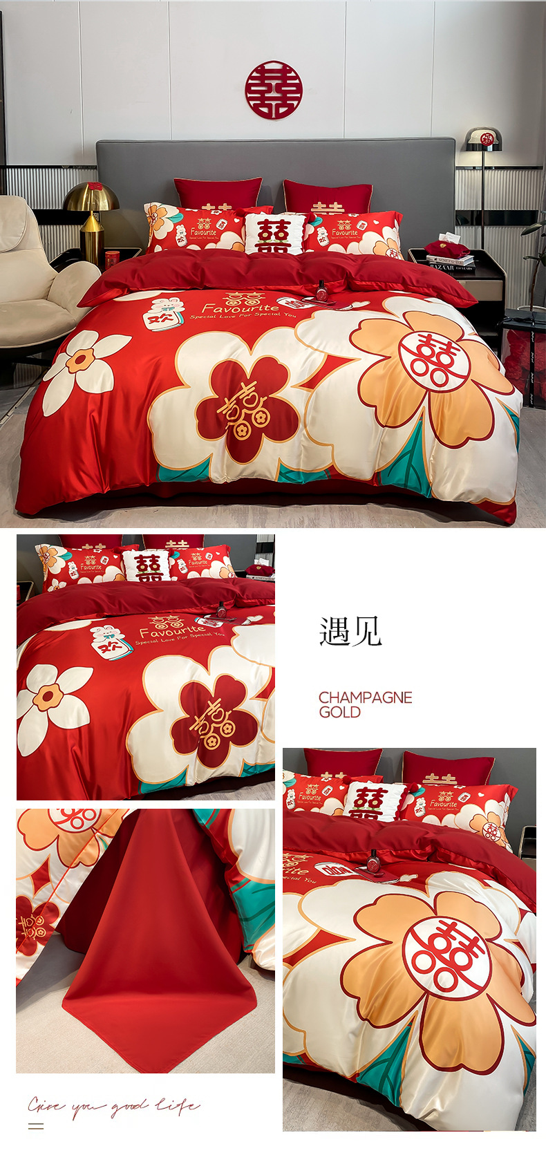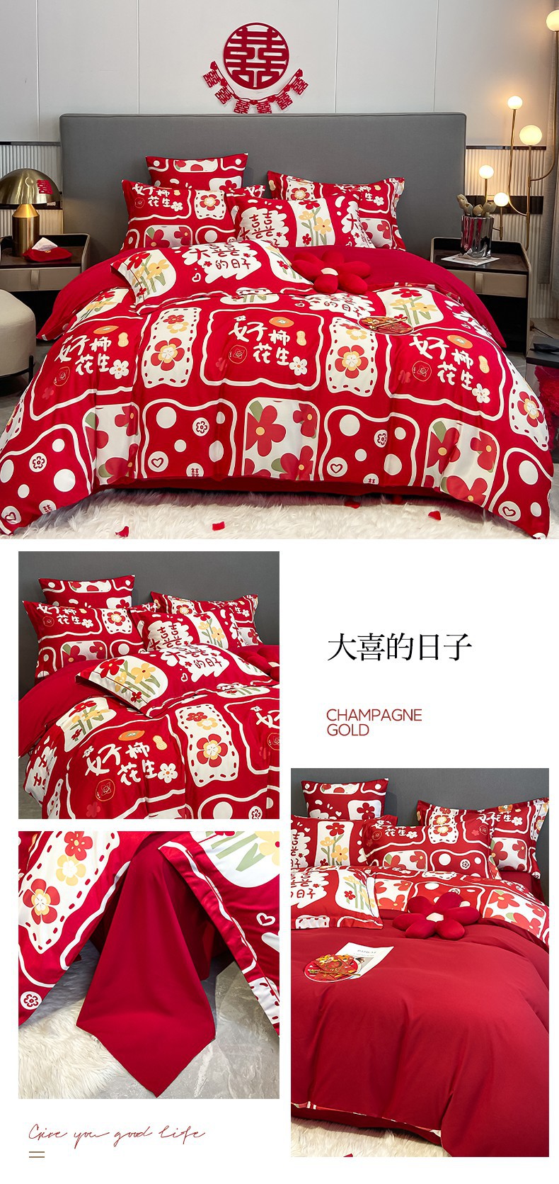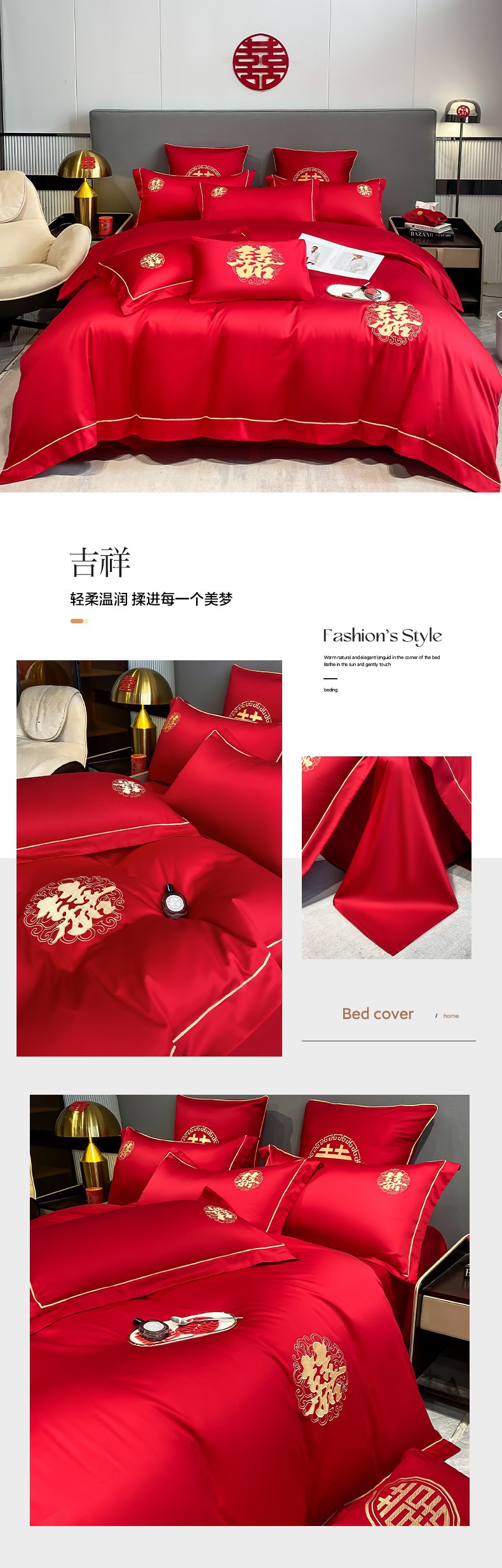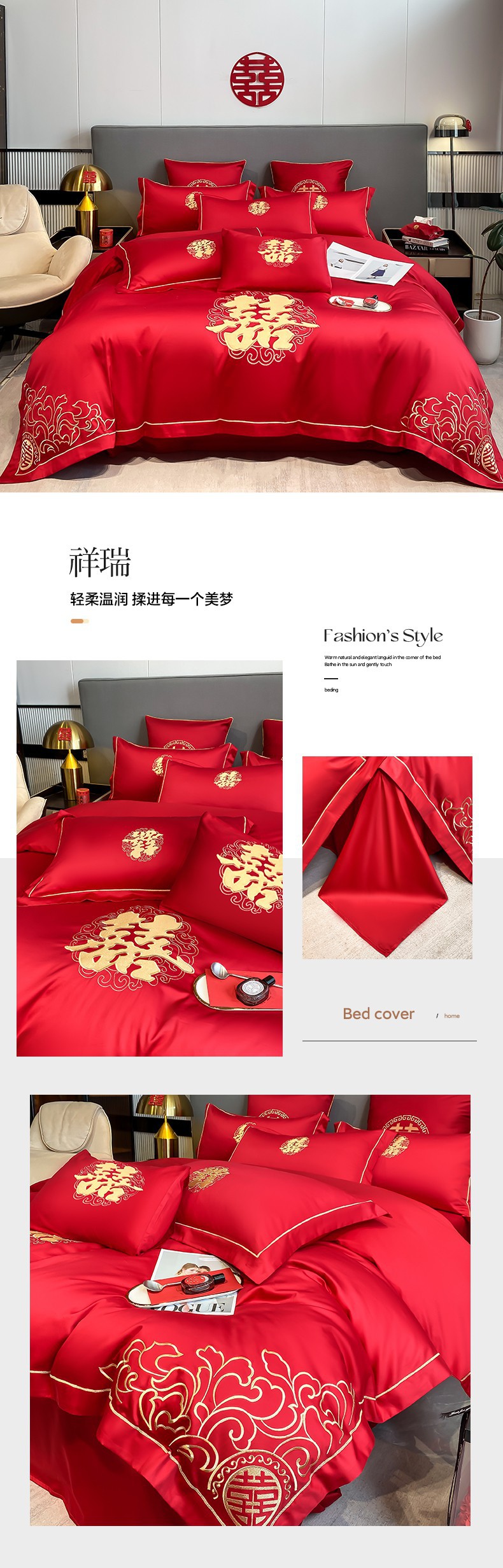 结婚四件套大红刺绣被套南通婚庆床上用品喜庆龙凤床单被罩4件套