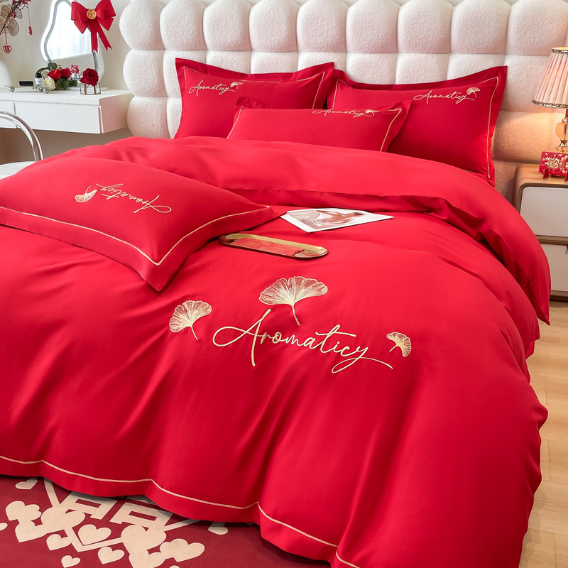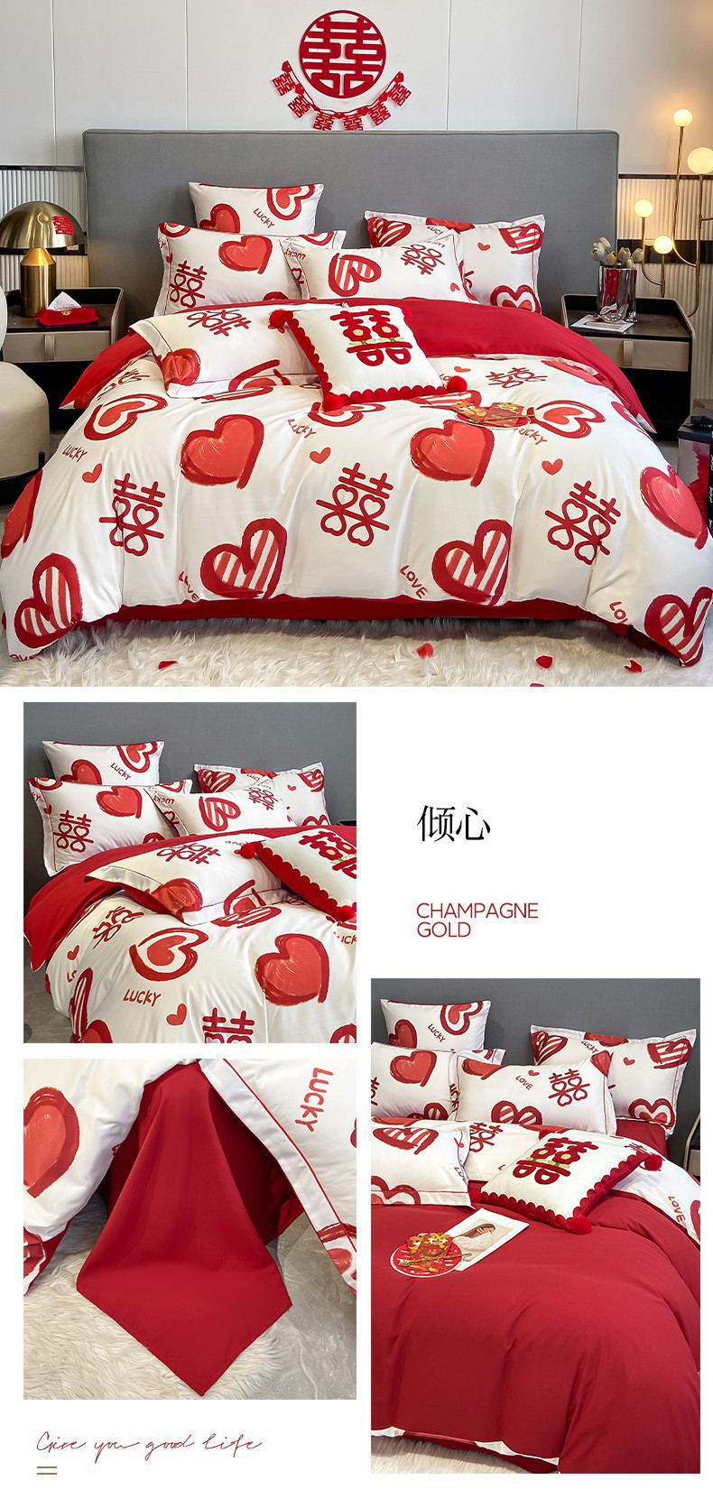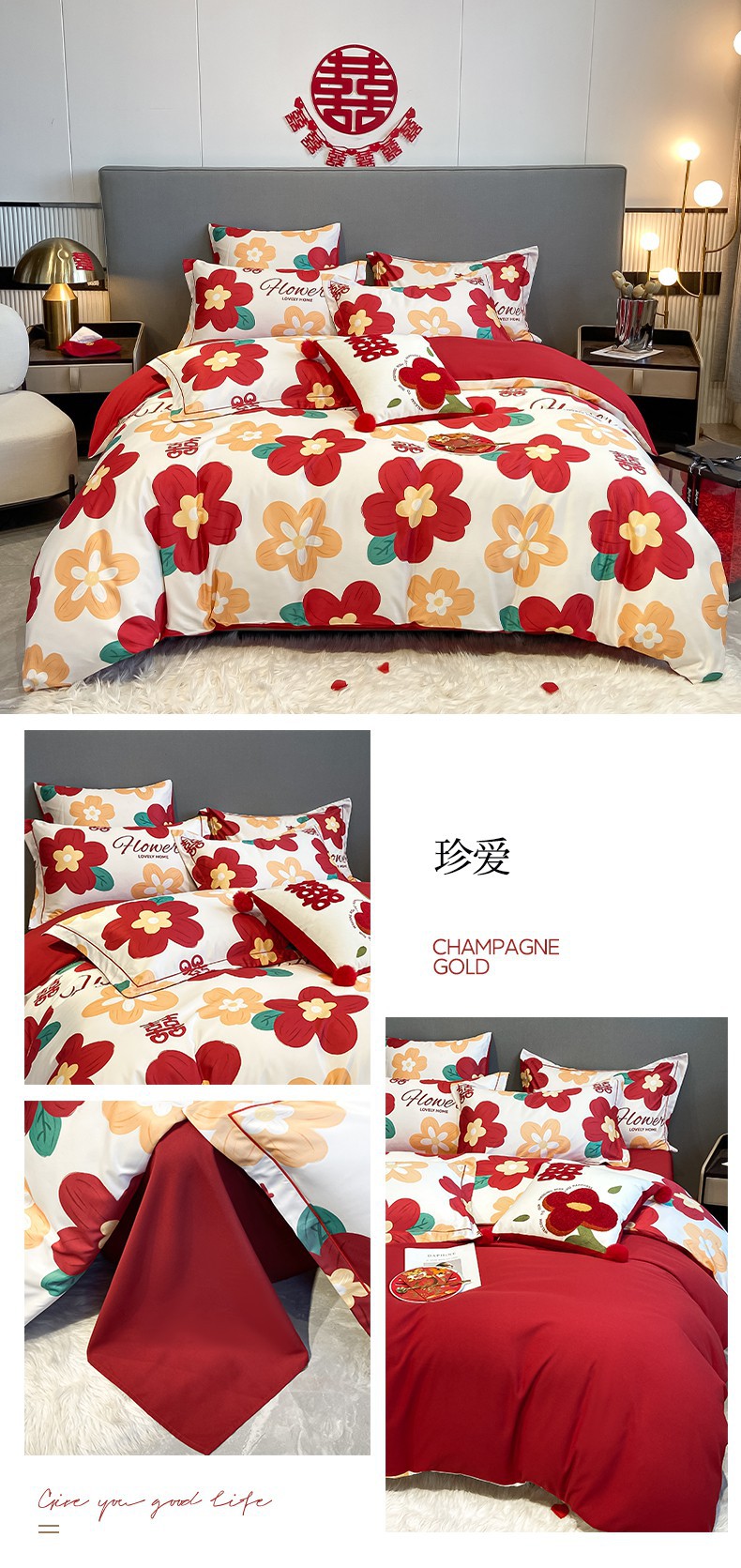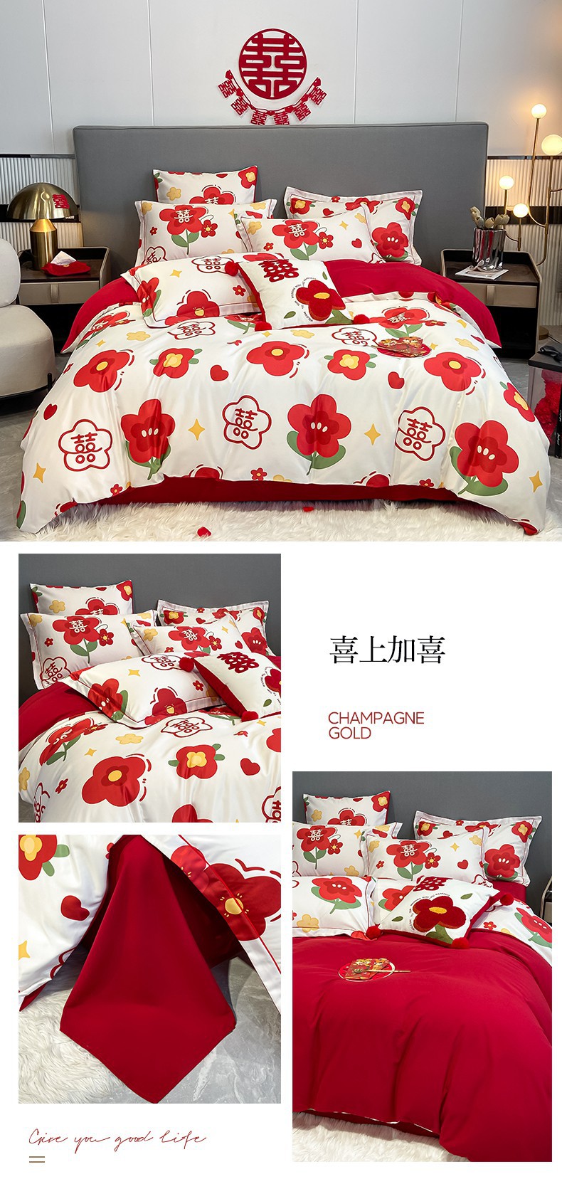 结婚四件套大红刺绣被套南通婚庆床上用品喜庆龙凤床单被罩4件套