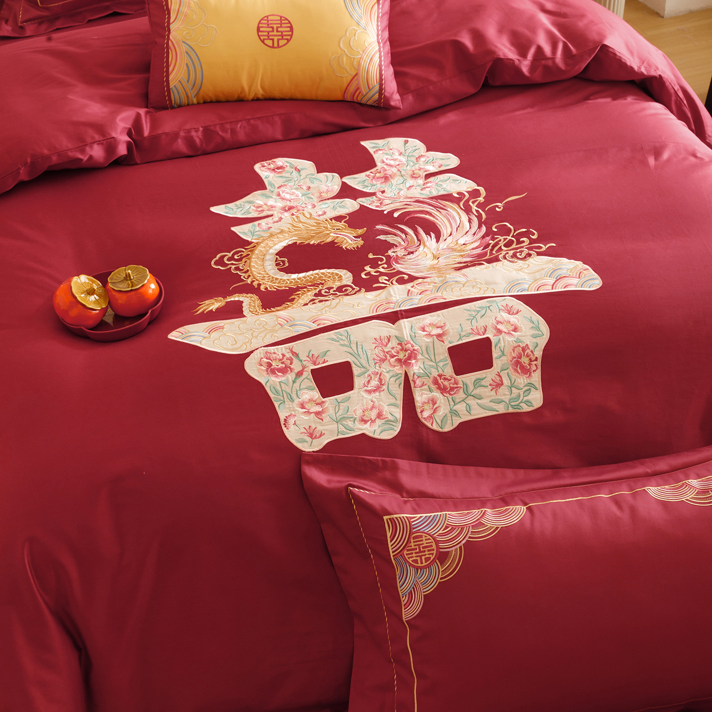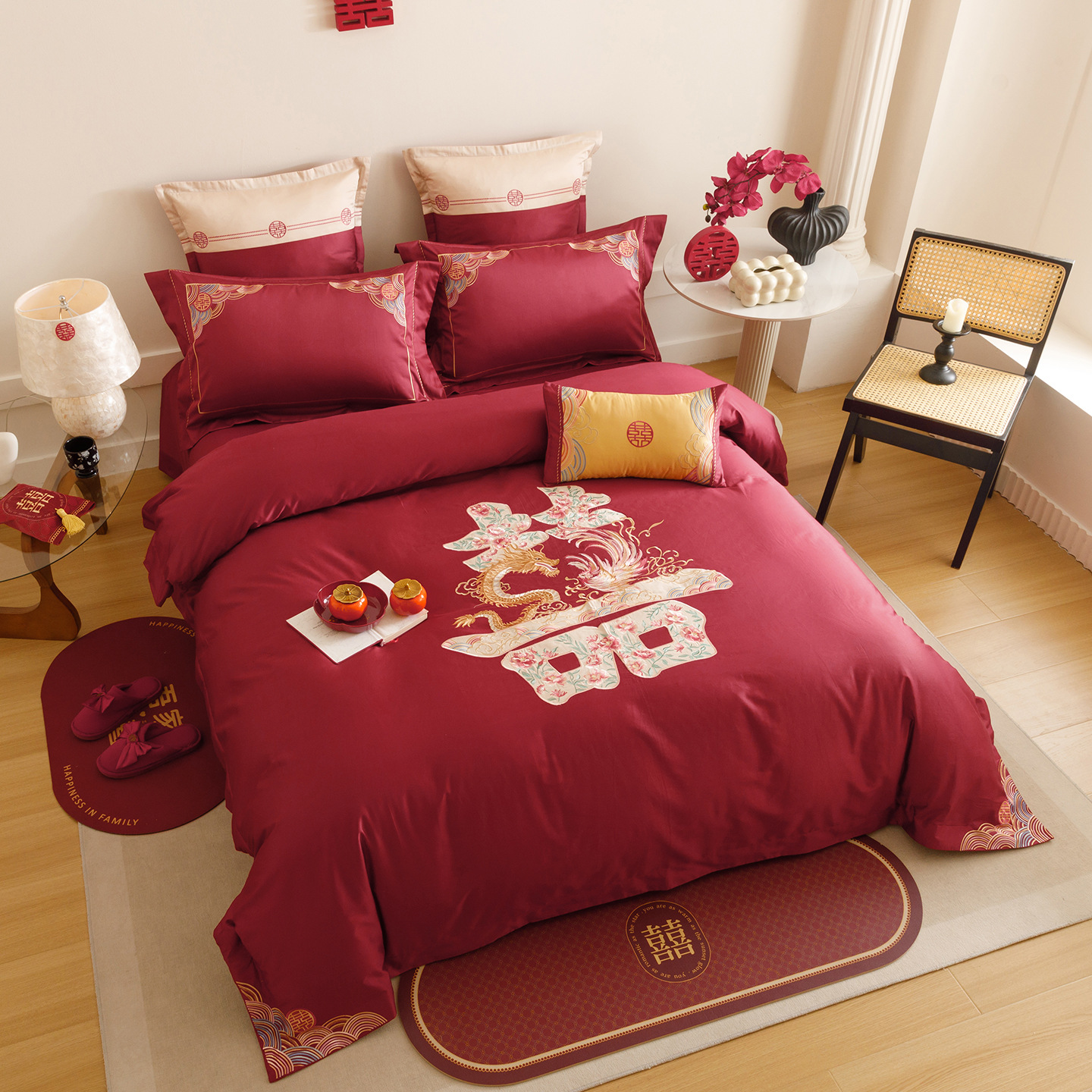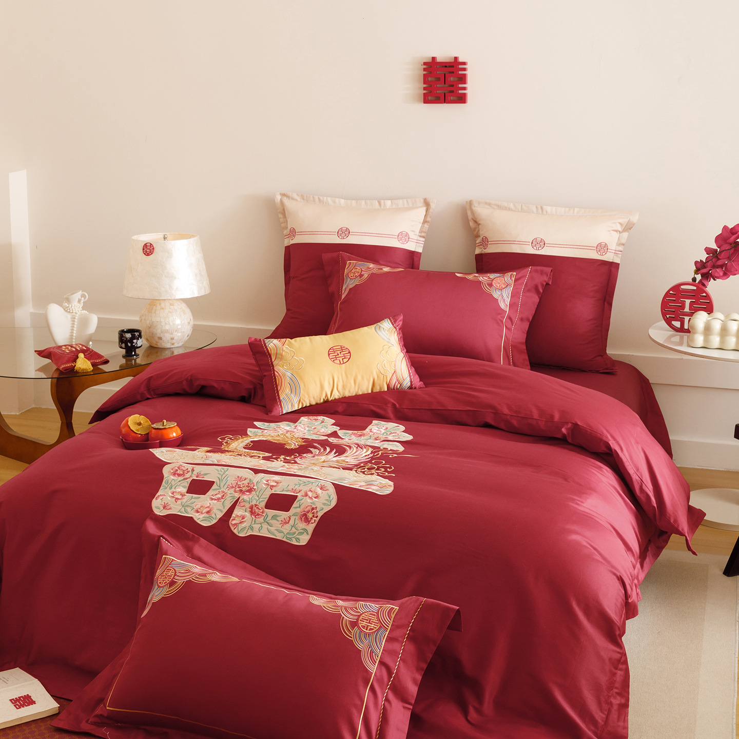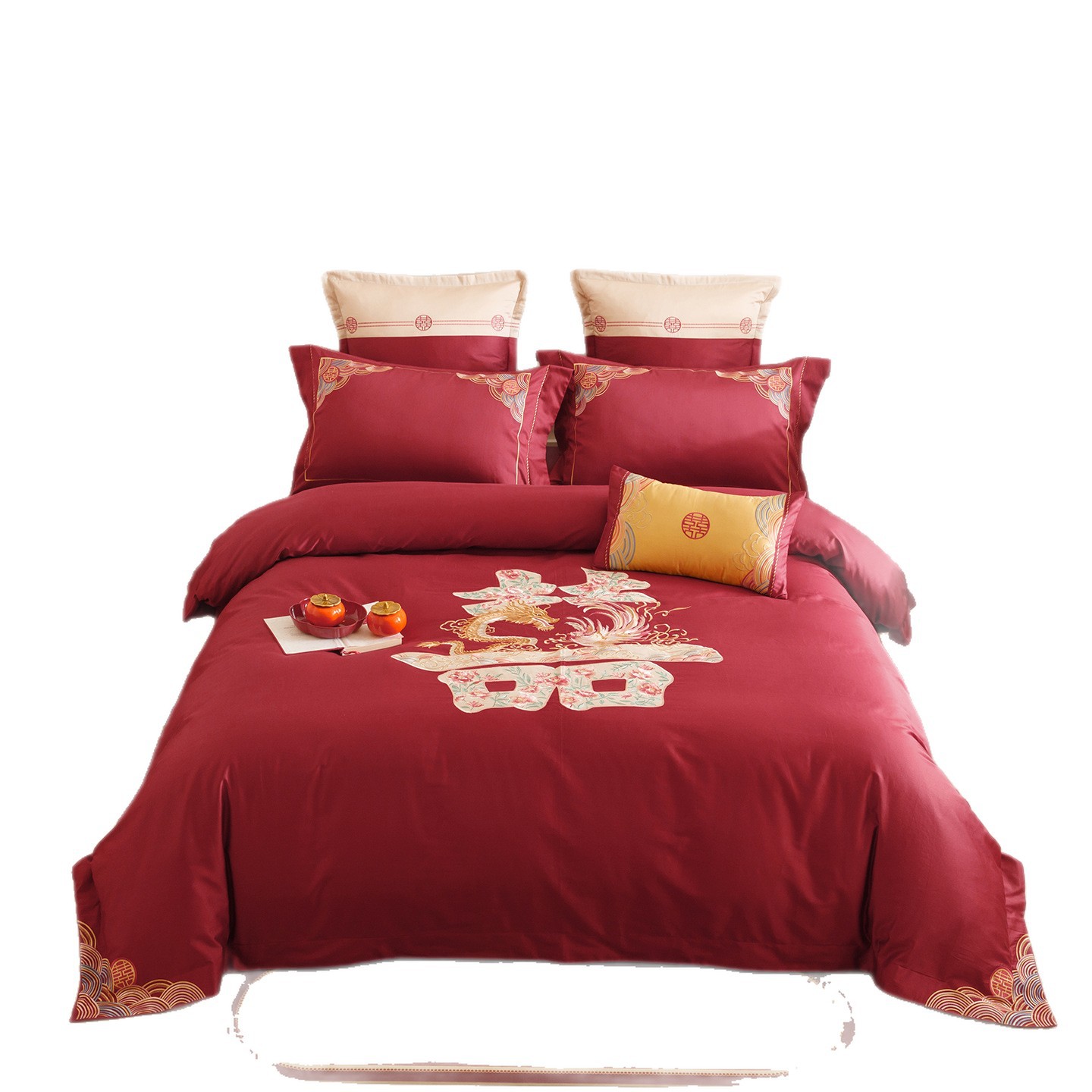 轻奢高级感全棉婚庆绣花红色喜庆结婚四件套婚房陪嫁喜被床上用品