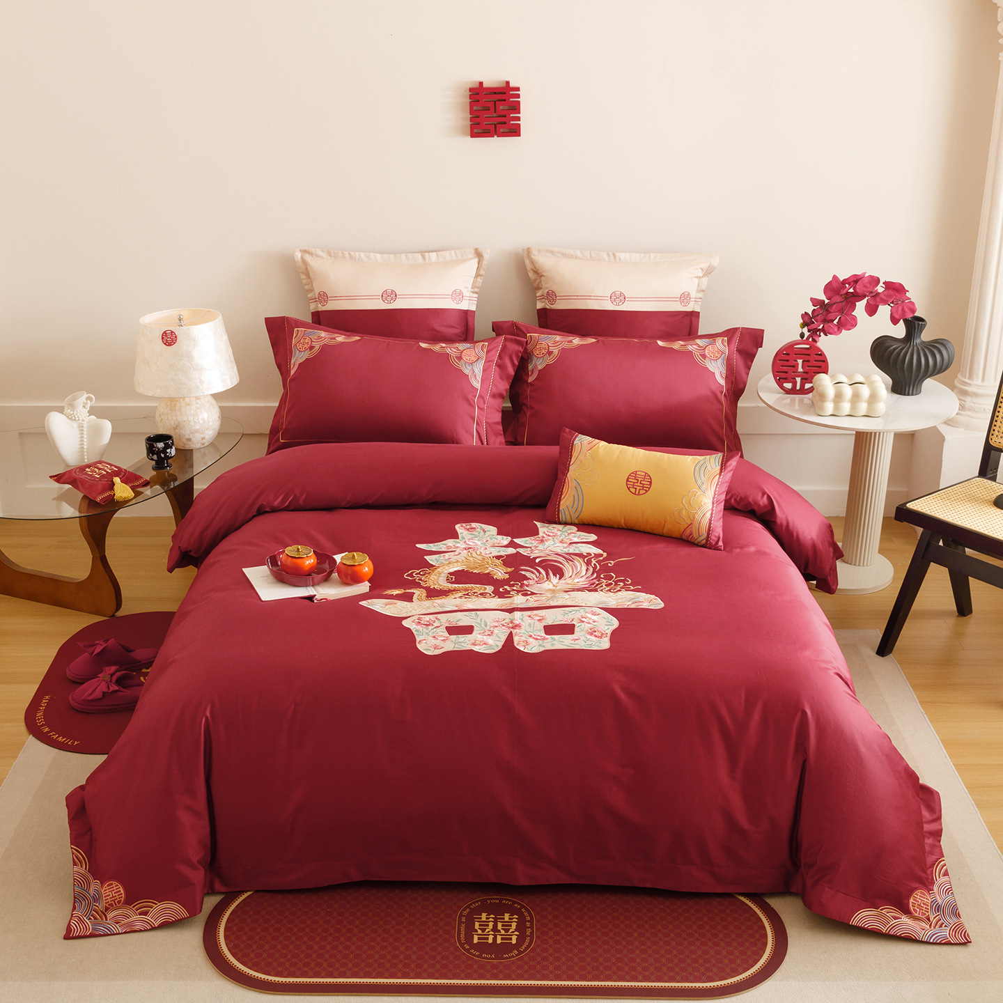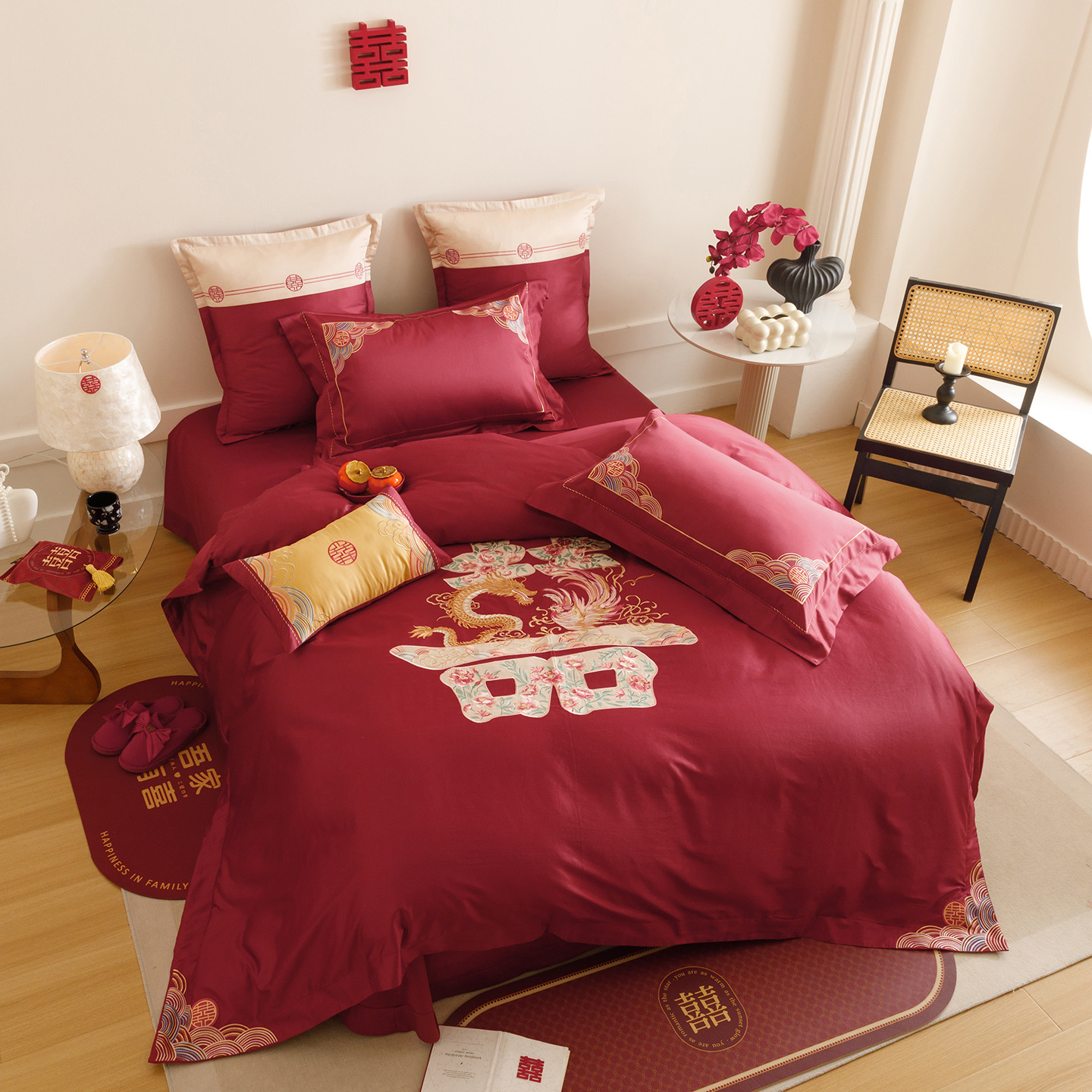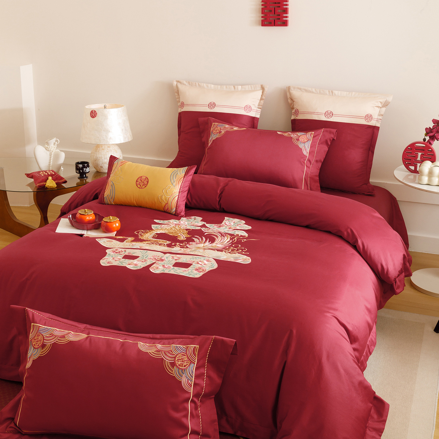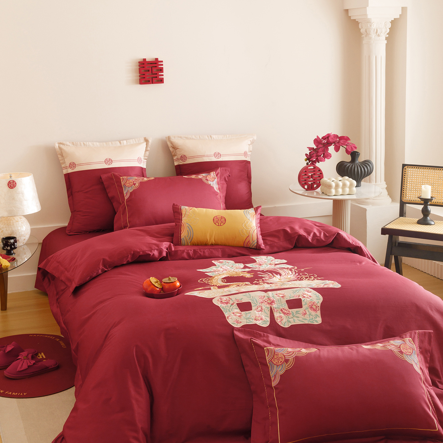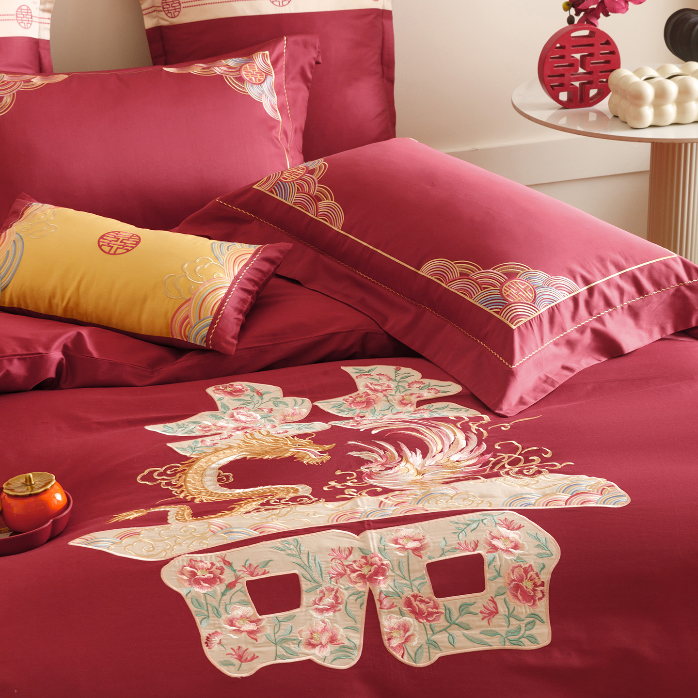 轻奢高级感全棉婚庆绣花红色喜庆结婚四件套婚房陪嫁喜被床上用品
