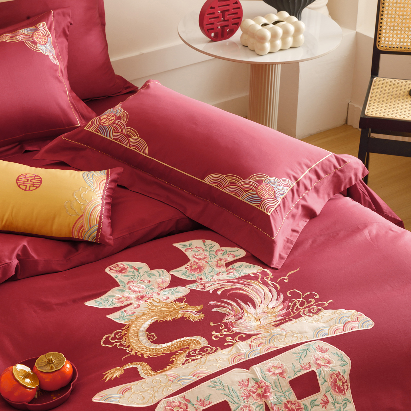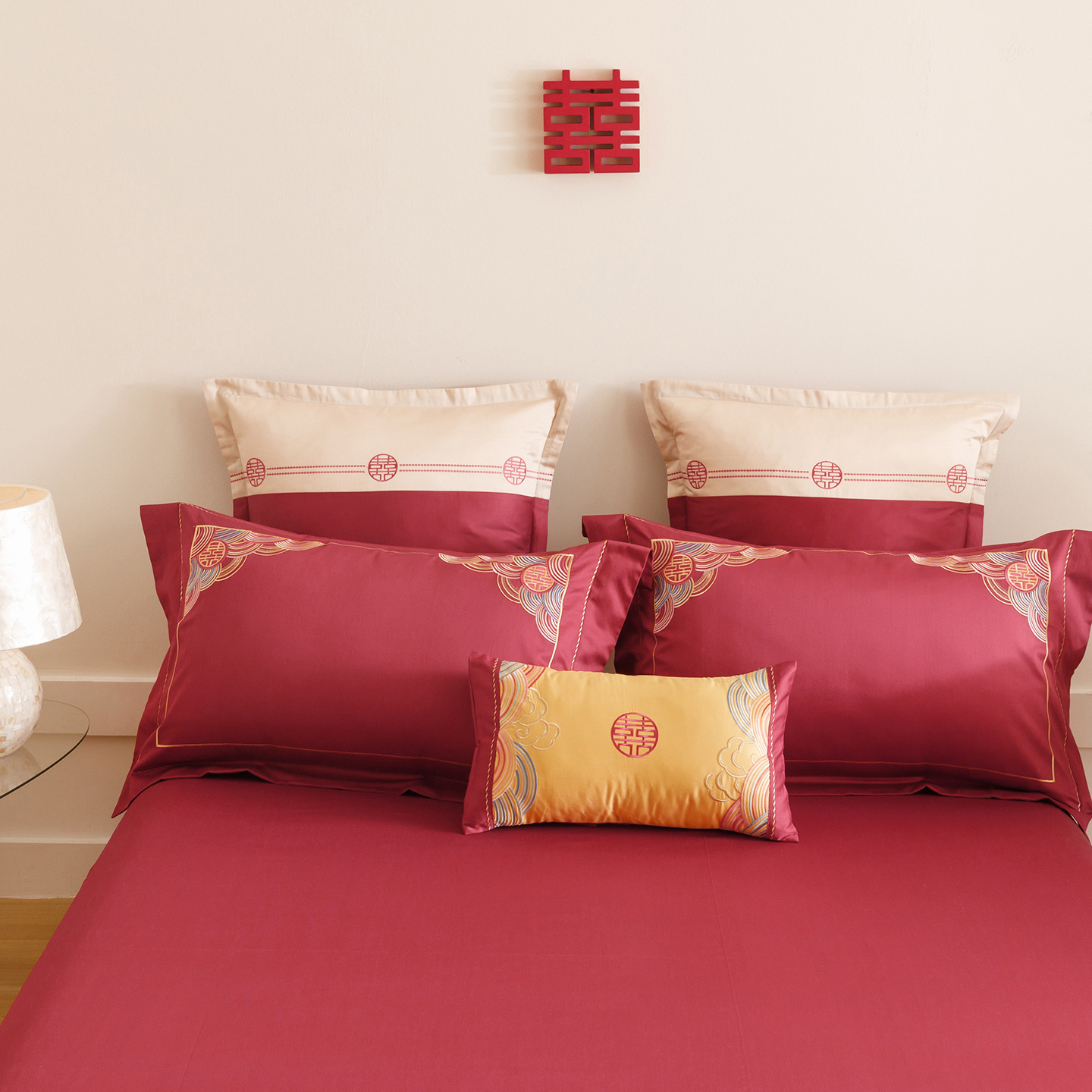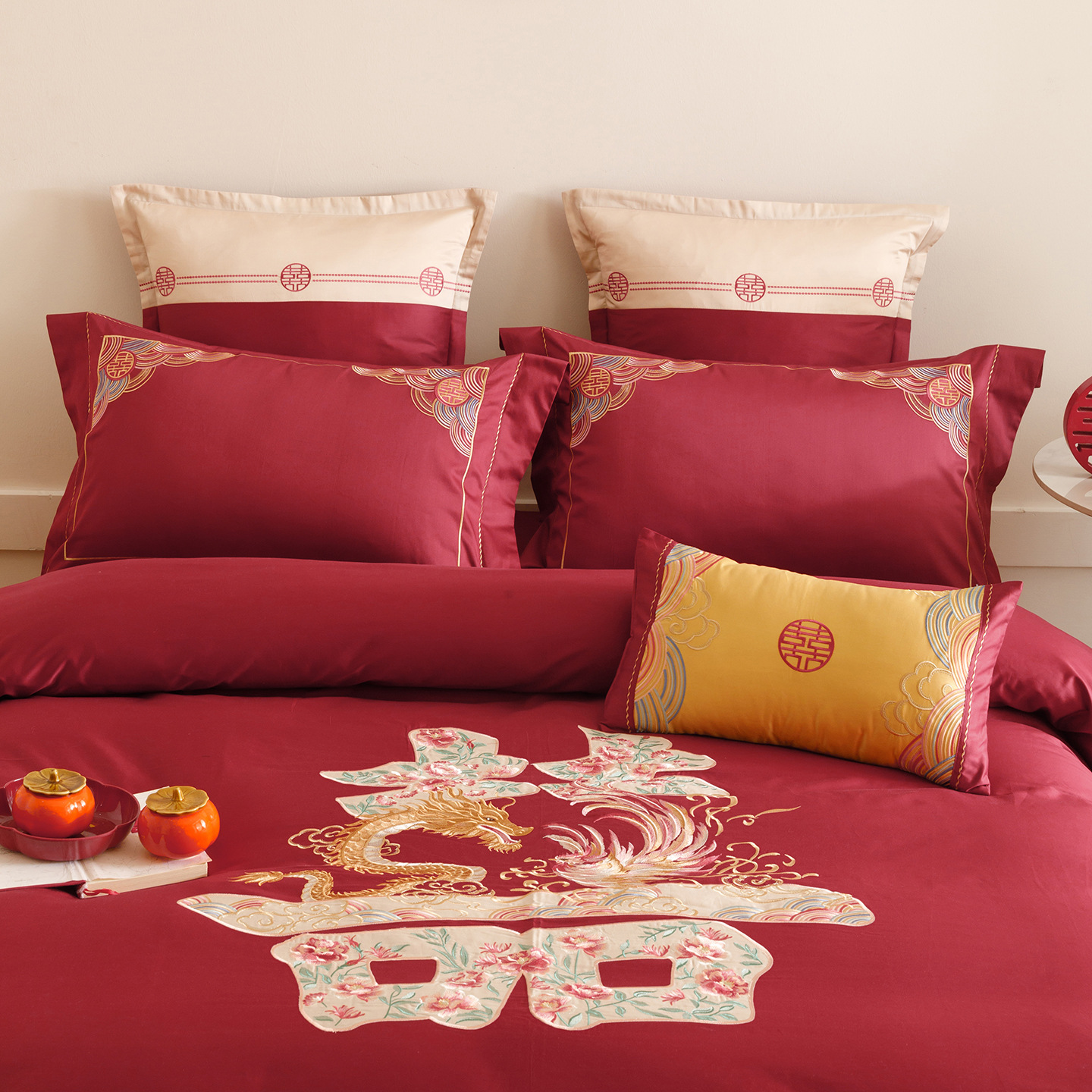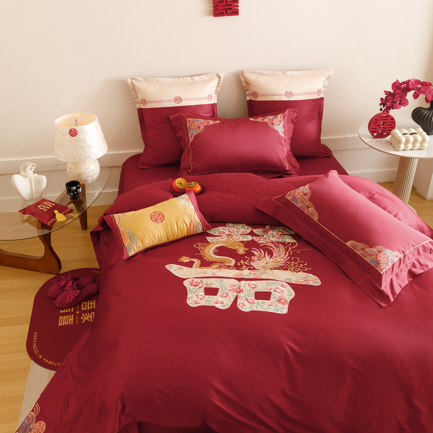 轻奢高级感全棉婚庆绣花红色喜庆结婚四件套婚房陪嫁喜被床上用品