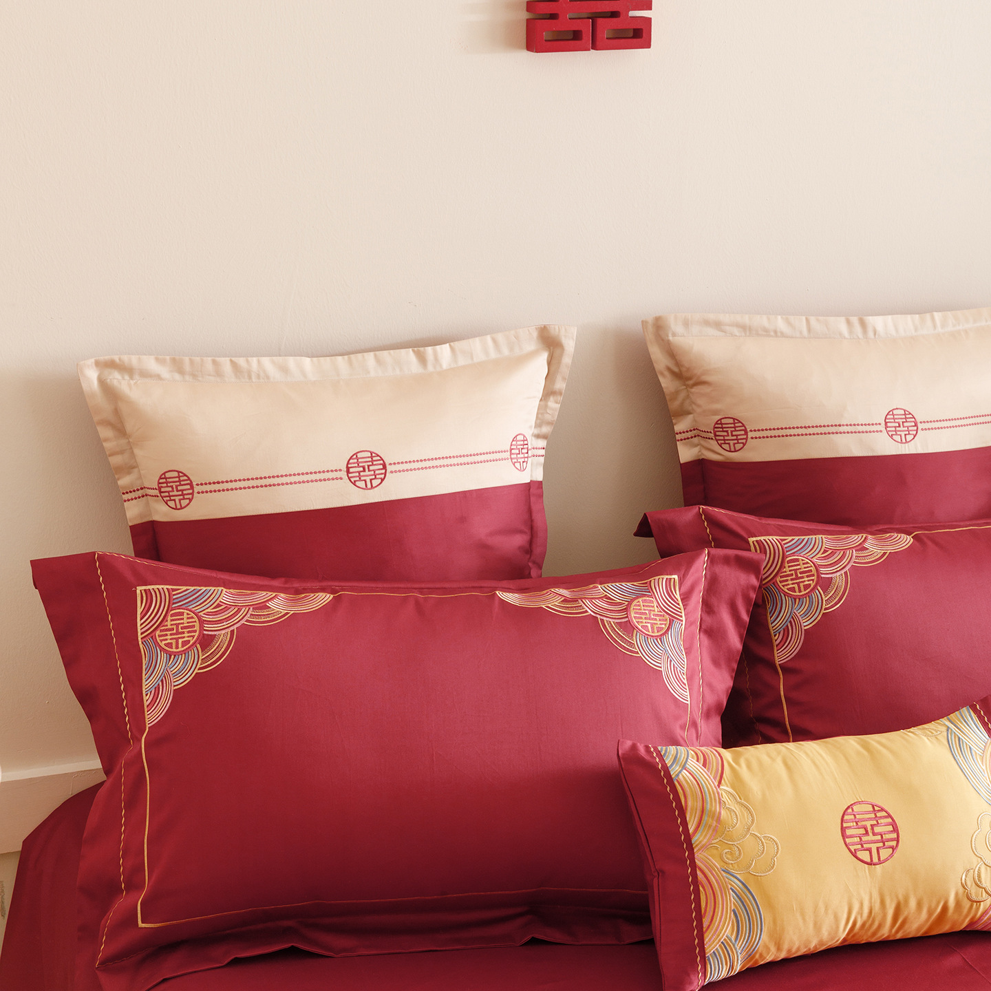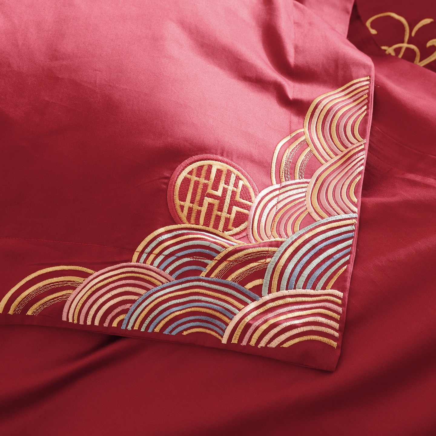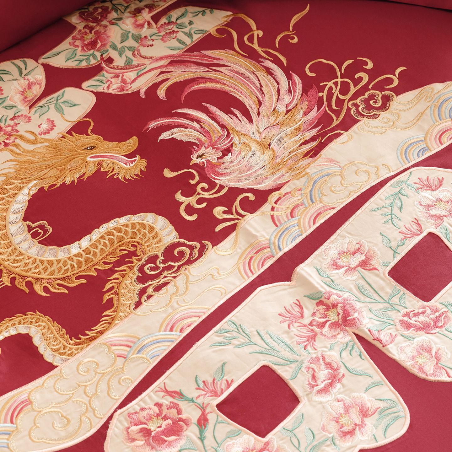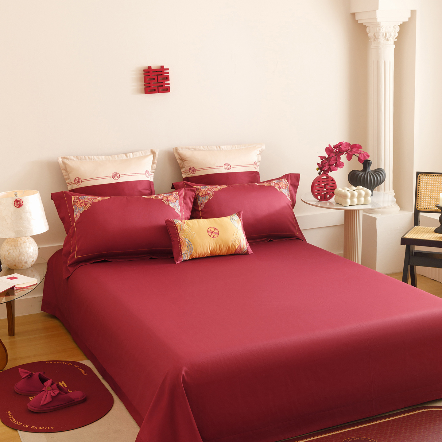 轻奢高级感全棉婚庆绣花红色喜庆结婚四件套婚房陪嫁喜被床上用品