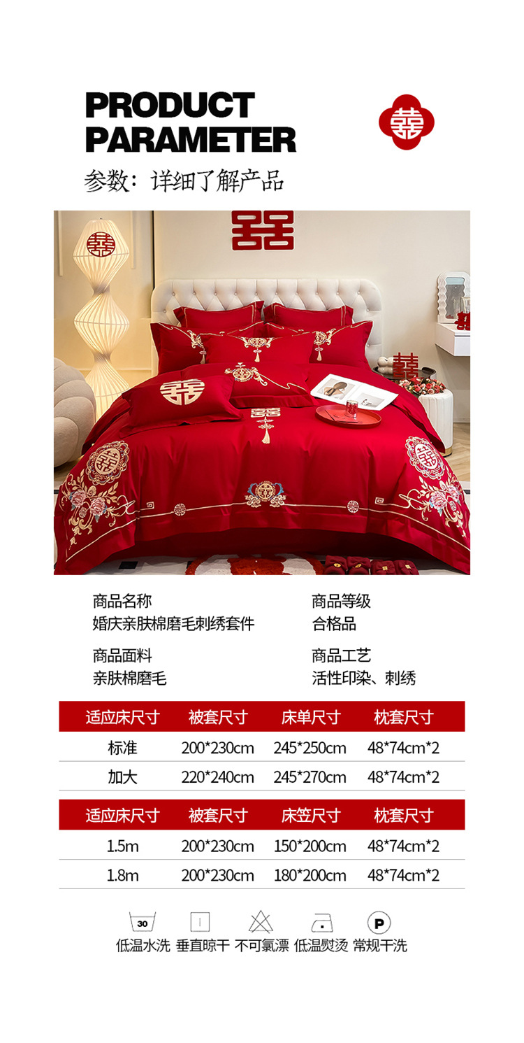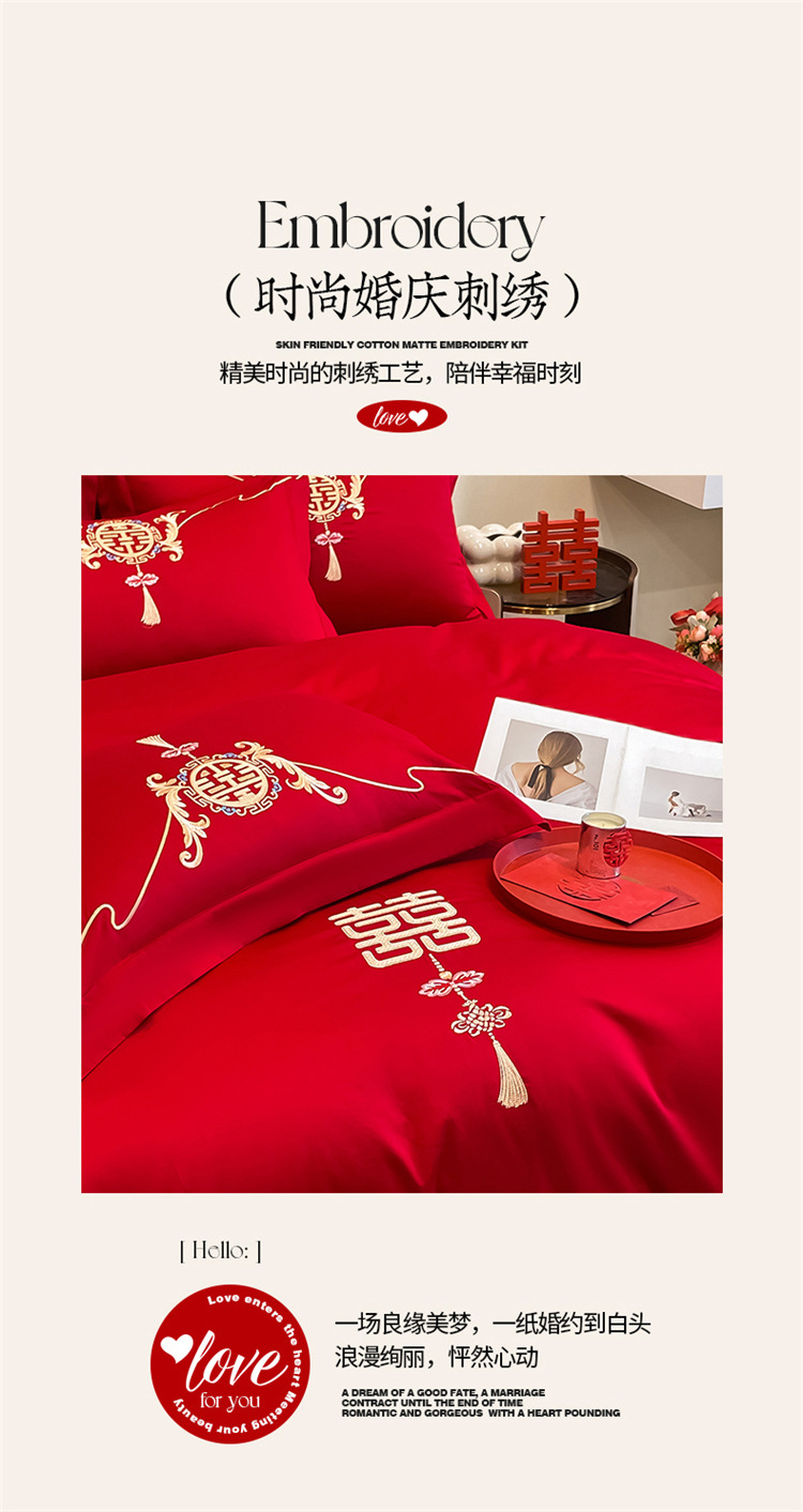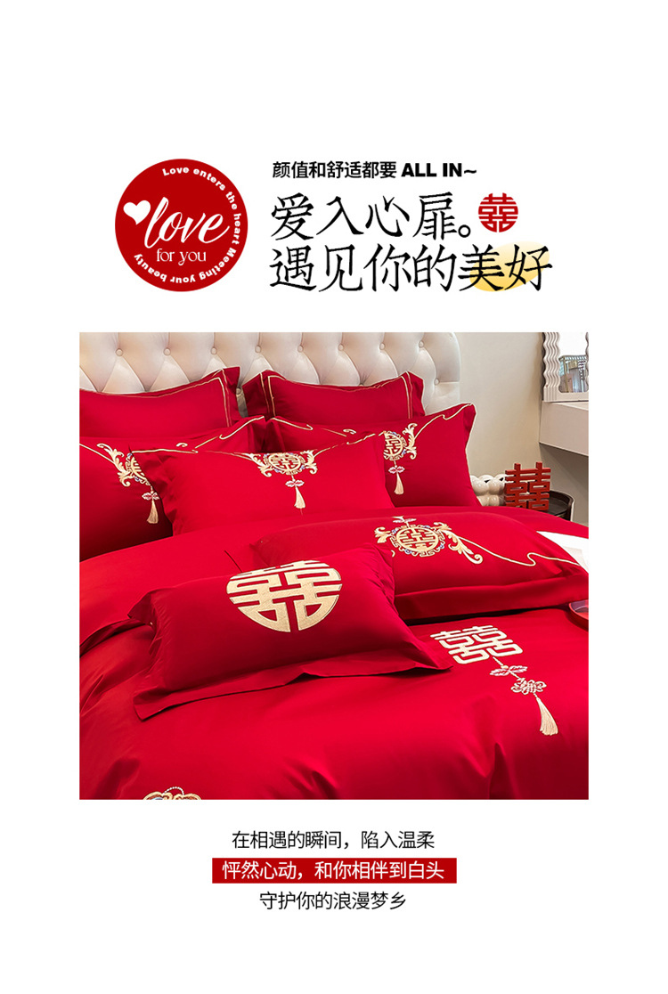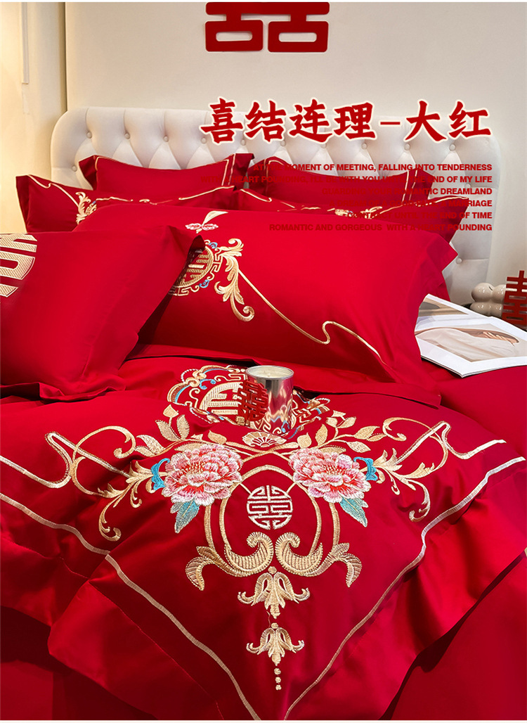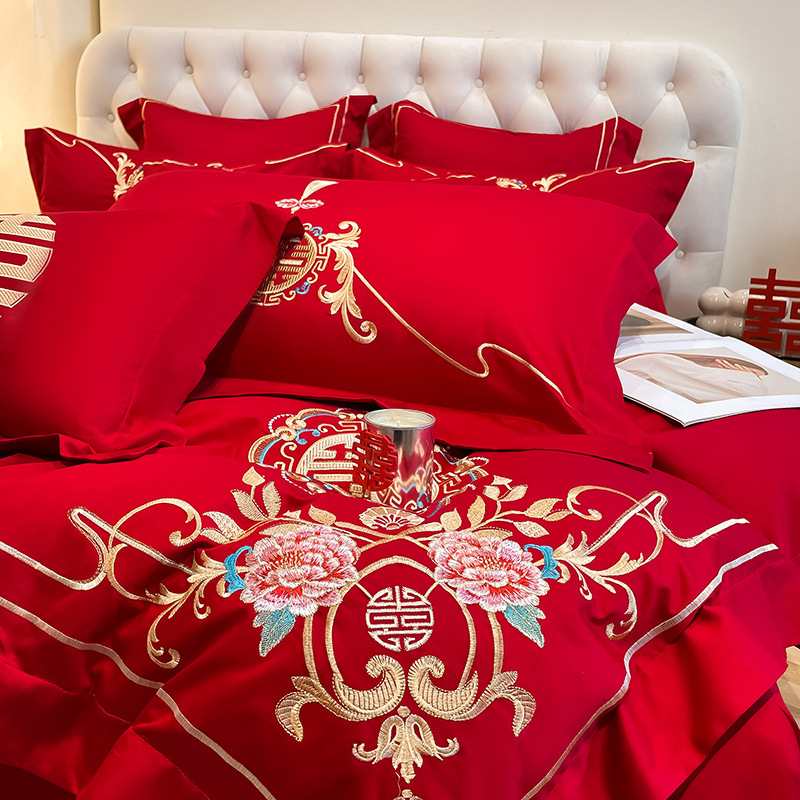 高档中式结婚四件套大红色婚庆纯棉被套婚房喜被新婚陪嫁床上用品