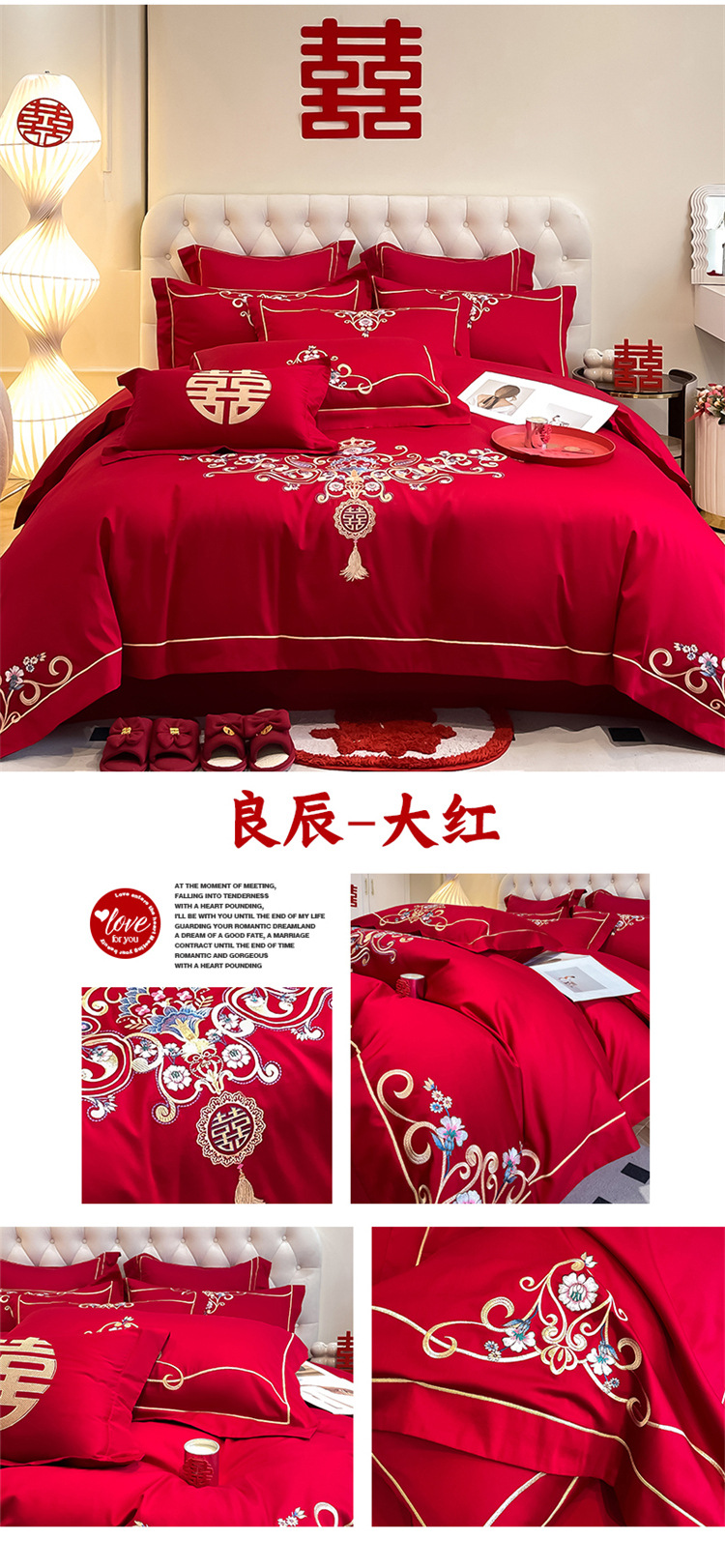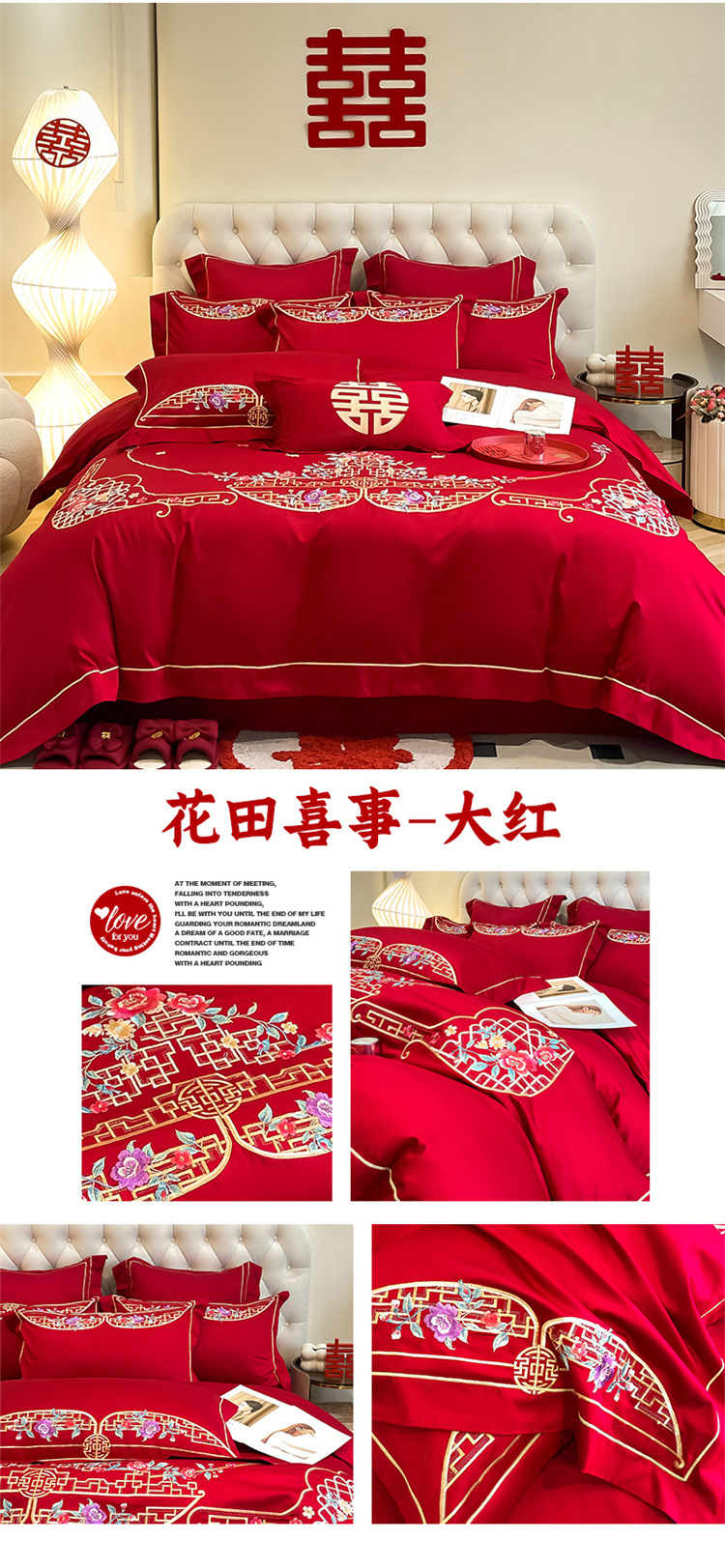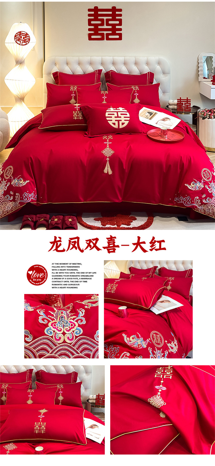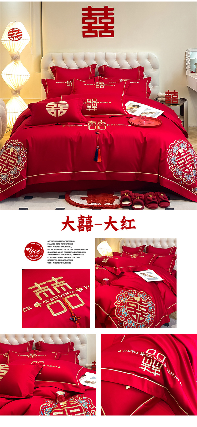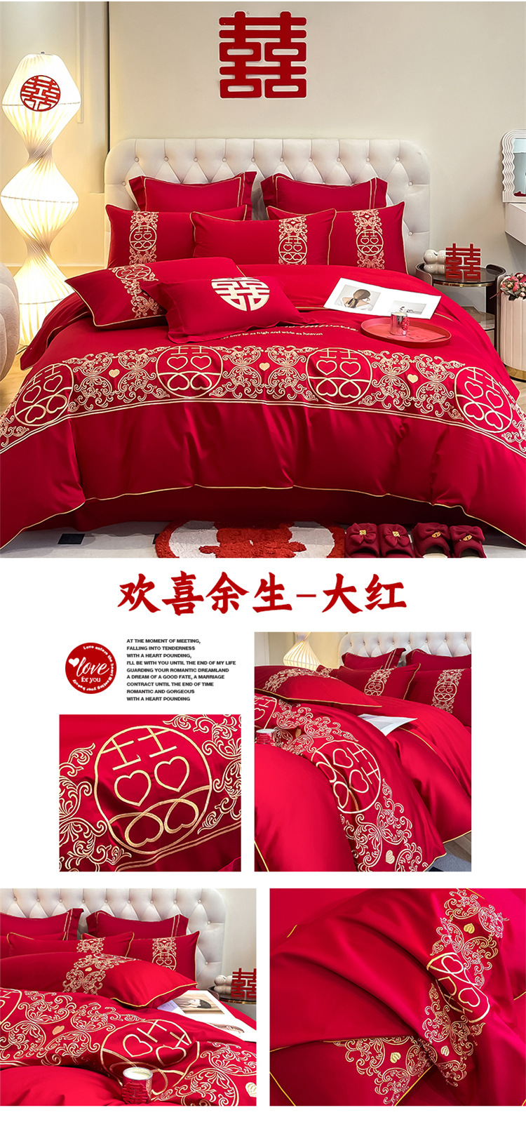 高档中式结婚四件套大红色婚庆纯棉被套婚房喜被新婚陪嫁床上用品