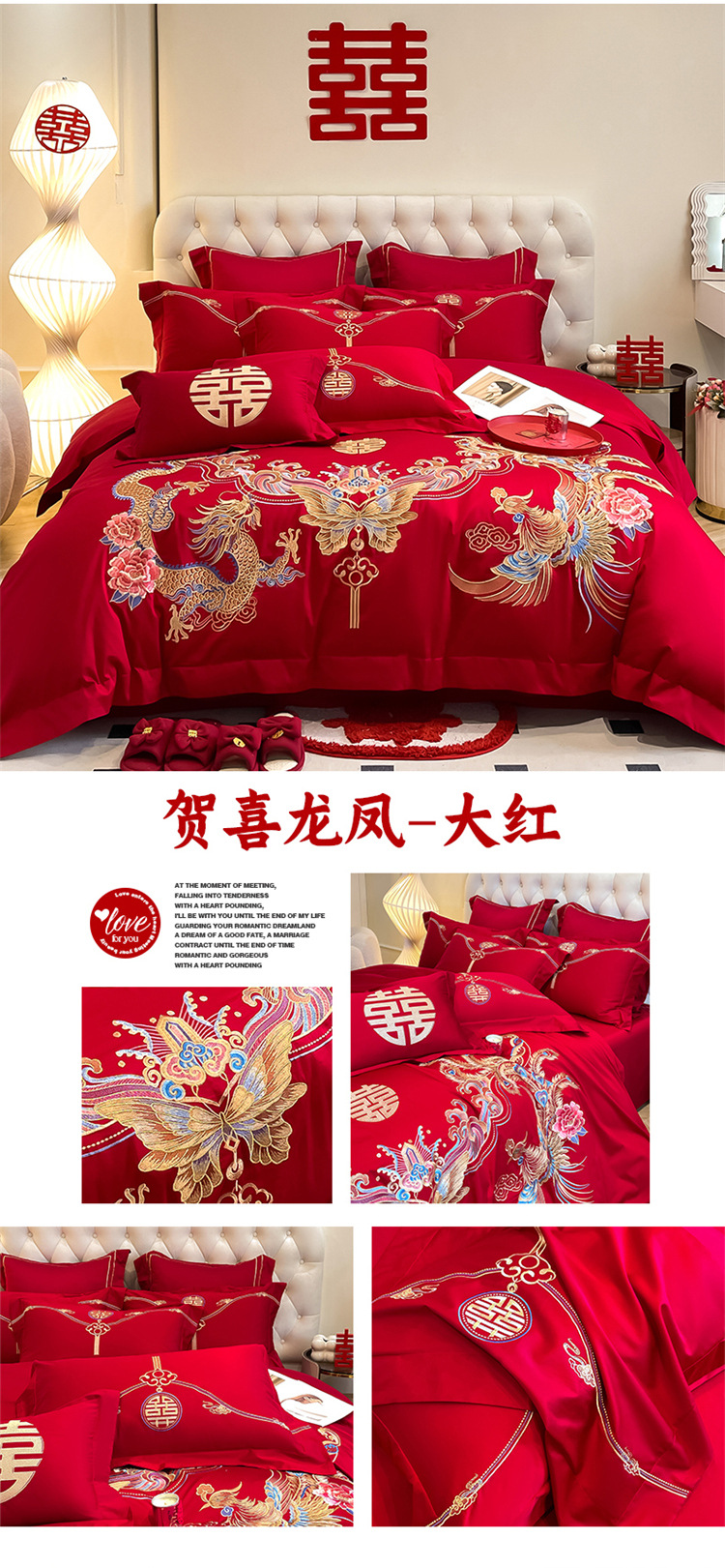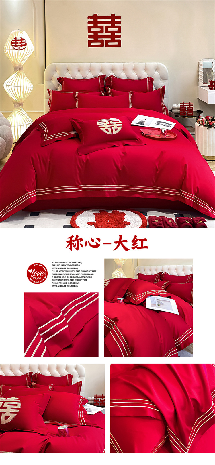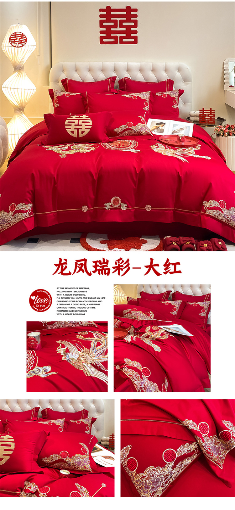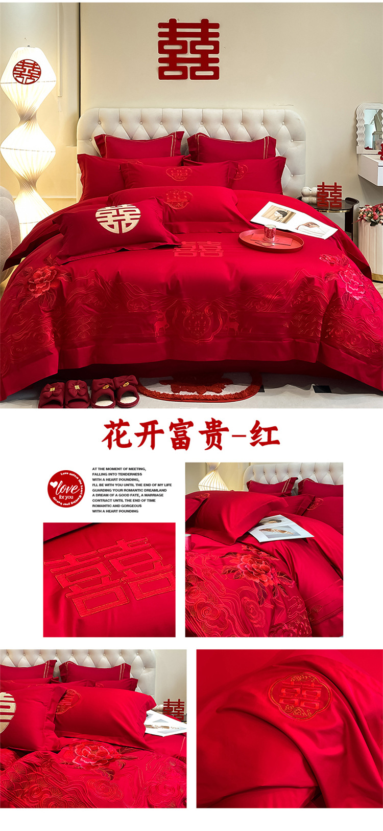 高档中式结婚四件套大红色婚庆纯棉被套婚房喜被新婚陪嫁床上用品