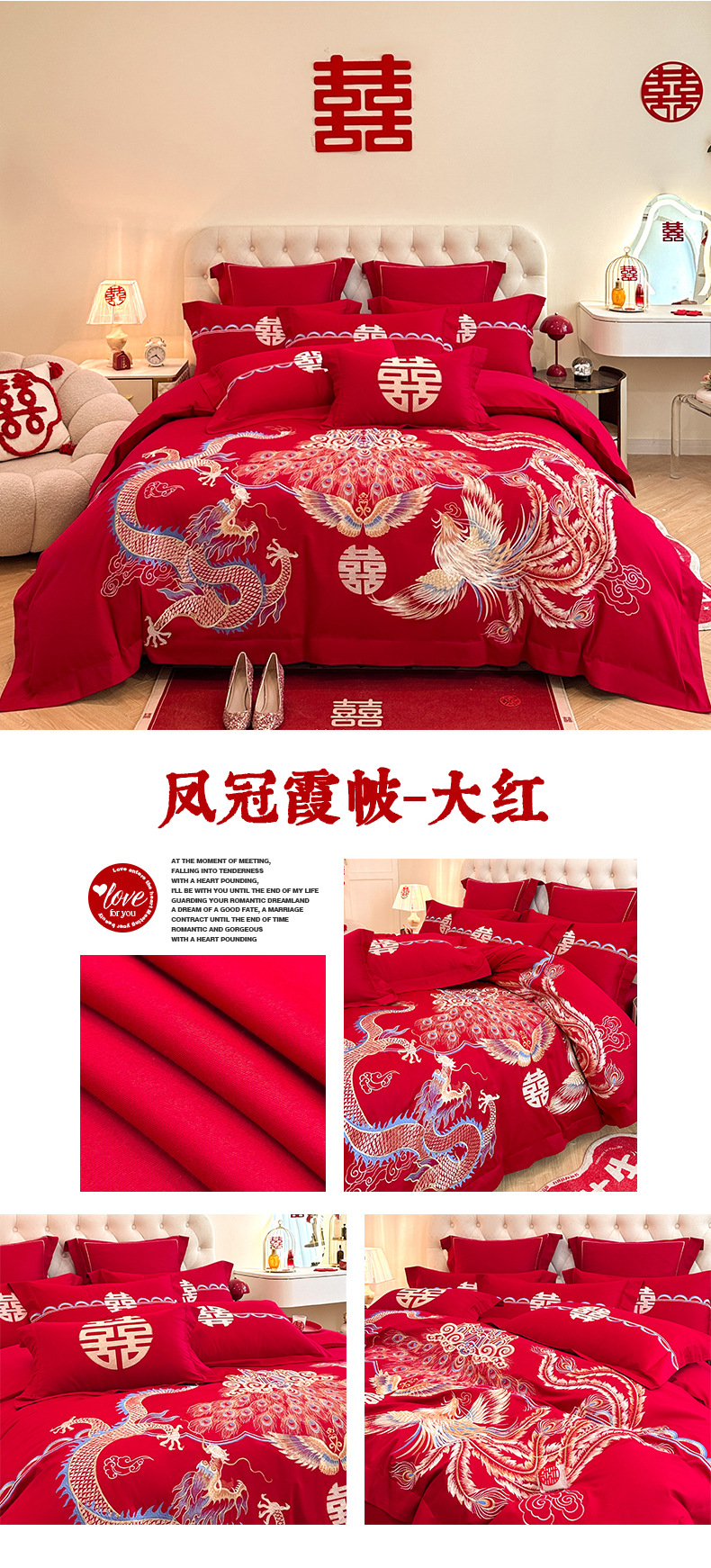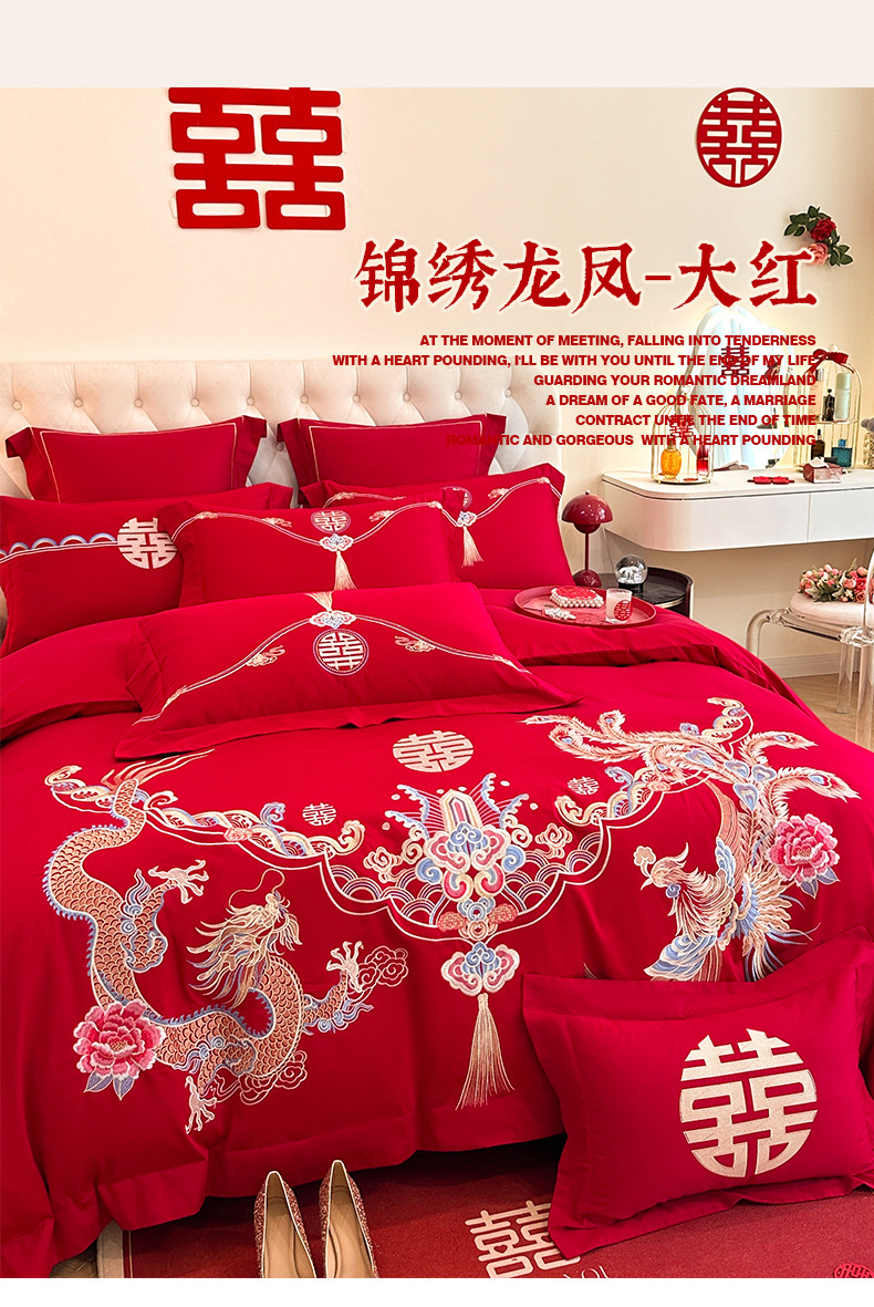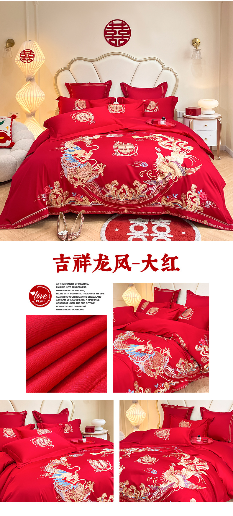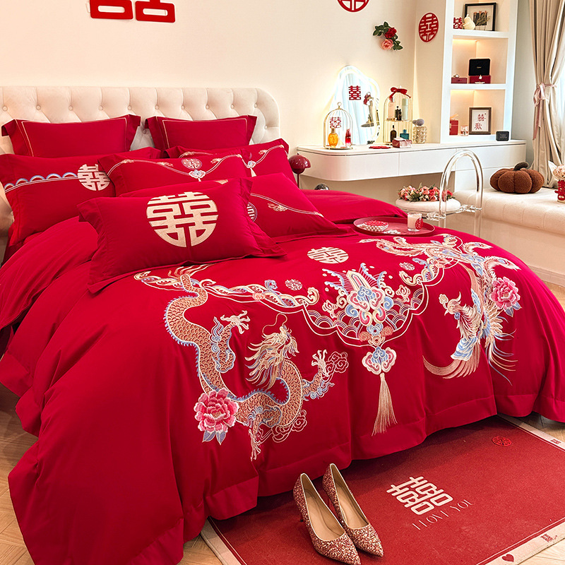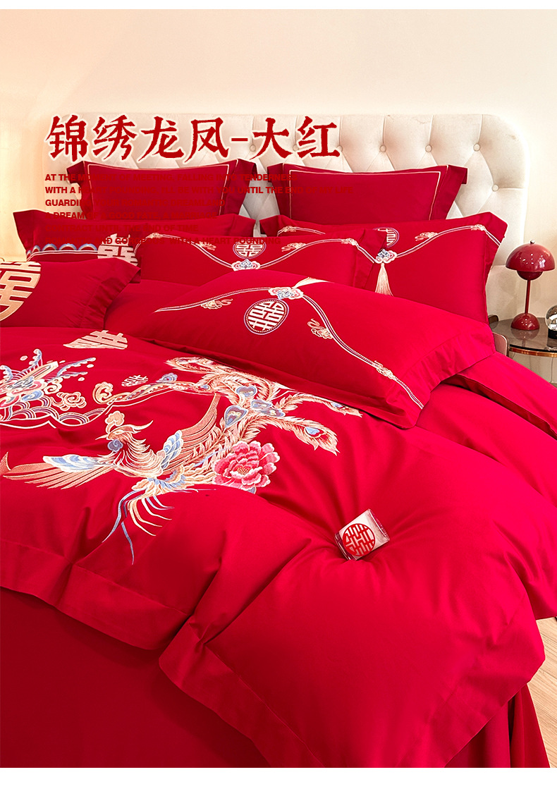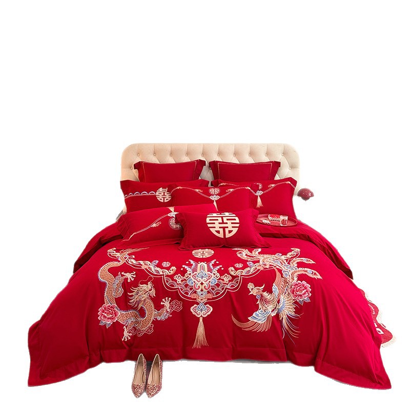 高档婚庆中式四件套大红色刺绣结婚陪嫁被套床单新婚喜庆床上用品