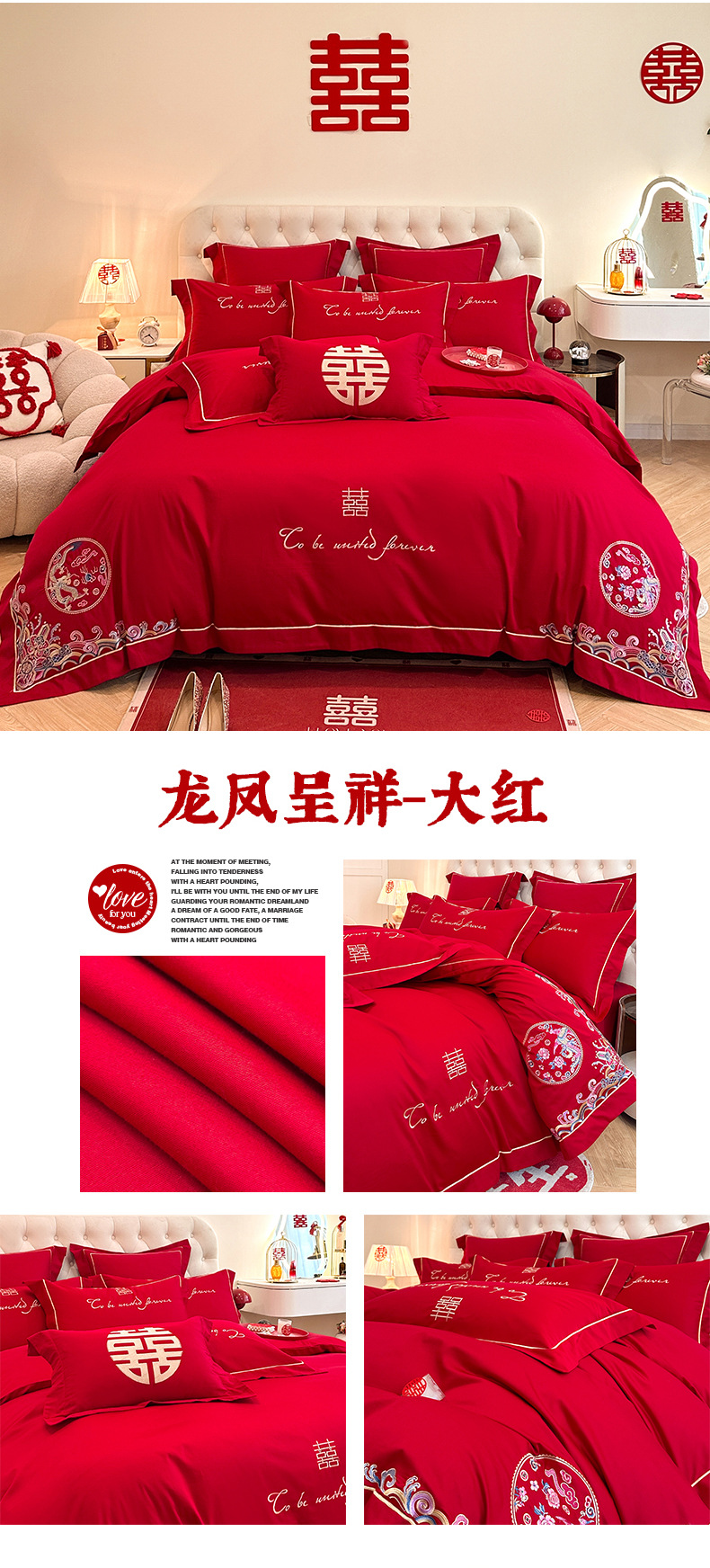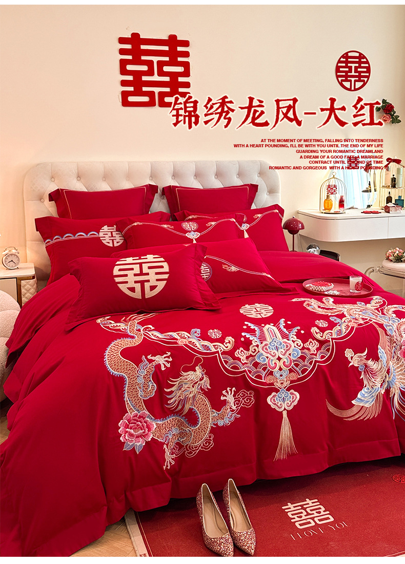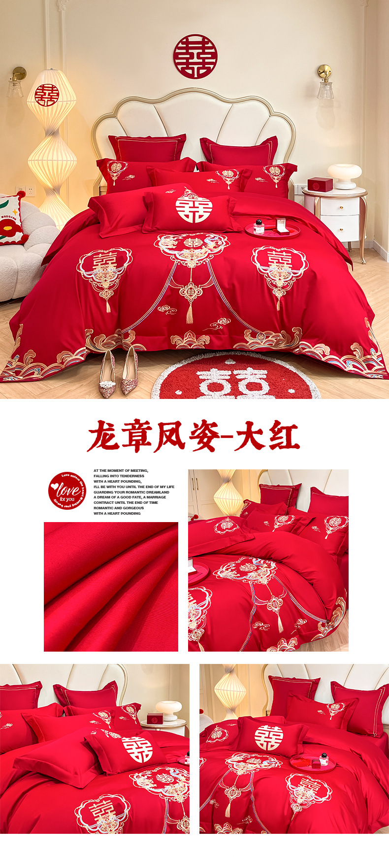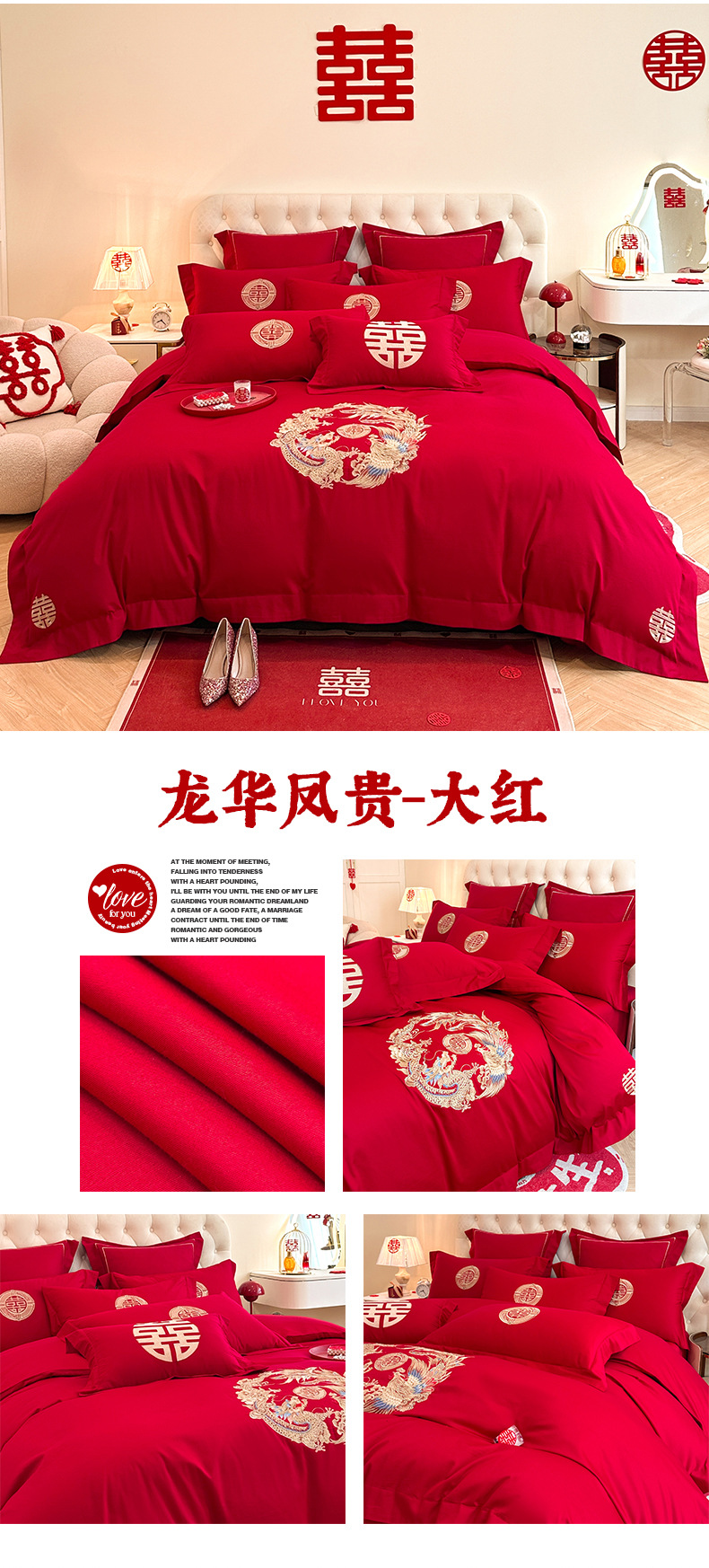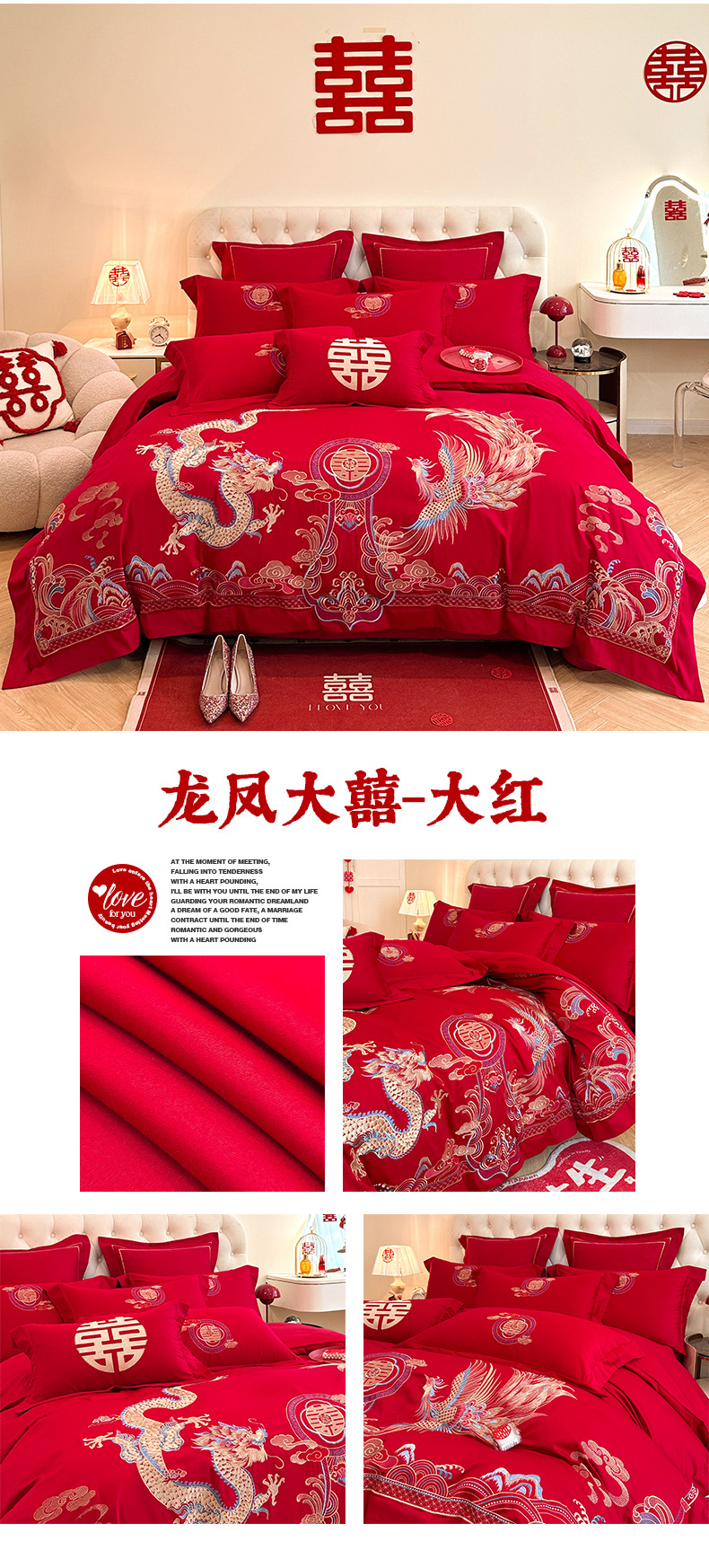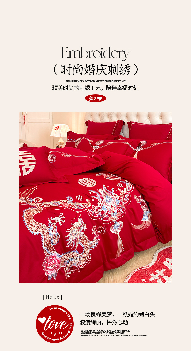 高档婚庆中式四件套大红色刺绣结婚陪嫁被套床单新婚喜庆床上用品