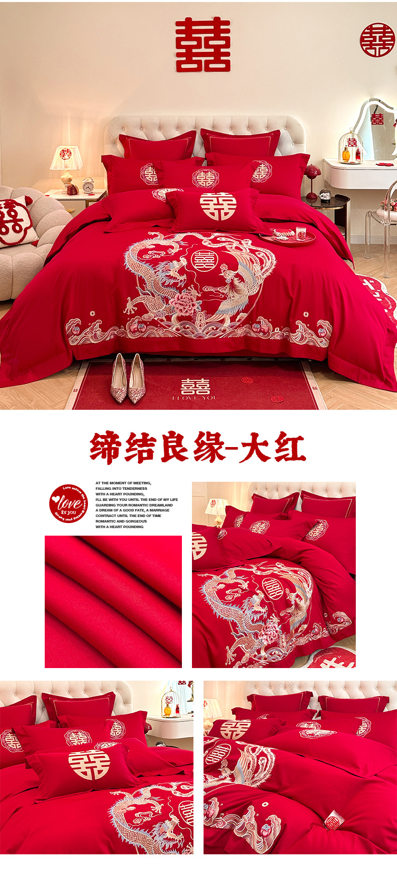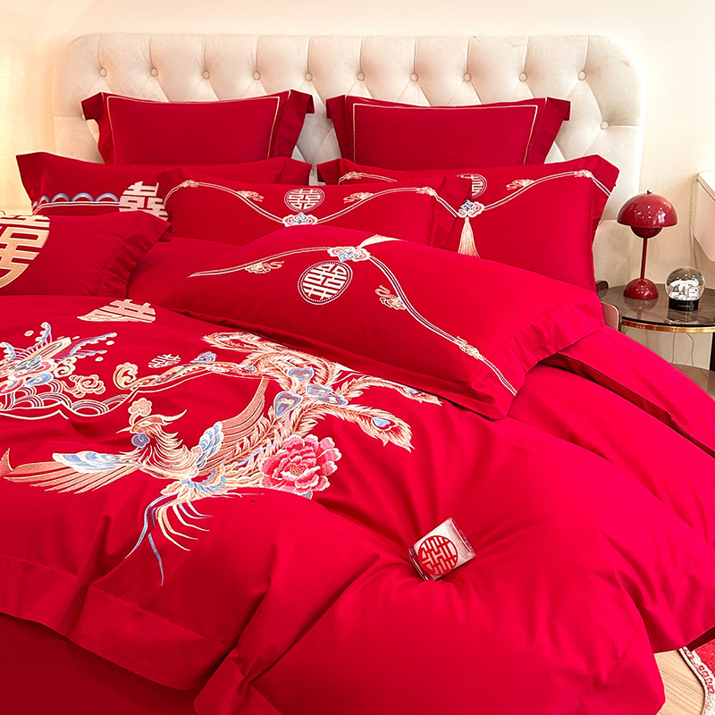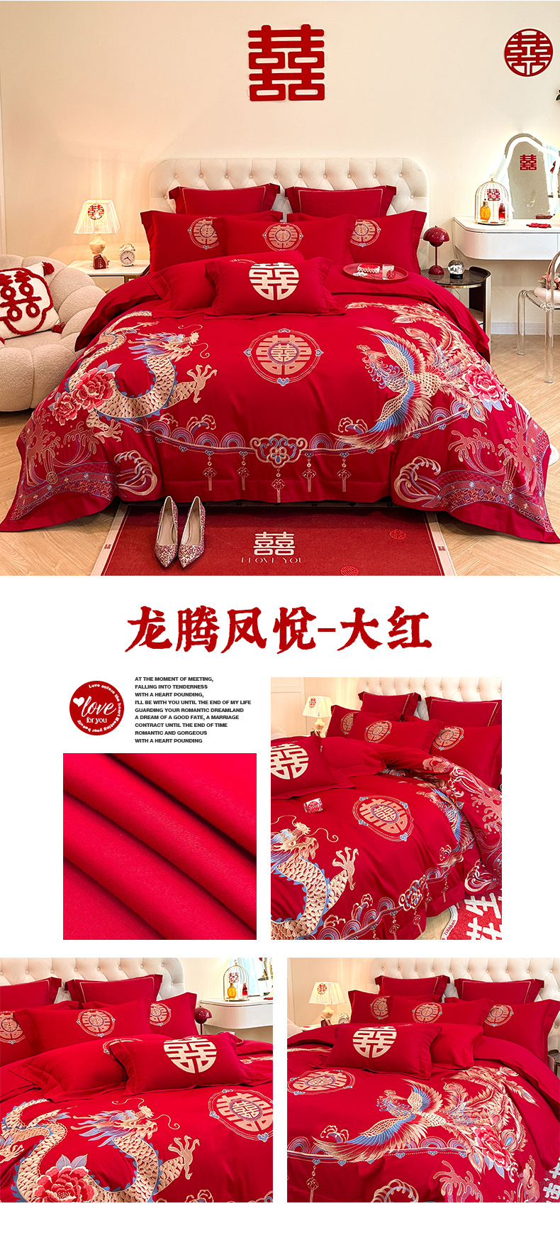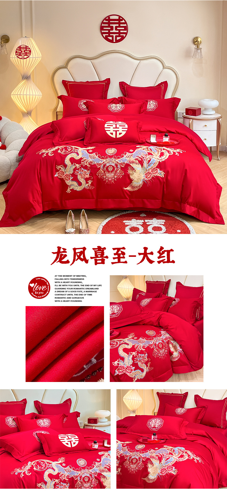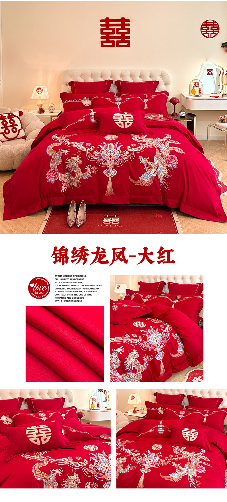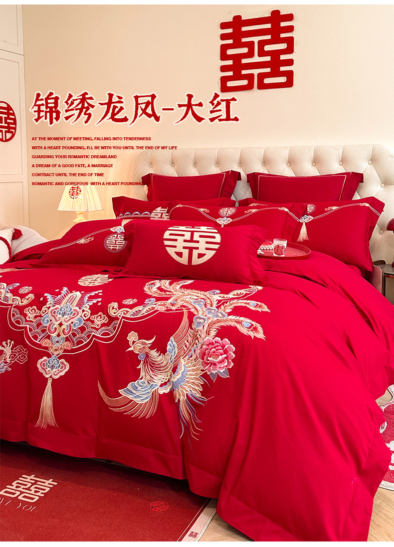 高档婚庆中式四件套大红色刺绣结婚陪嫁被套床单新婚喜庆床上用品