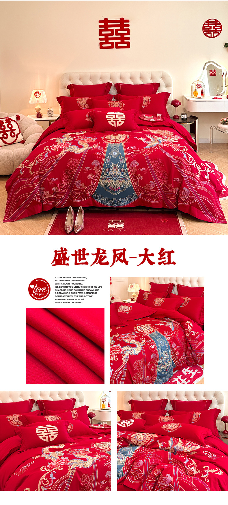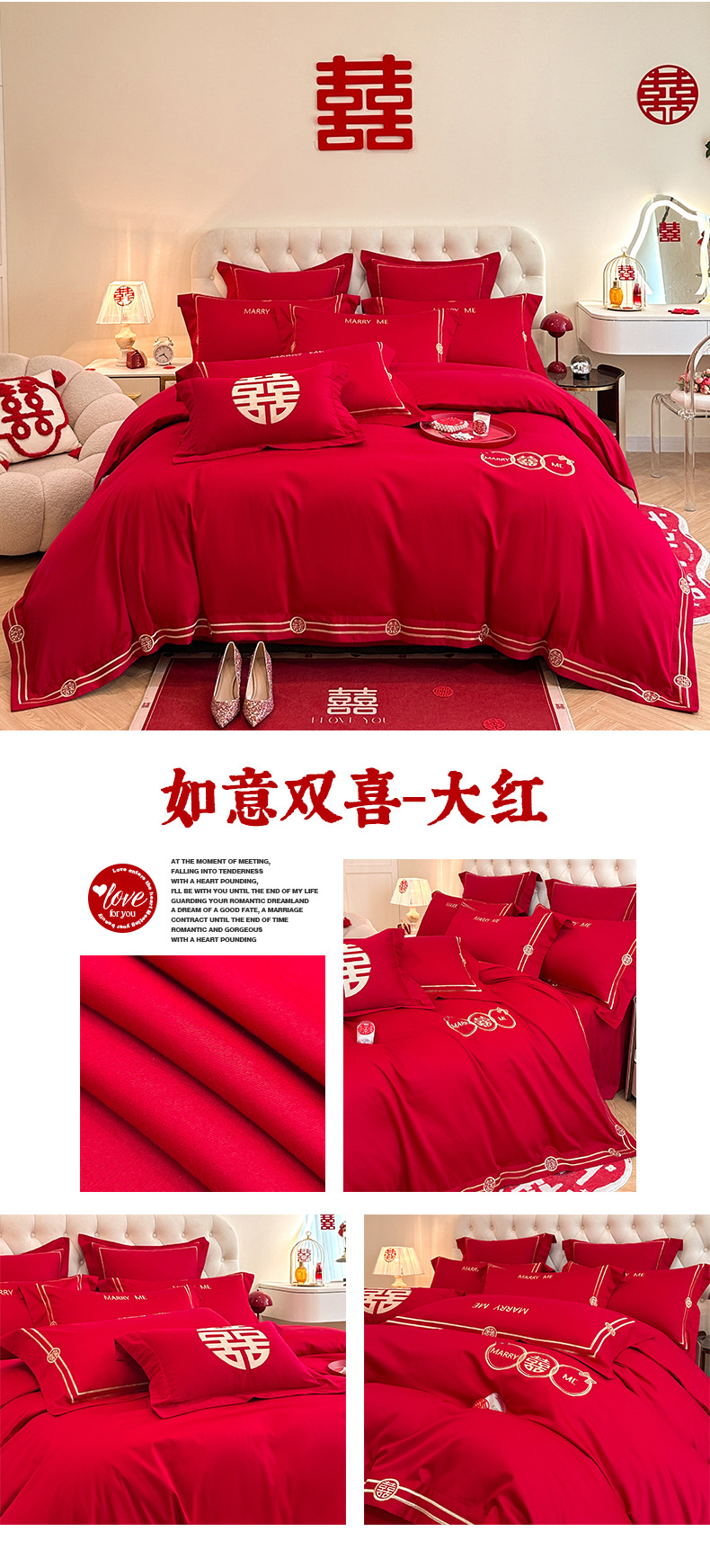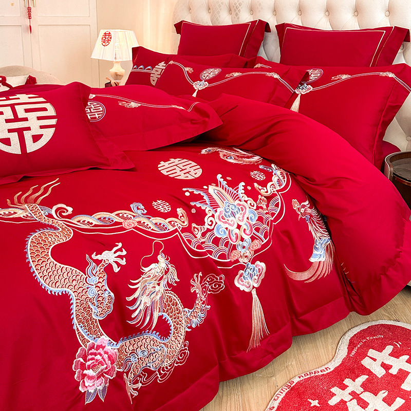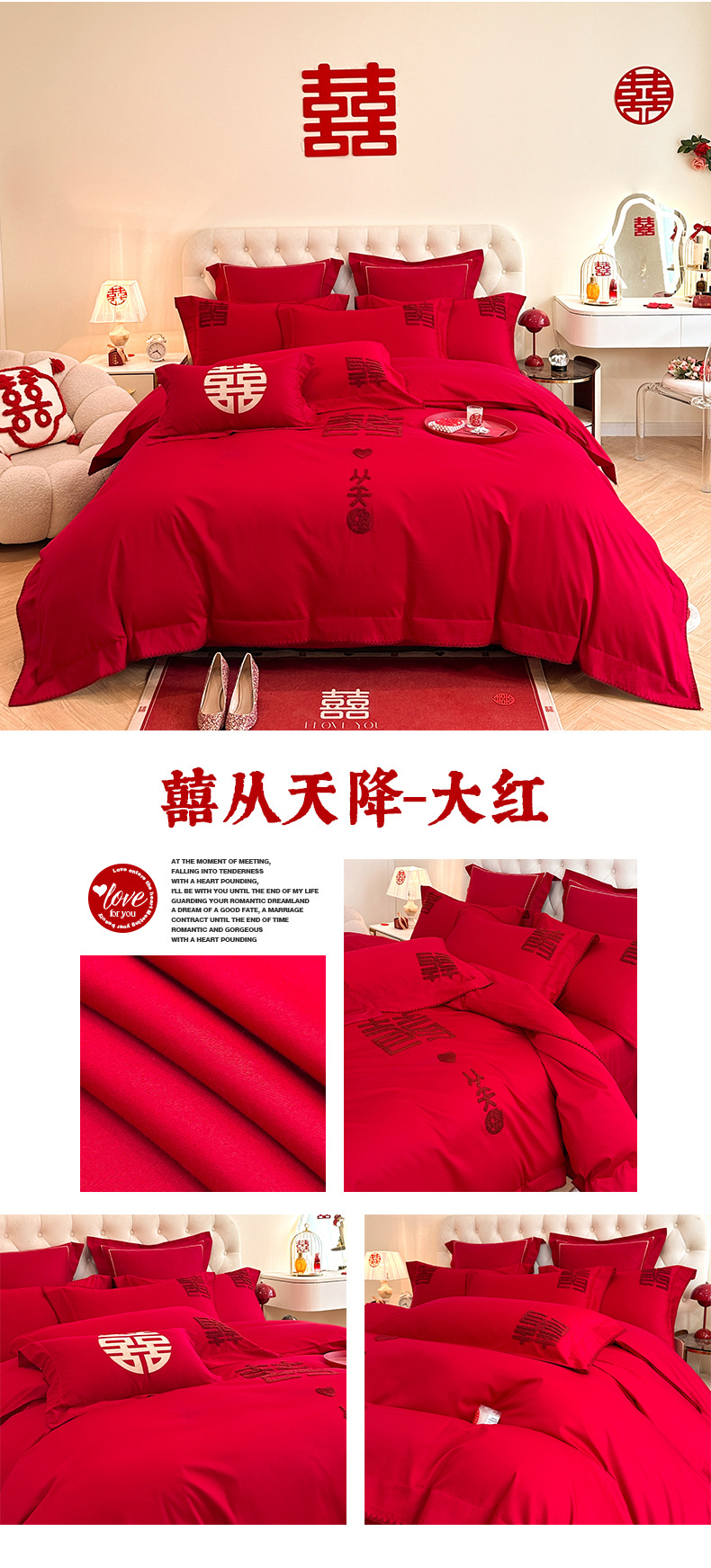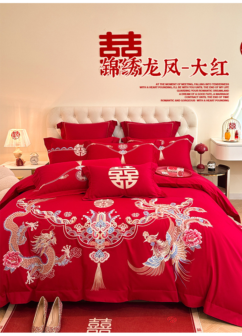 高档婚庆中式四件套大红色刺绣结婚陪嫁被套床单新婚喜庆床上用品