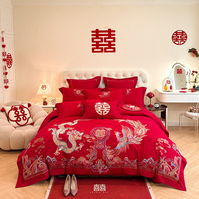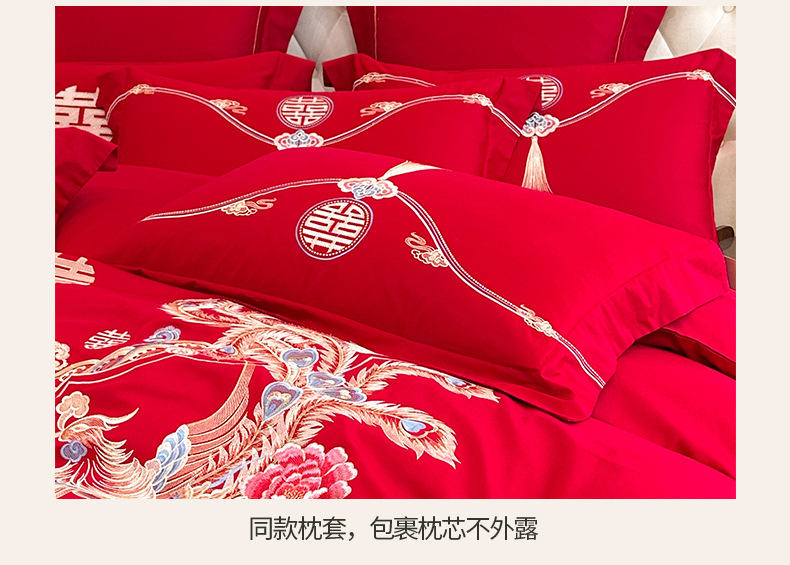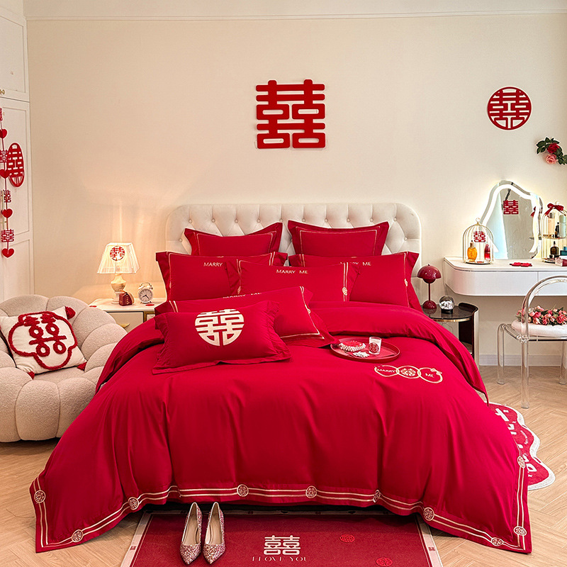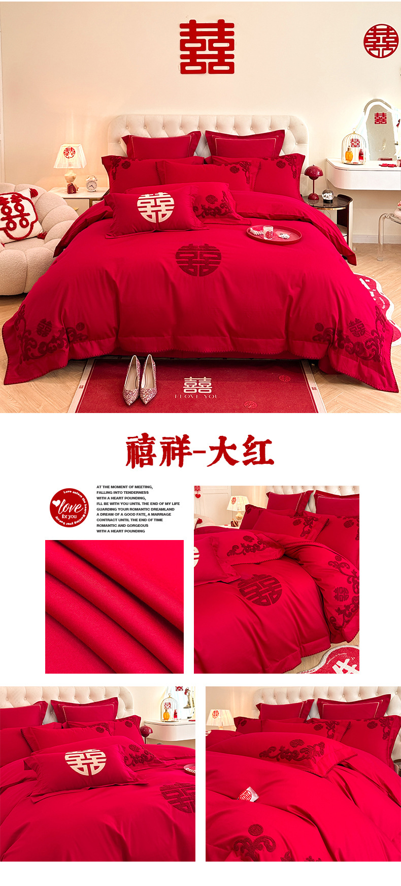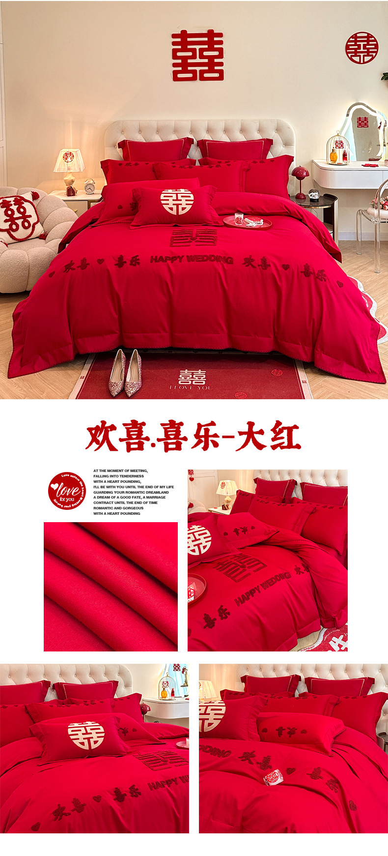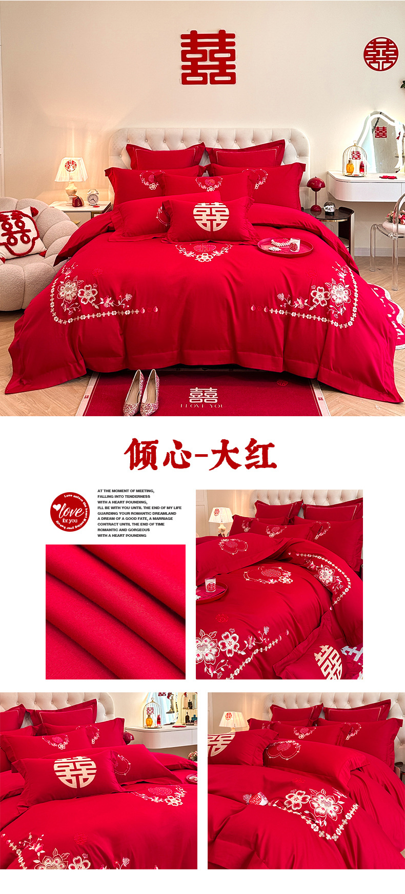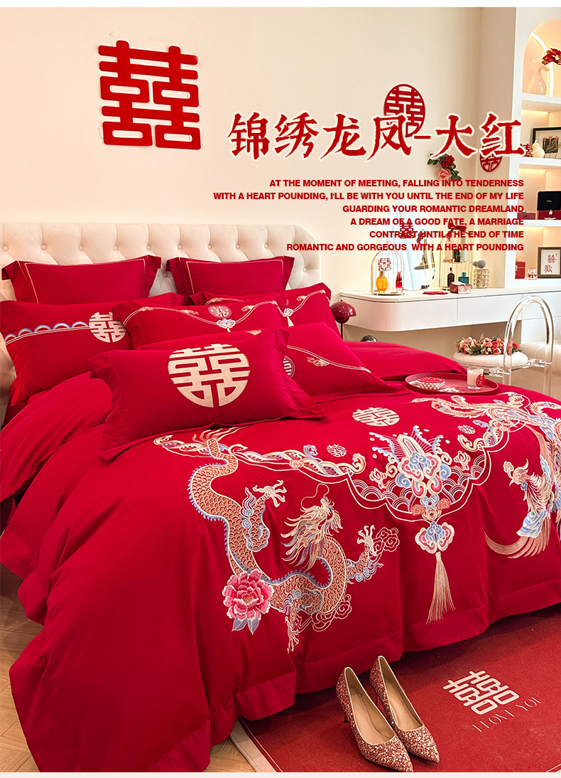 高档婚庆中式四件套大红色刺绣结婚陪嫁被套床单新婚喜庆床上用品