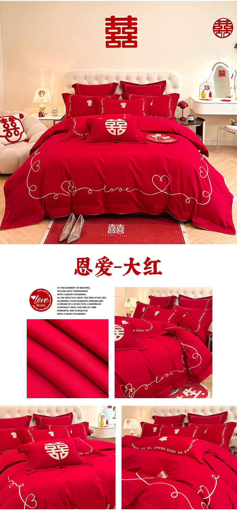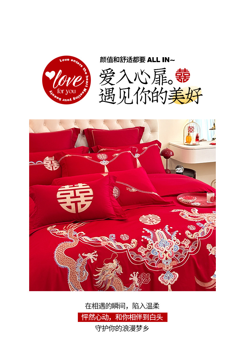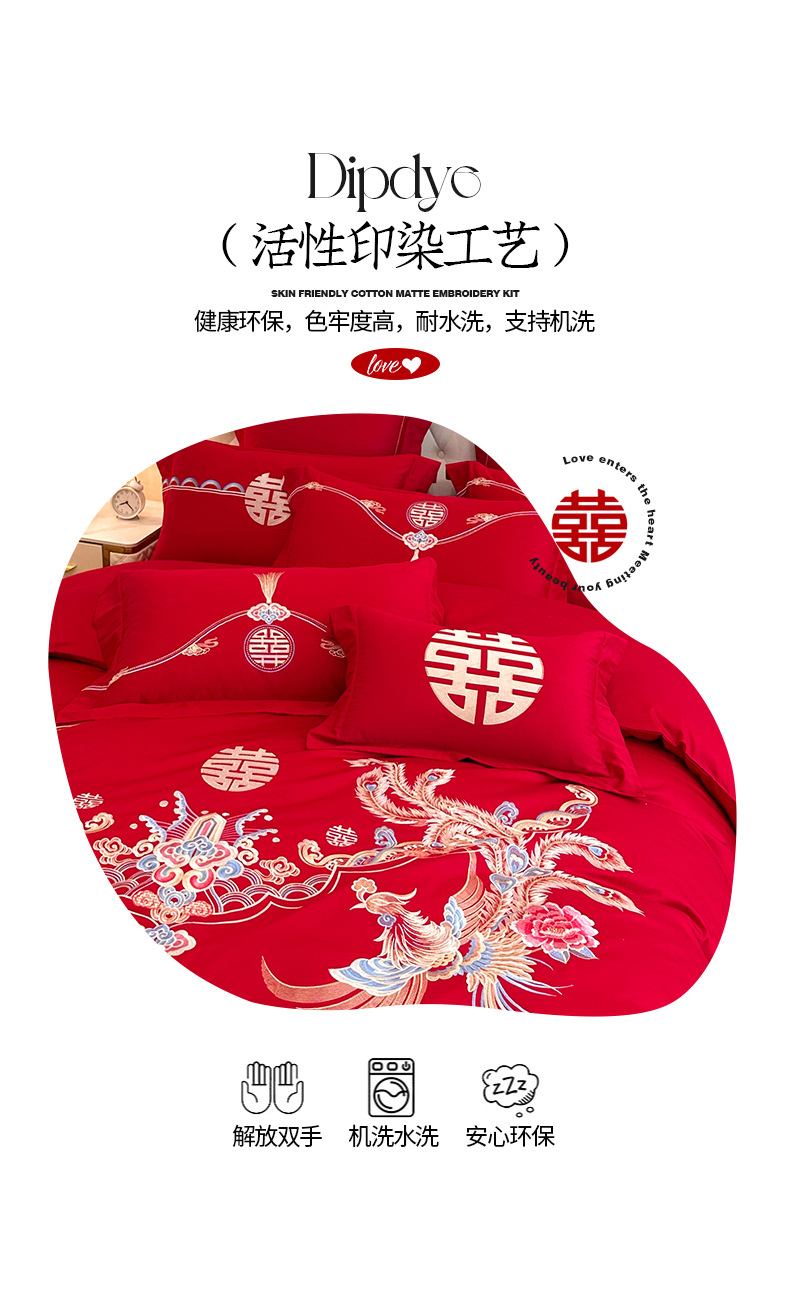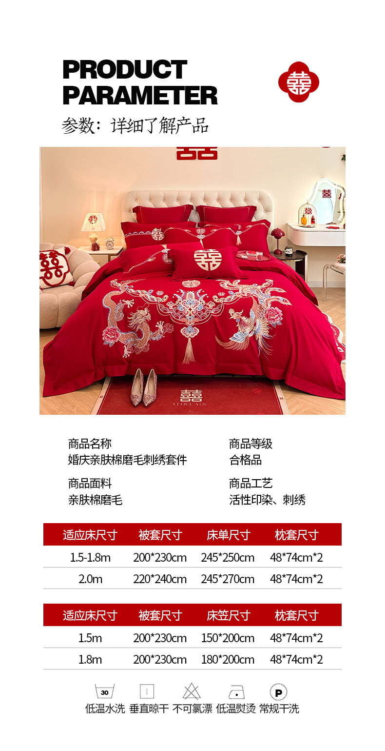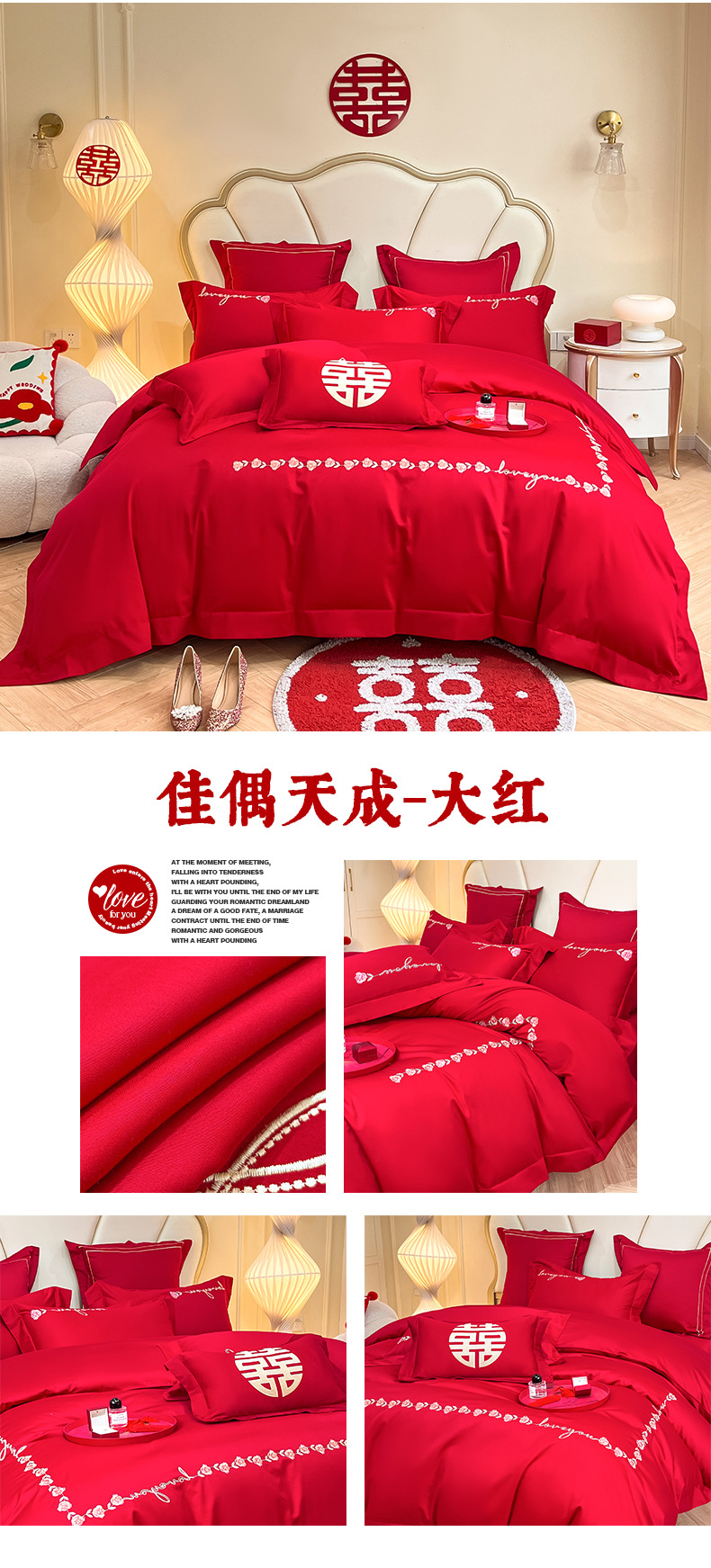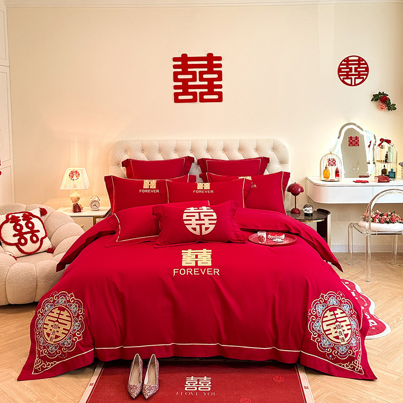 高档婚庆中式四件套大红色刺绣结婚陪嫁被套床单新婚喜庆床上用品
