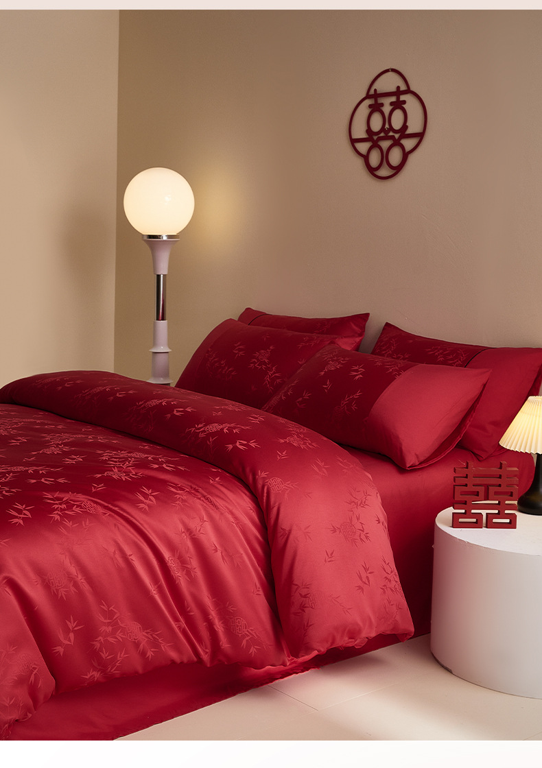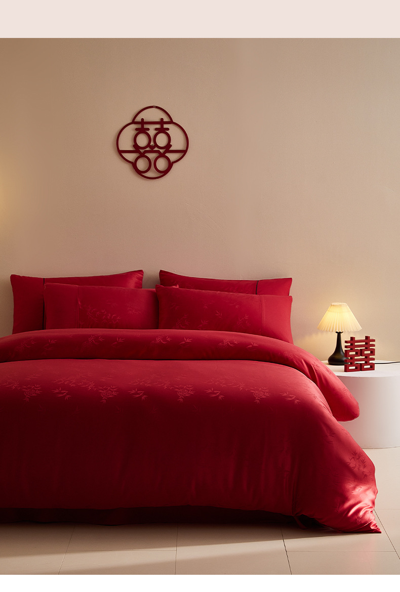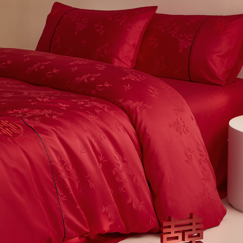 新中式结婚床上用品四件套高级感被子一整套七件套喜庆红色陪嫁