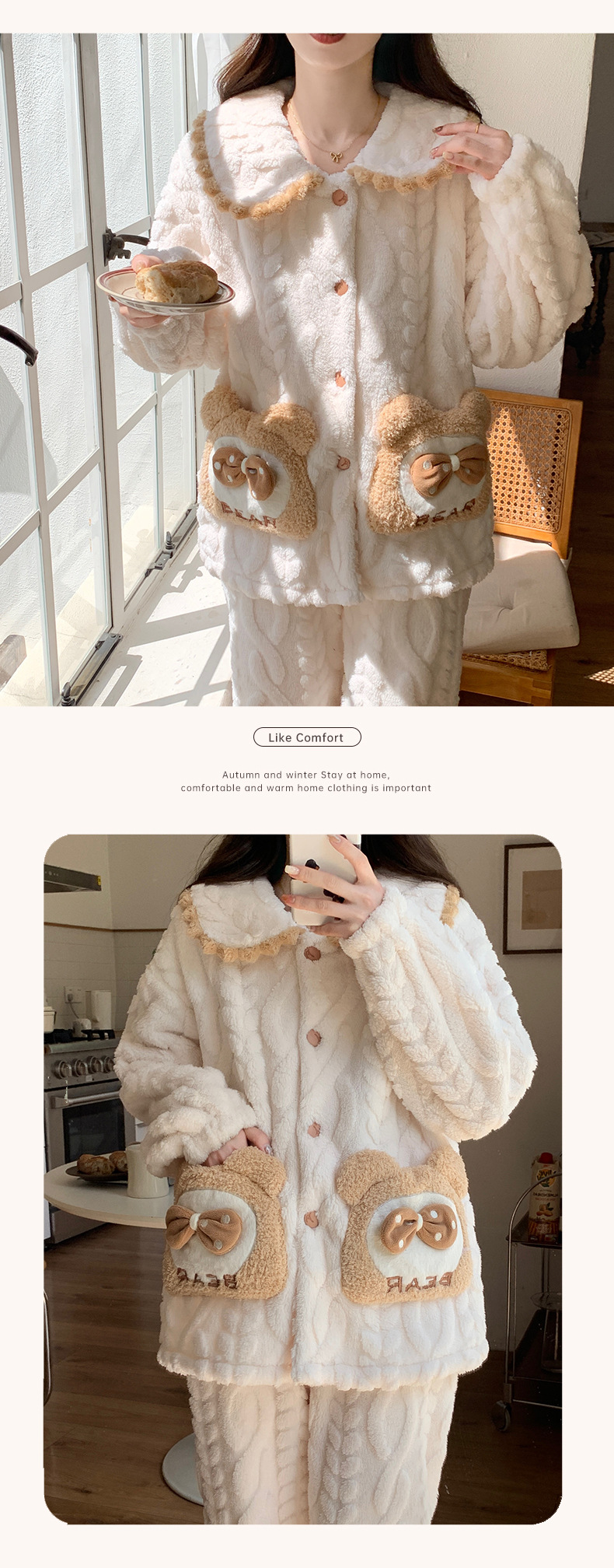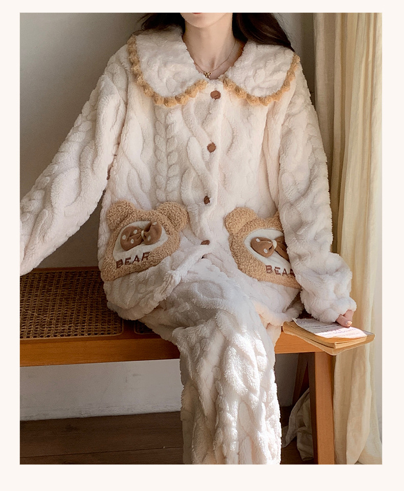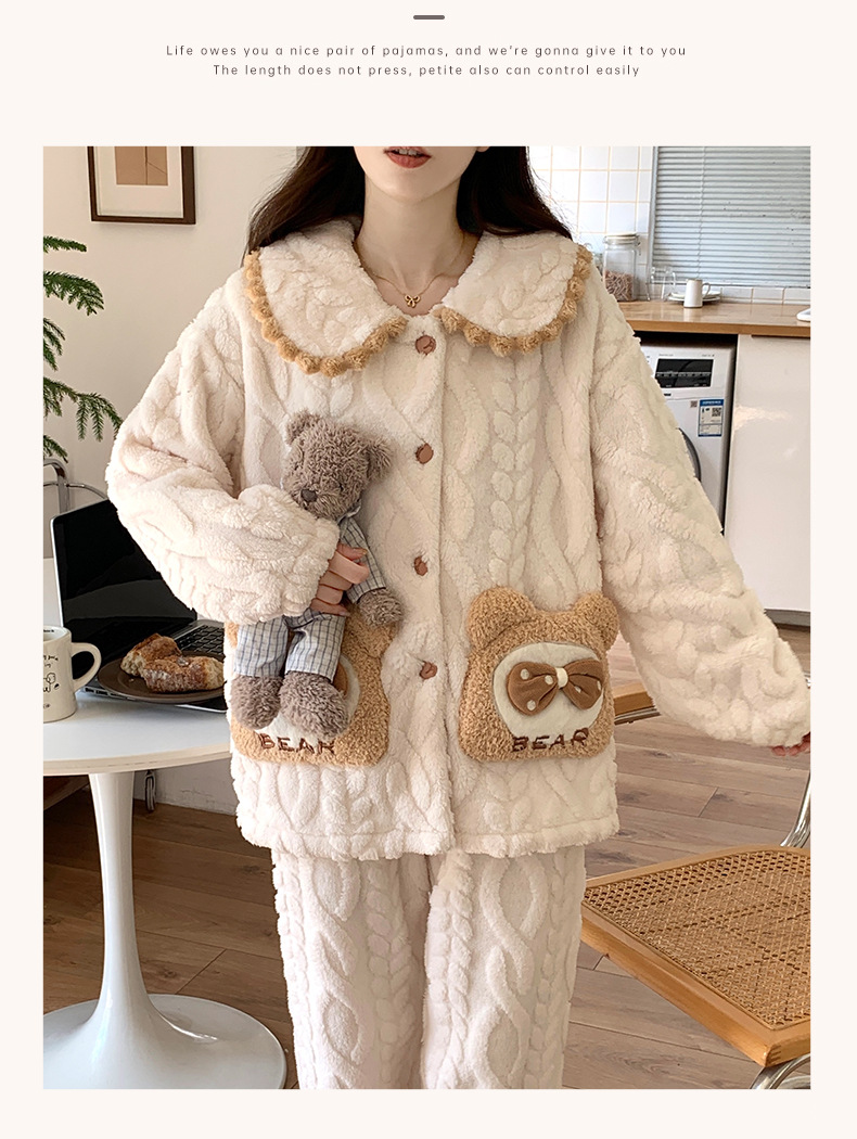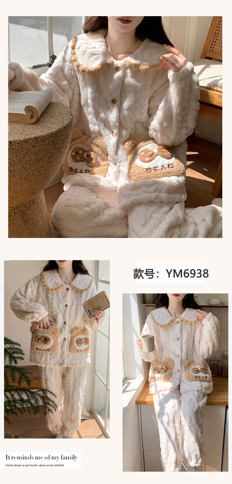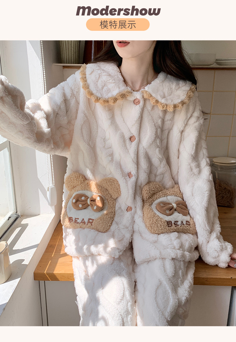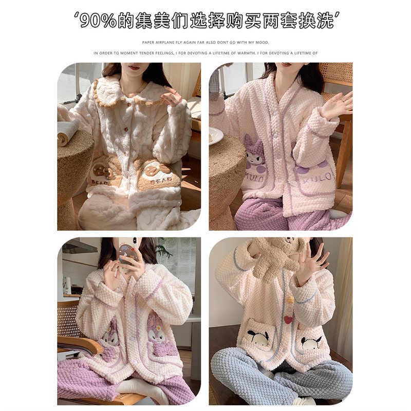 珊瑚绒睡衣女士春秋冬季加厚加绒2025新款开衫可爱卡通家居服套装