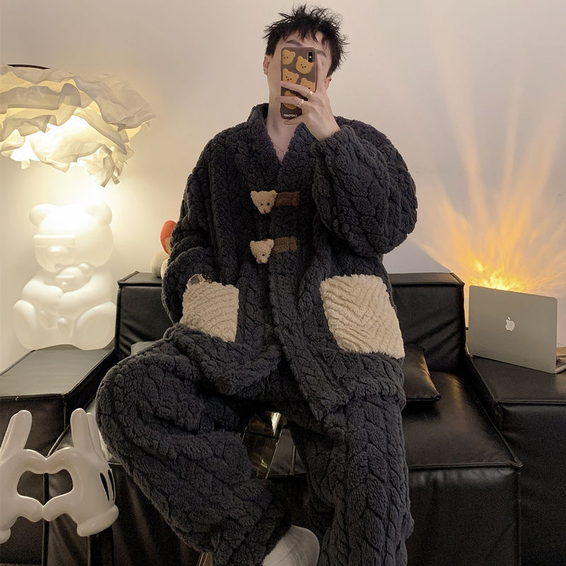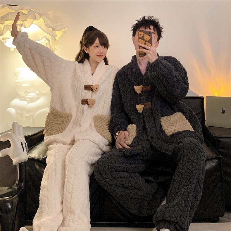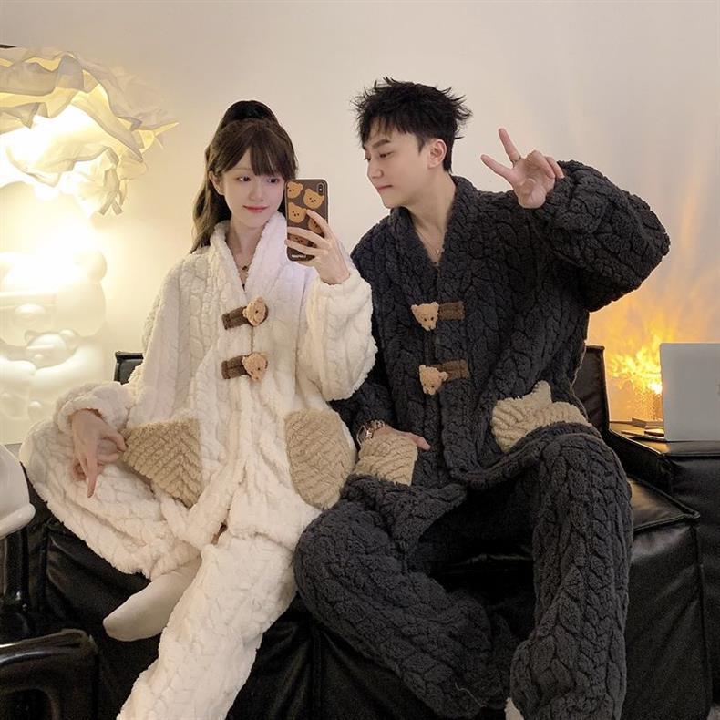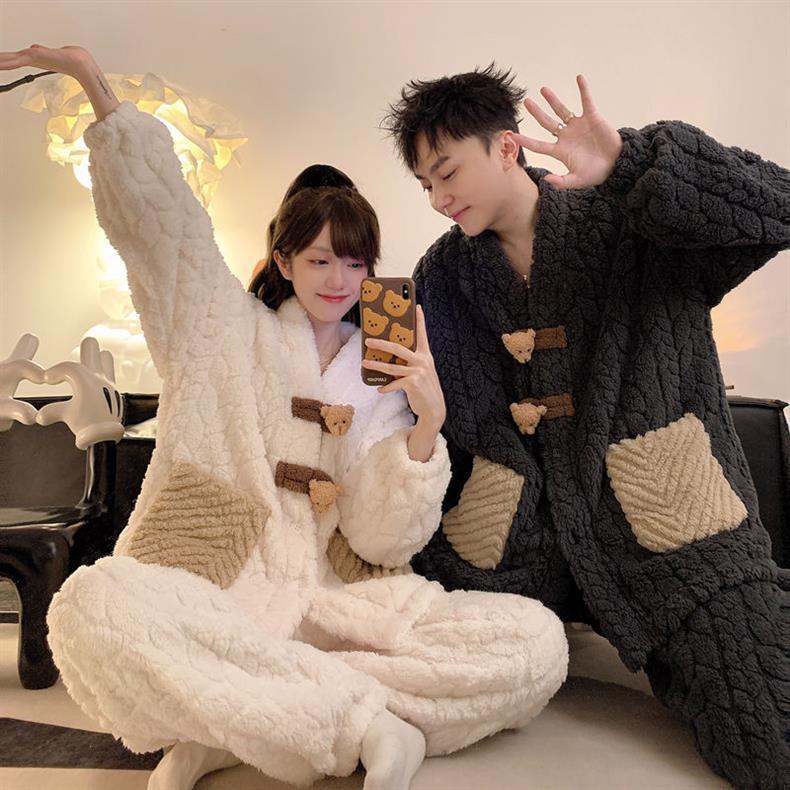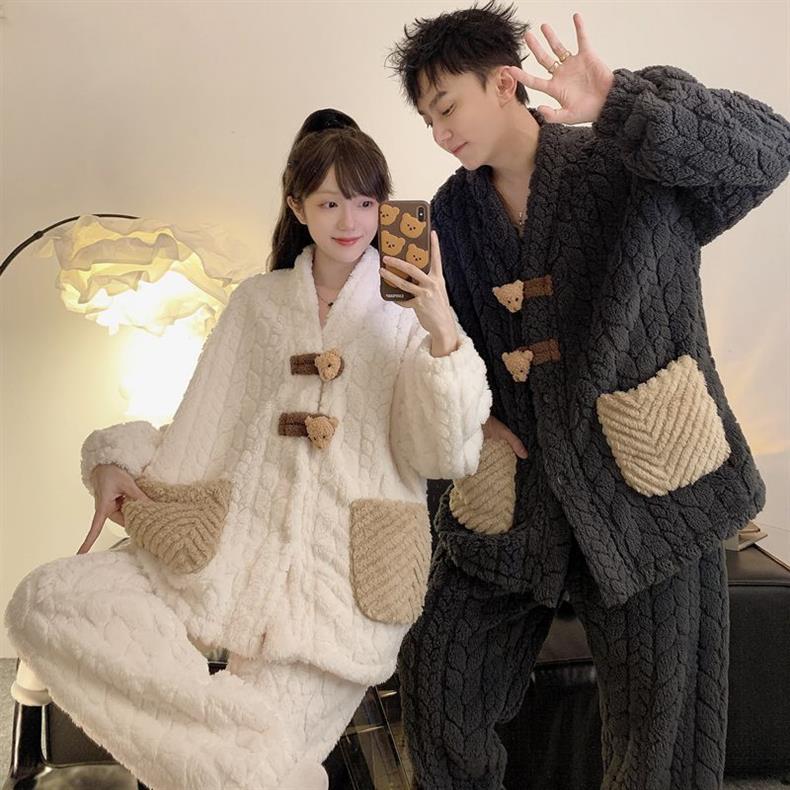 情侣睡衣女秋冬季加厚珊瑚绒2024新款韩版小熊男士冬天毛绒家居服