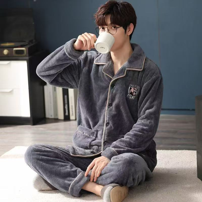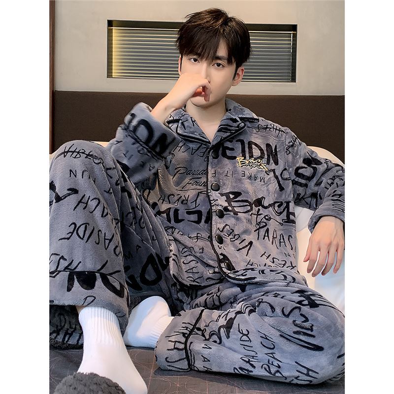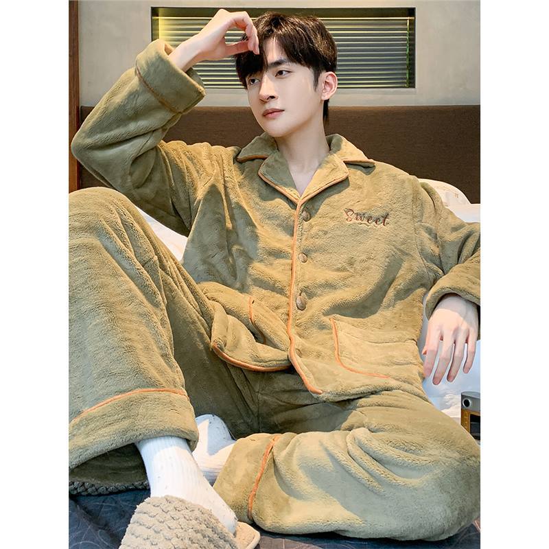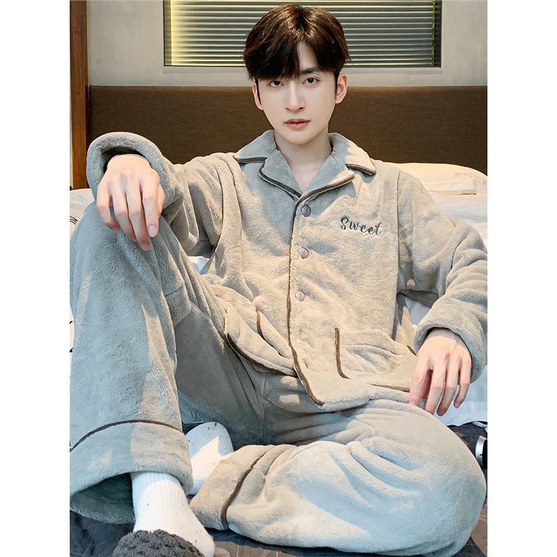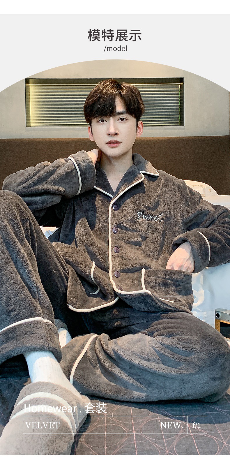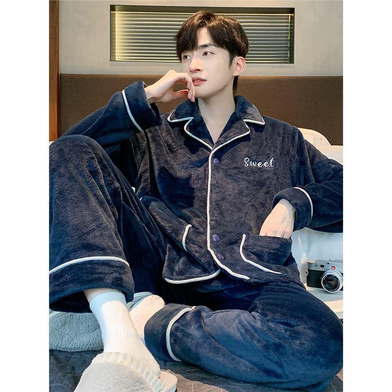 珊瑚绒睡衣男士套装秋冬季加厚保暖青少年男生家居服外穿出门