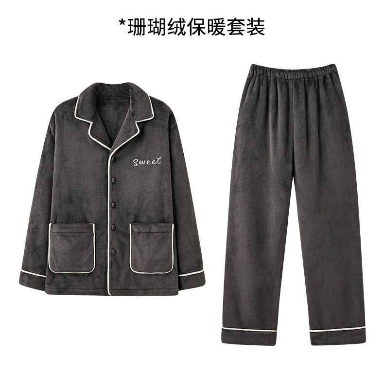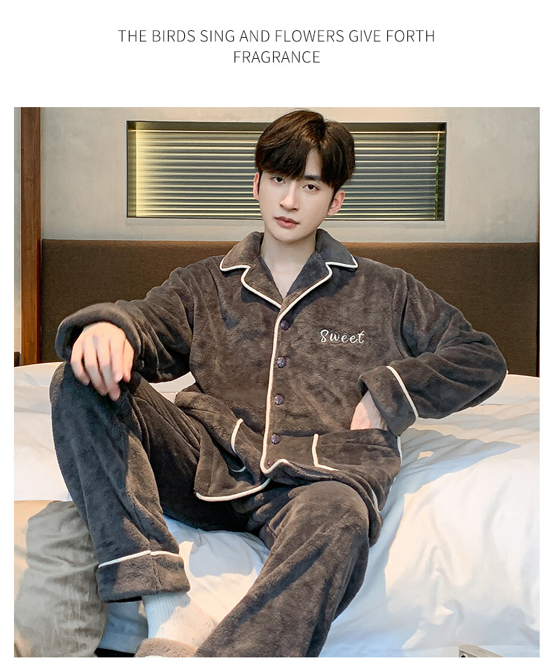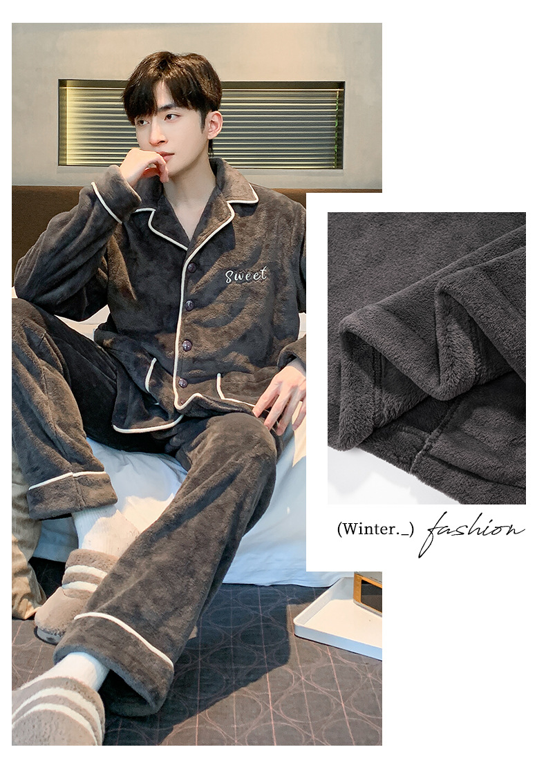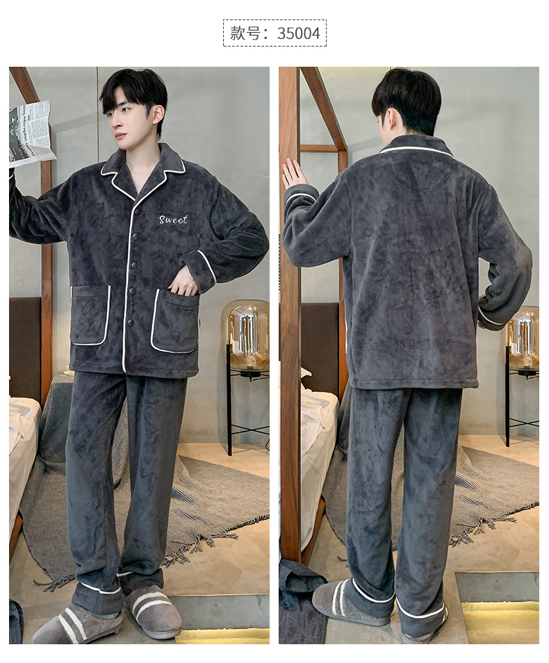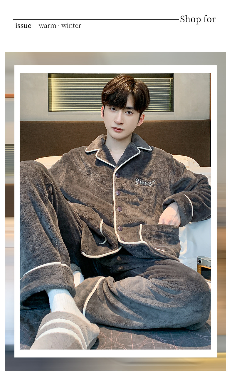 珊瑚绒睡衣男士套装秋冬季加厚保暖青少年男生家居服外穿出门