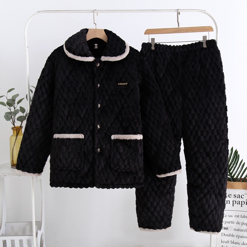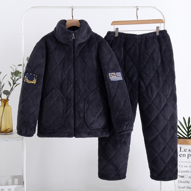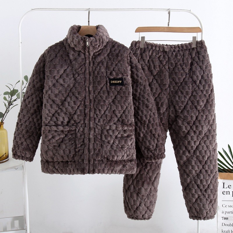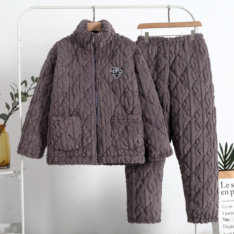睡衣男冬季加厚加绒珊瑚绒夹棉保暖可外穿中老年爸爸家居服秋冬款