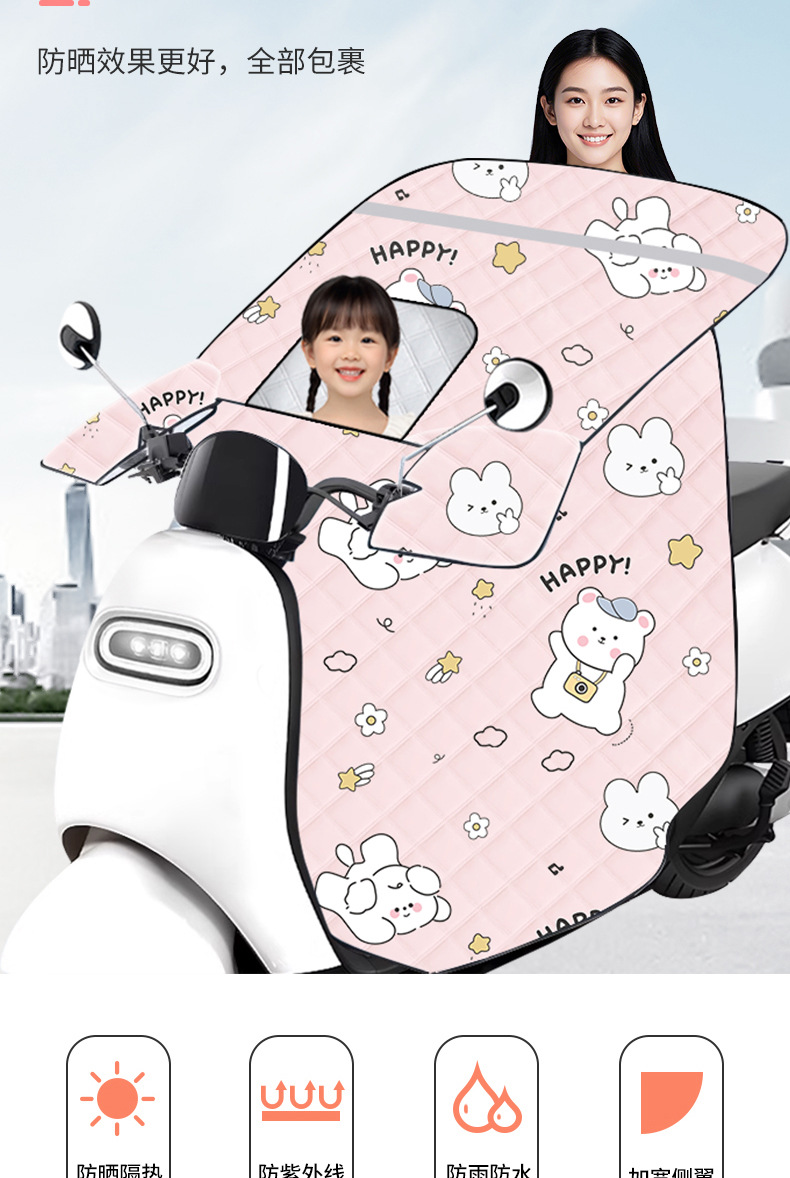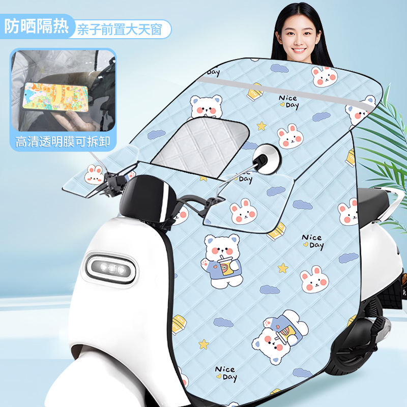 源头工厂批发电动车挡风被夏季亲子款加大侧翼防晒电瓶车挡风罩