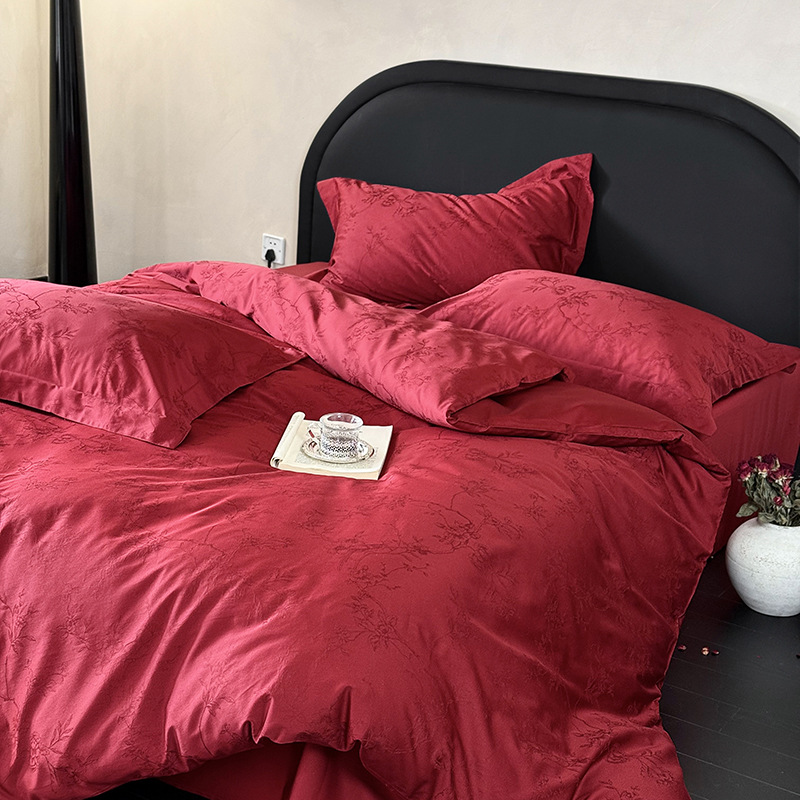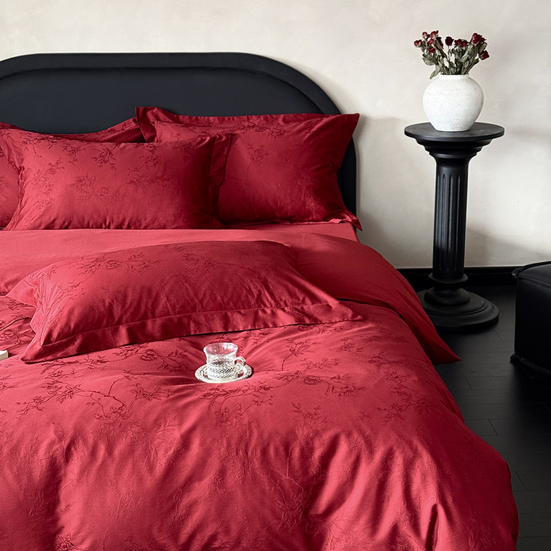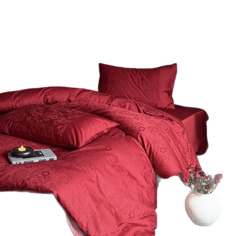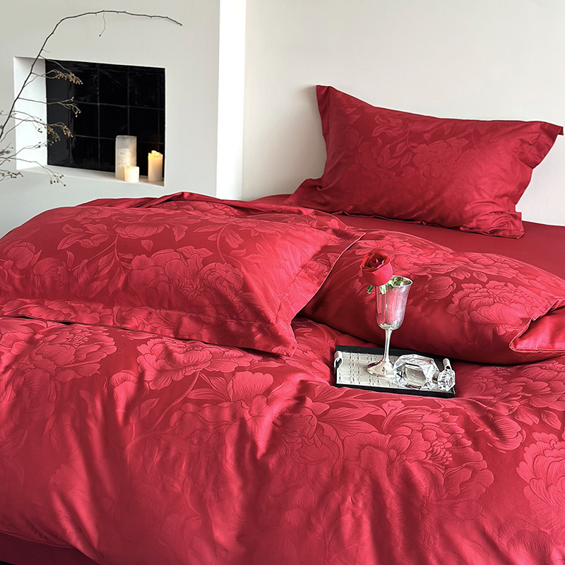 100S长绒棉大红婚庆全棉四件套新疆纯棉结婚陪嫁玫瑰提花床上用品