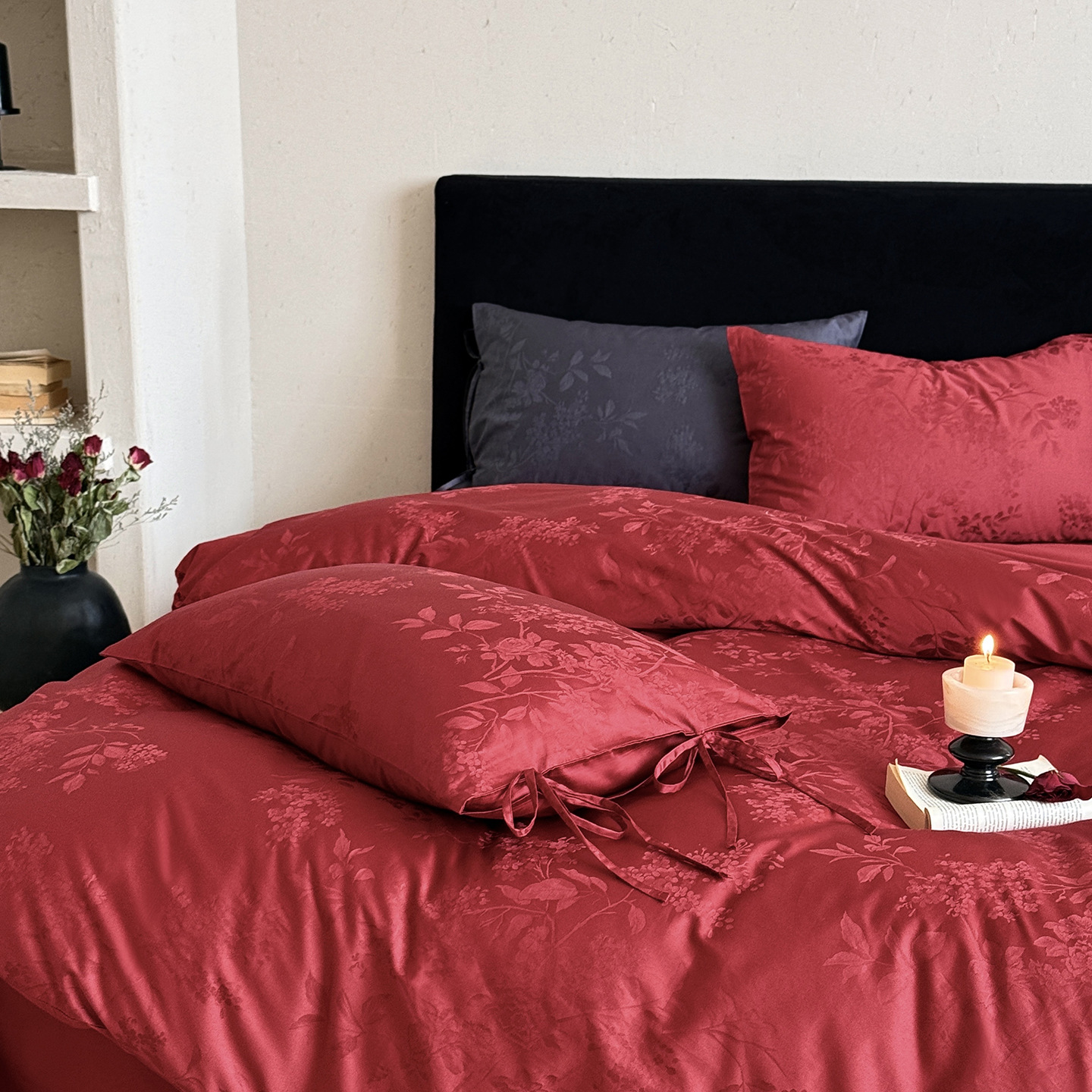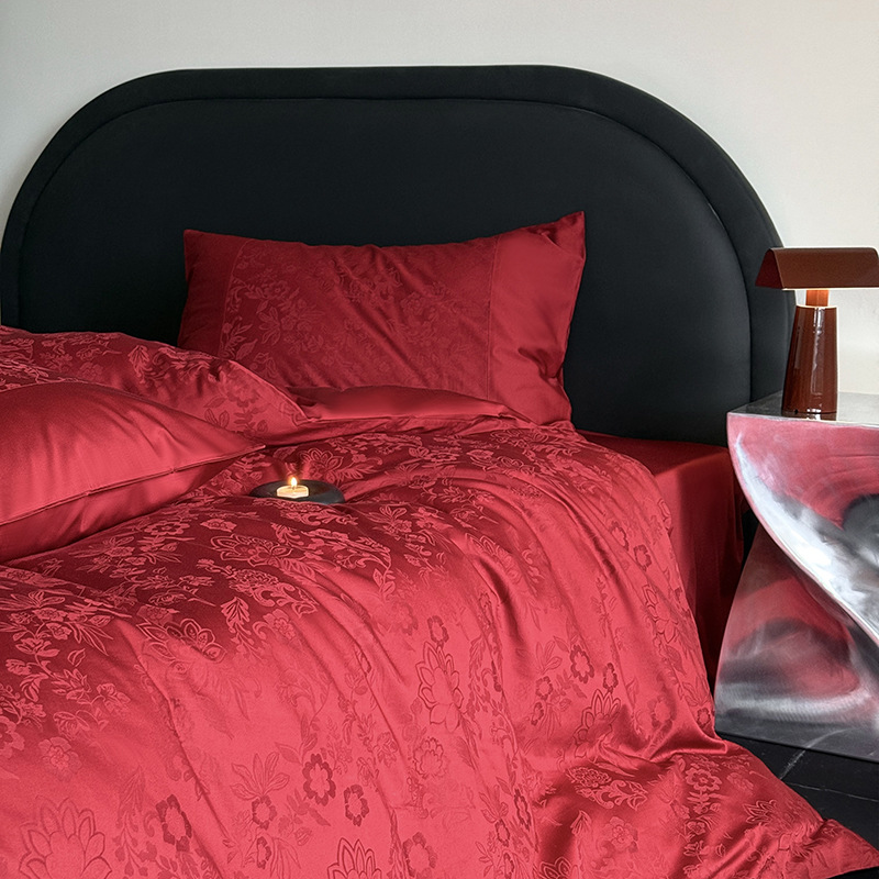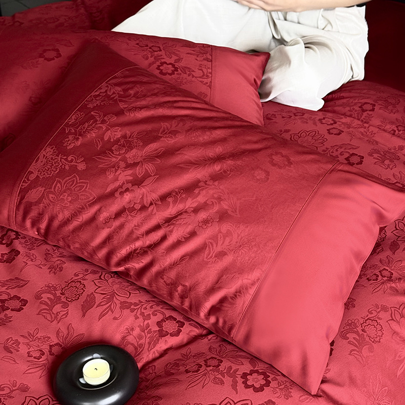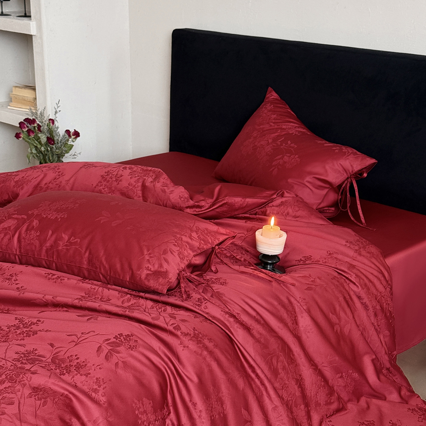 100S长绒棉大红婚庆全棉四件套新疆纯棉结婚陪嫁玫瑰提花床上用品
