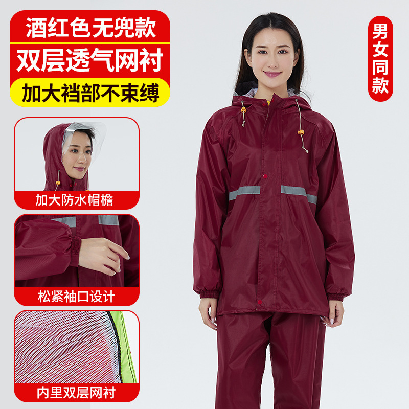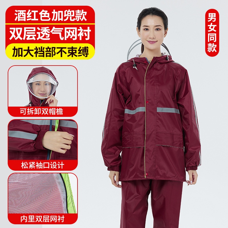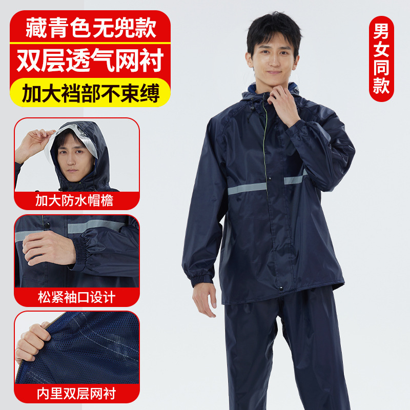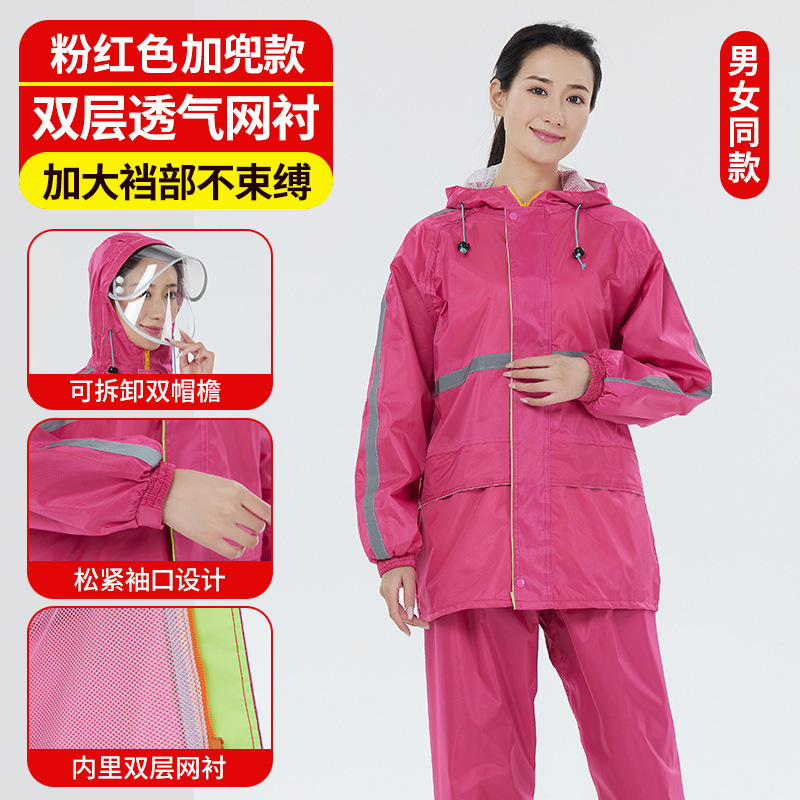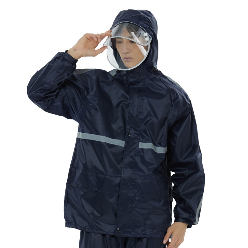 分体式雨衣雨裤套装牛津布双帽檐大口袋透气网衬劳保雨衣套装批发