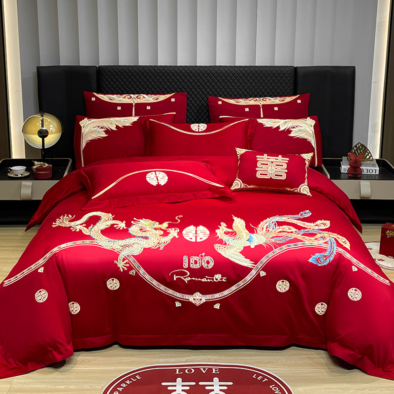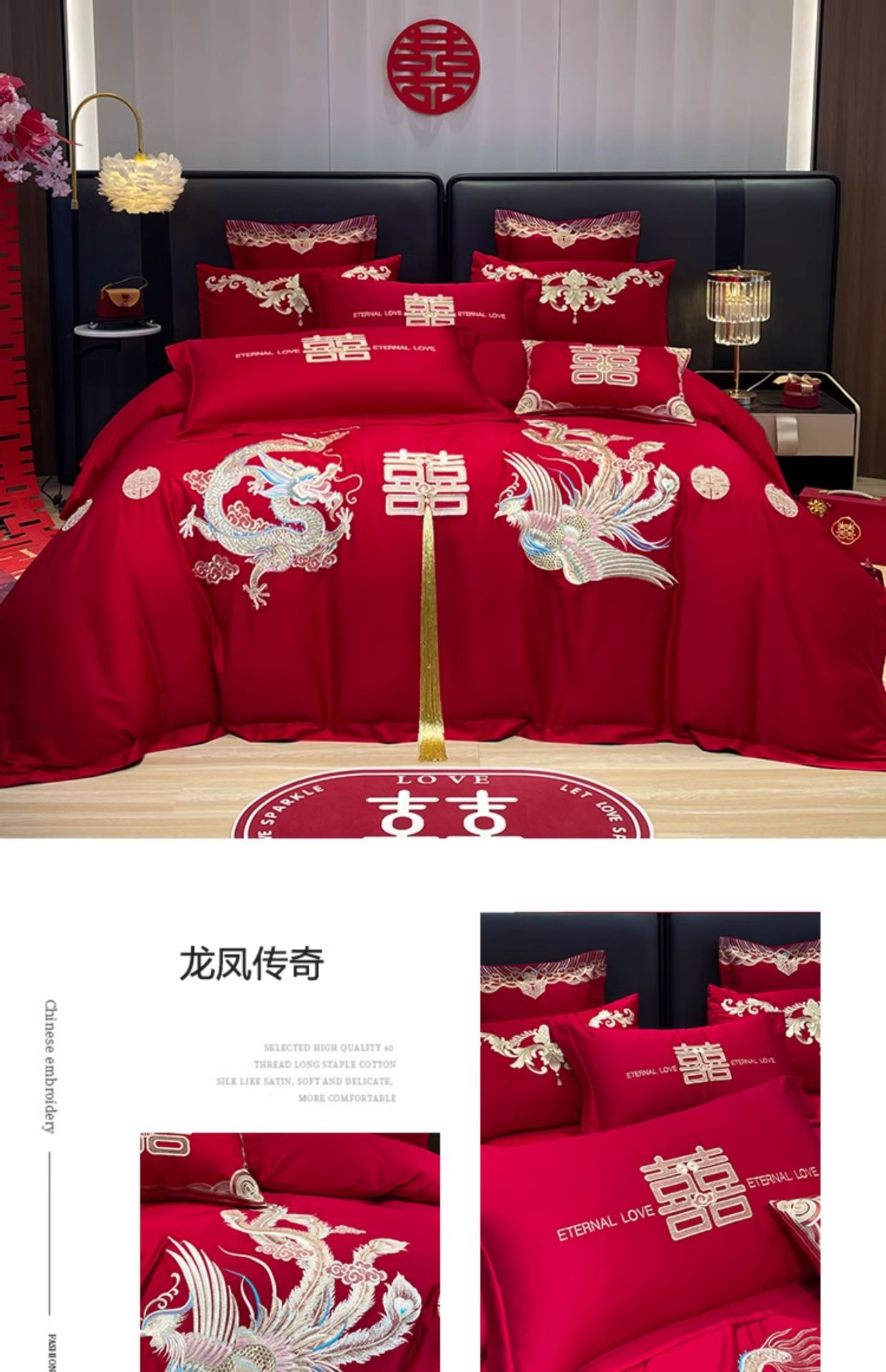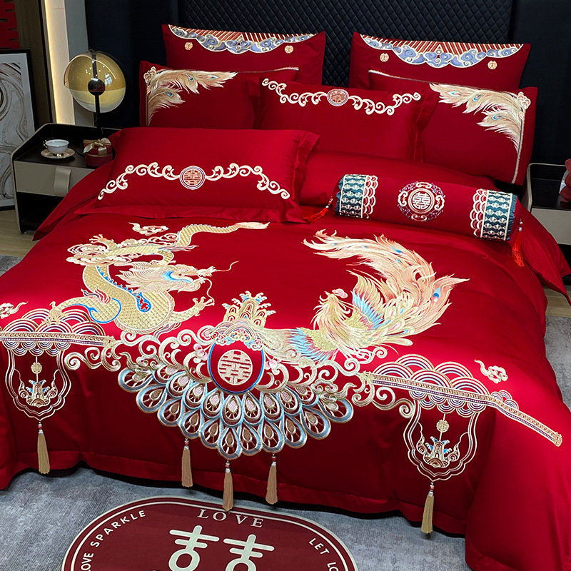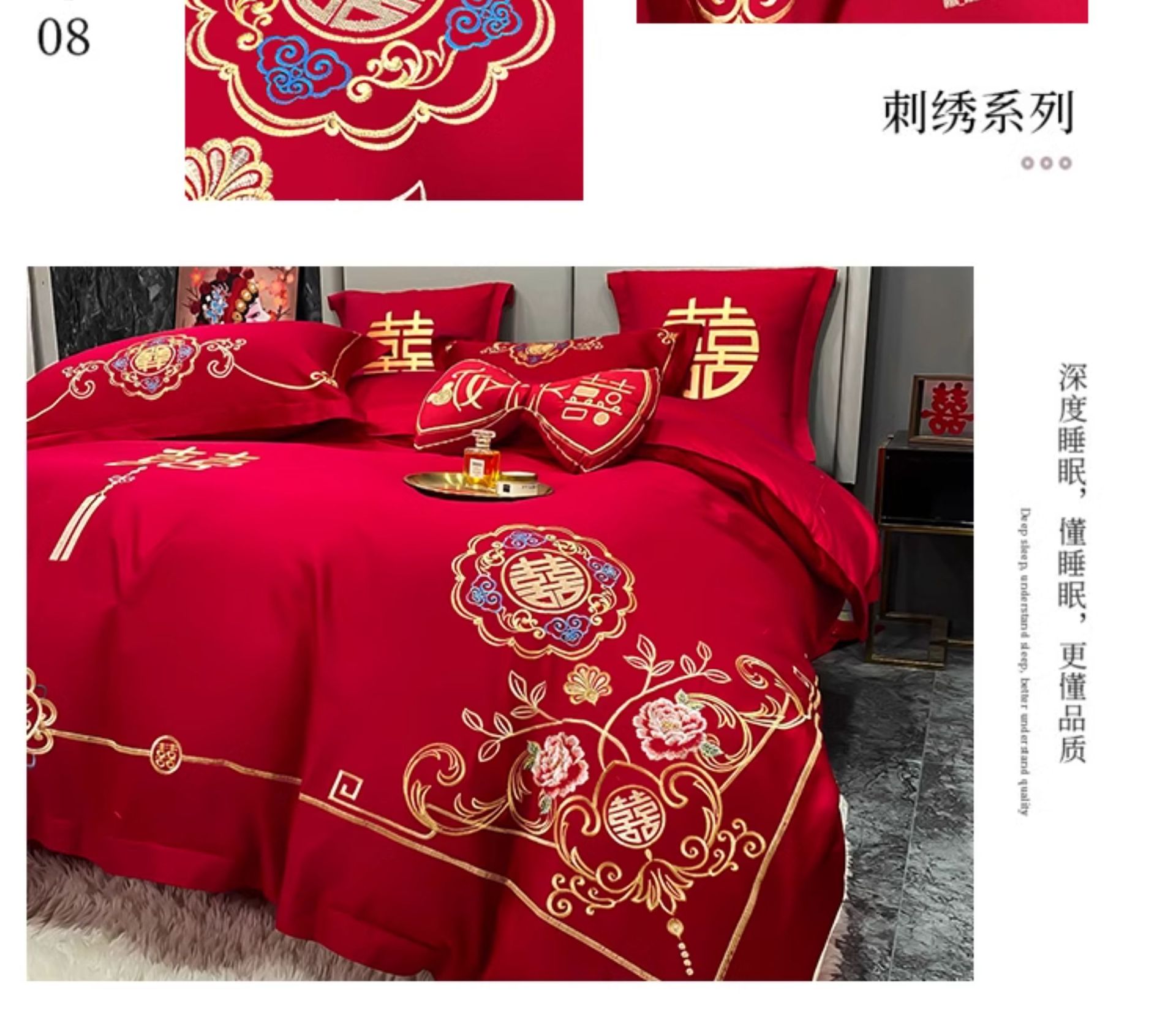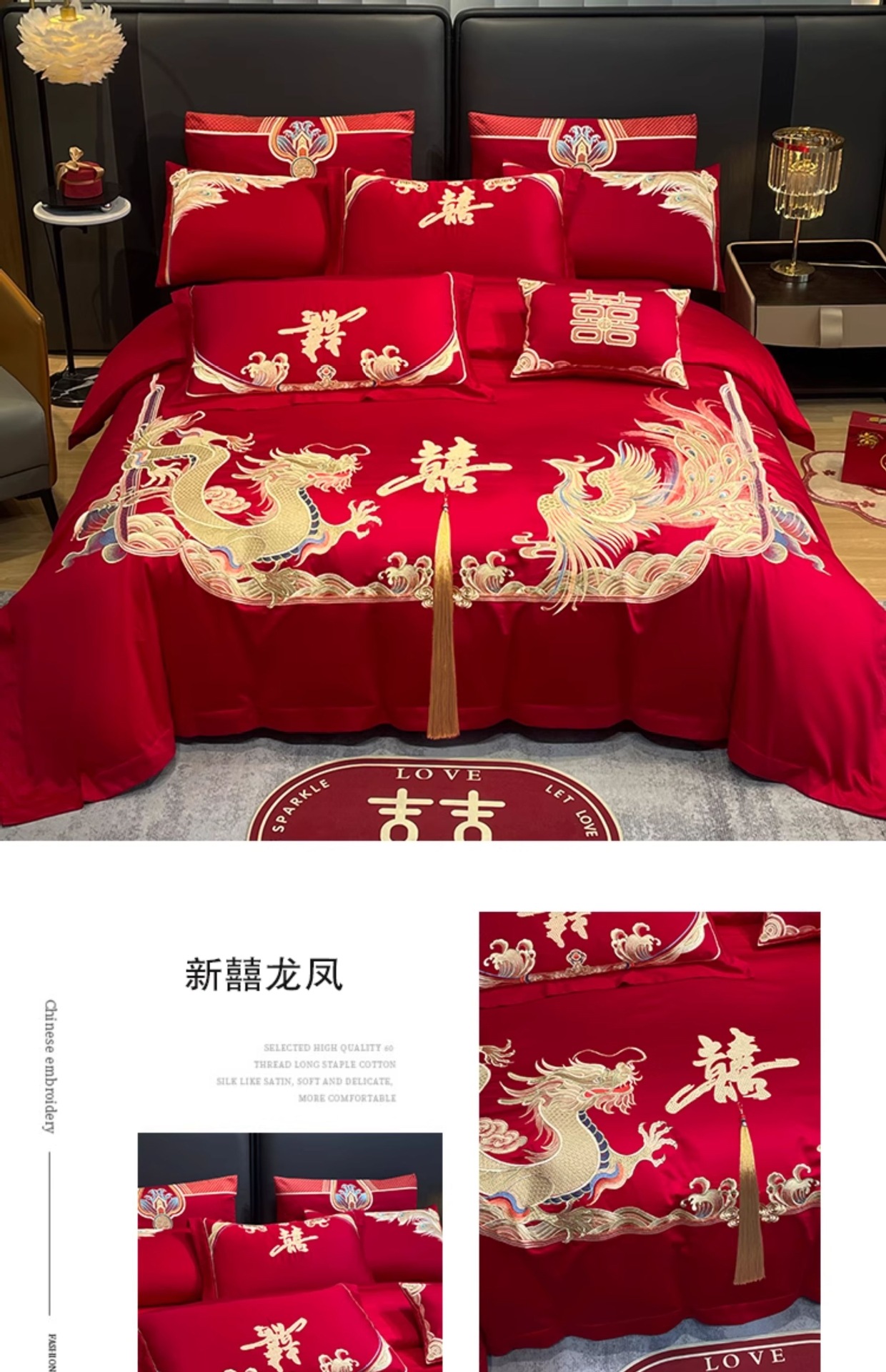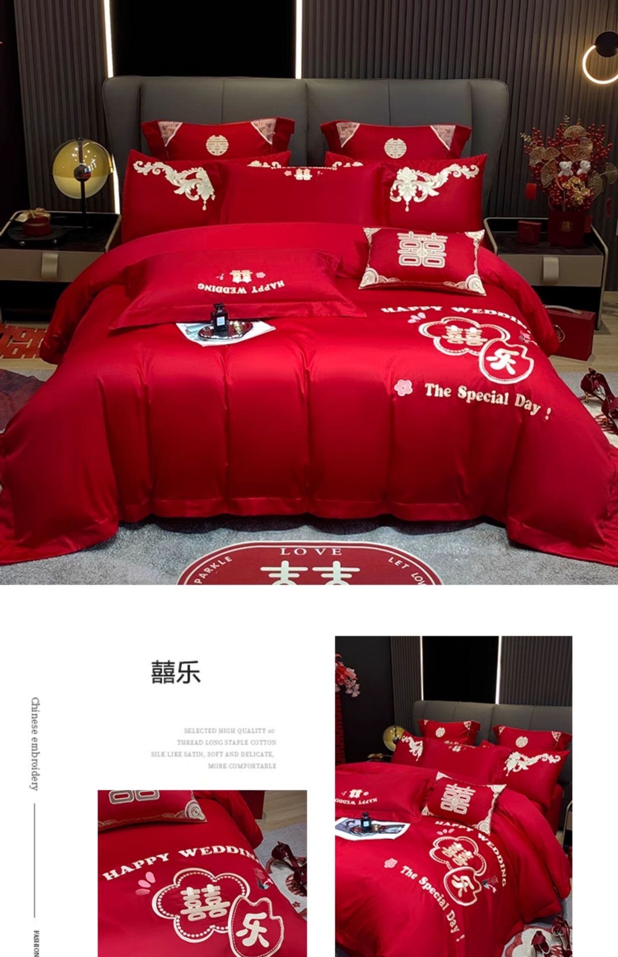 浪莎中式婚庆四件套红色刺绣婚房婚礼绣花喜被结婚被套床上用品