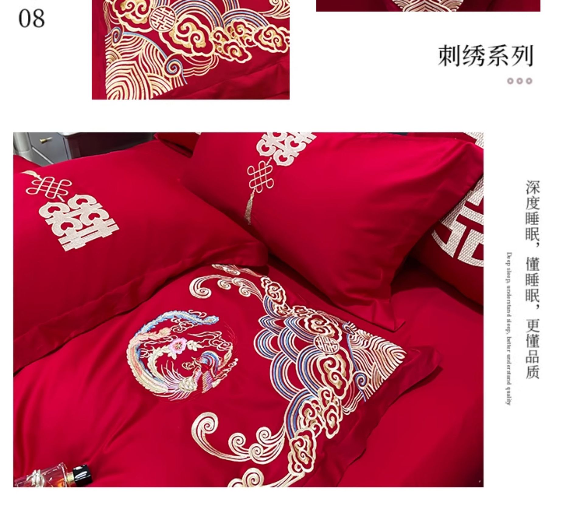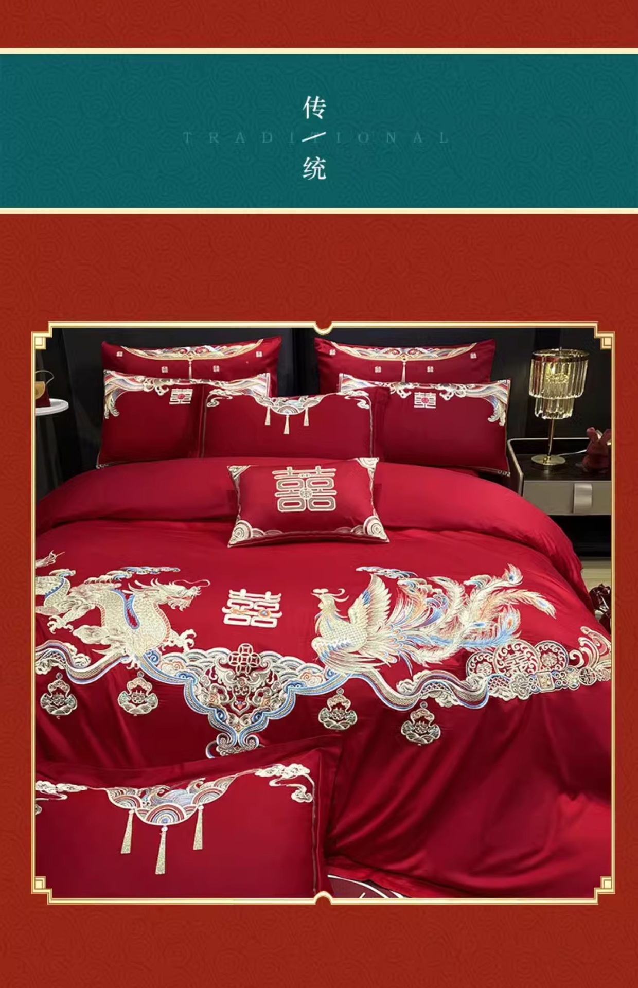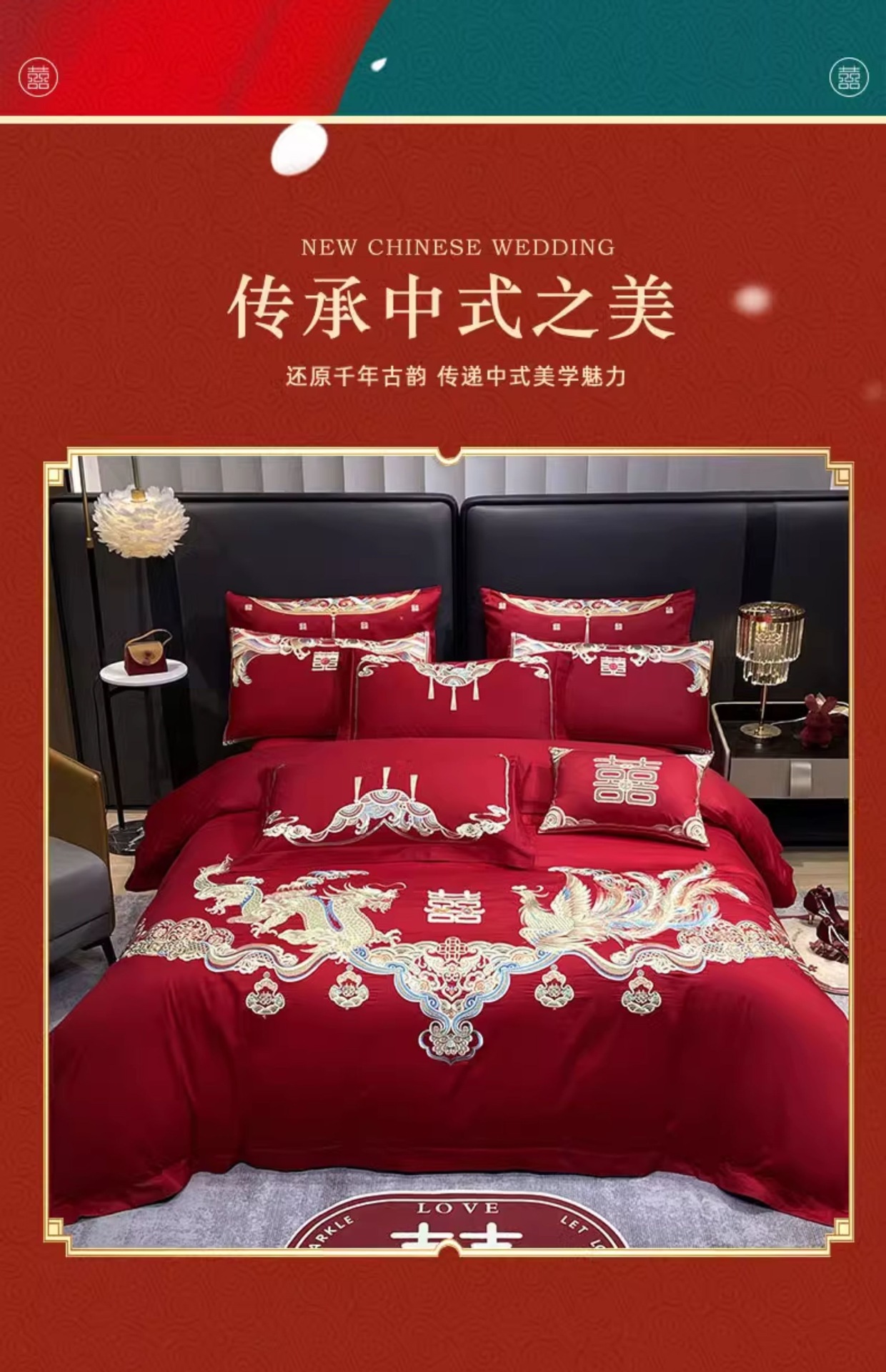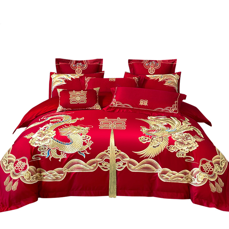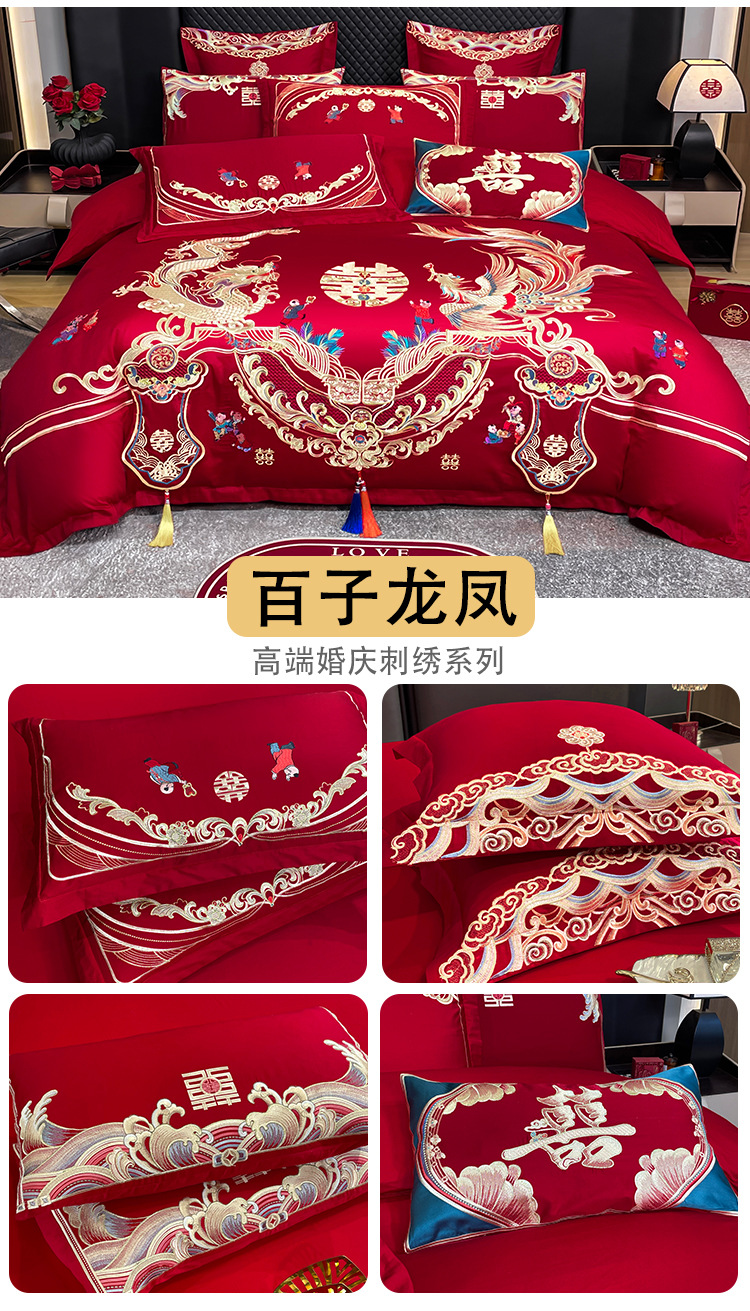 浪莎中式婚庆四件套红色刺绣婚房婚礼绣花喜被结婚被套床上用品