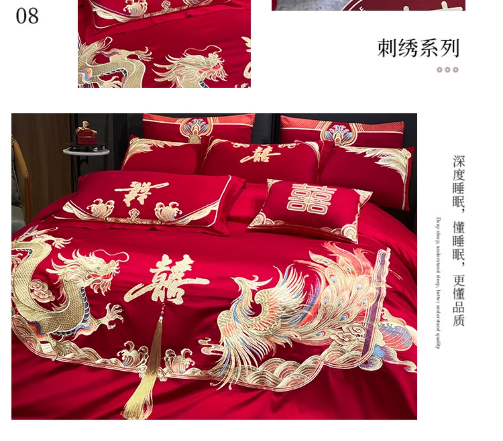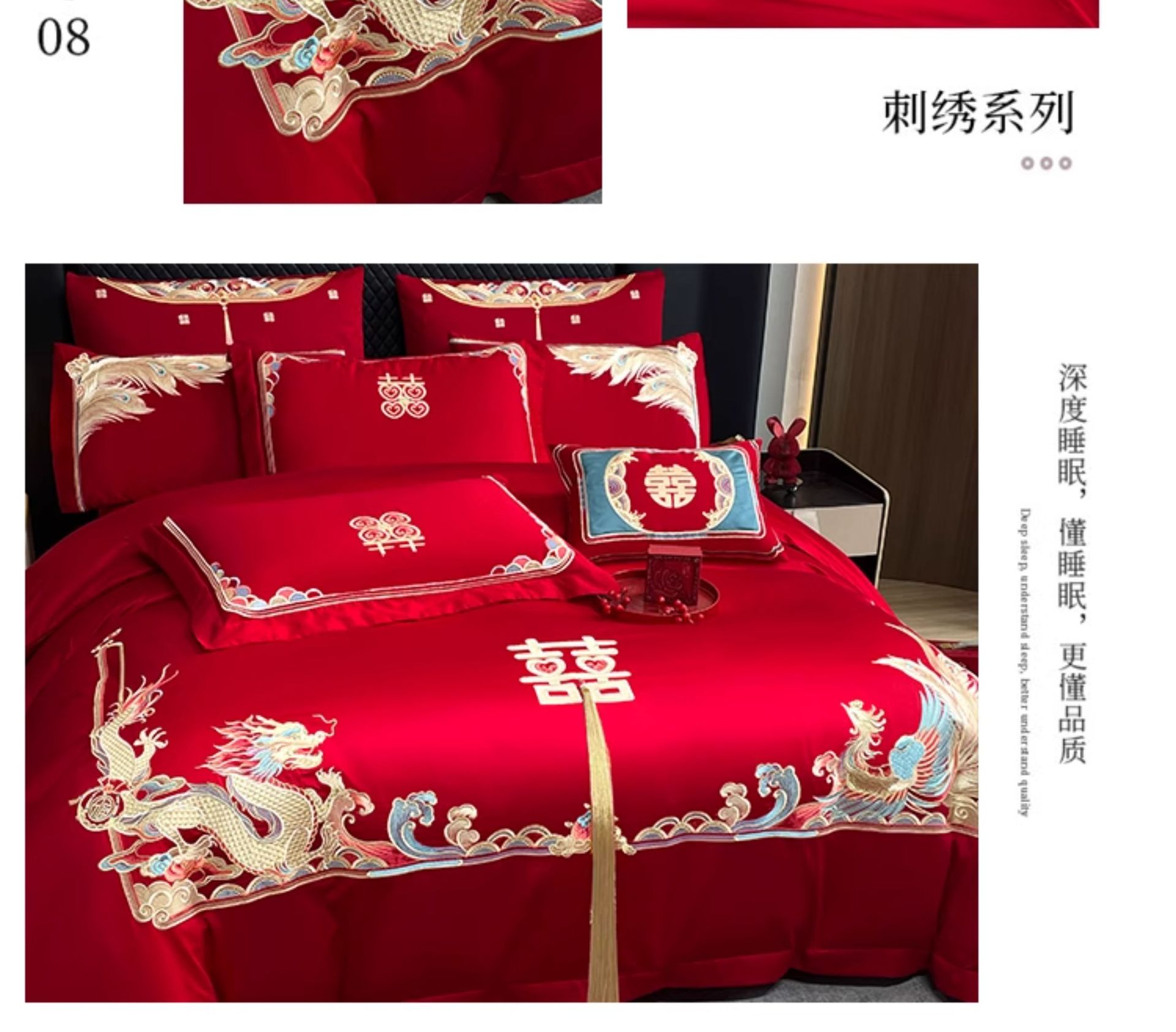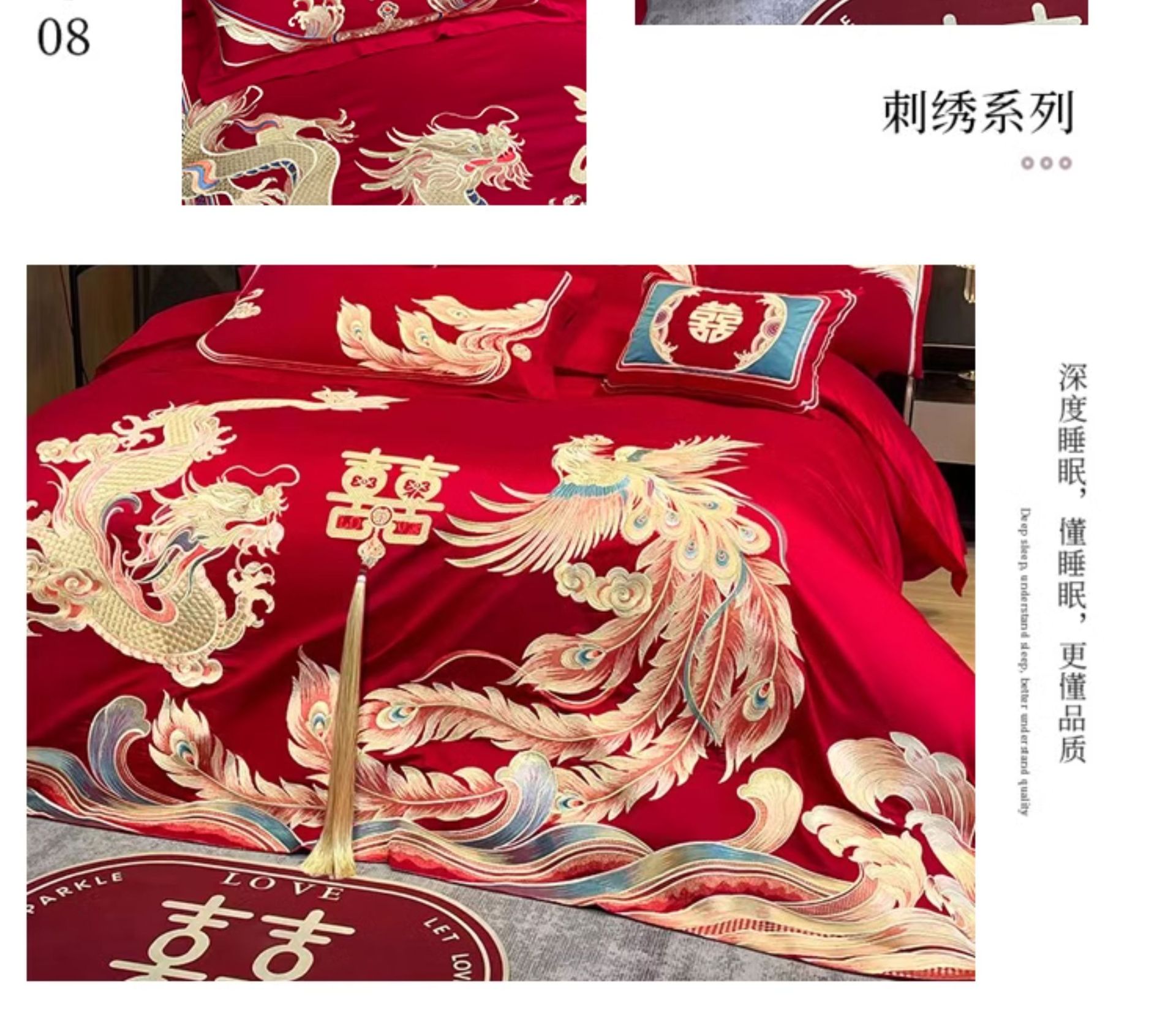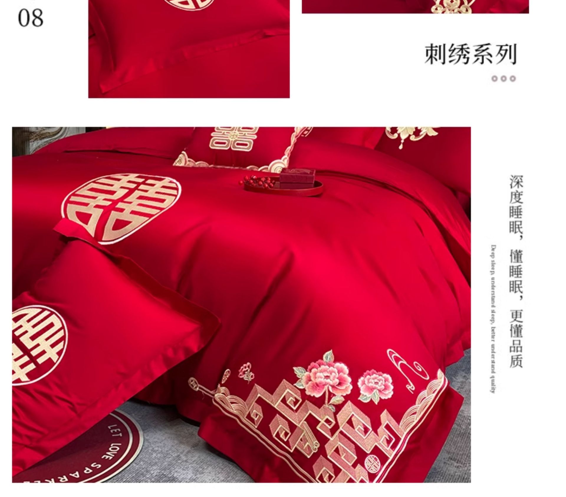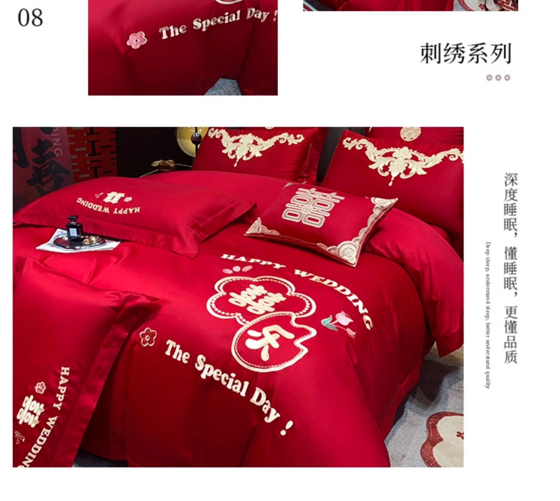 浪莎中式婚庆四件套红色刺绣婚房婚礼绣花喜被结婚被套床上用品